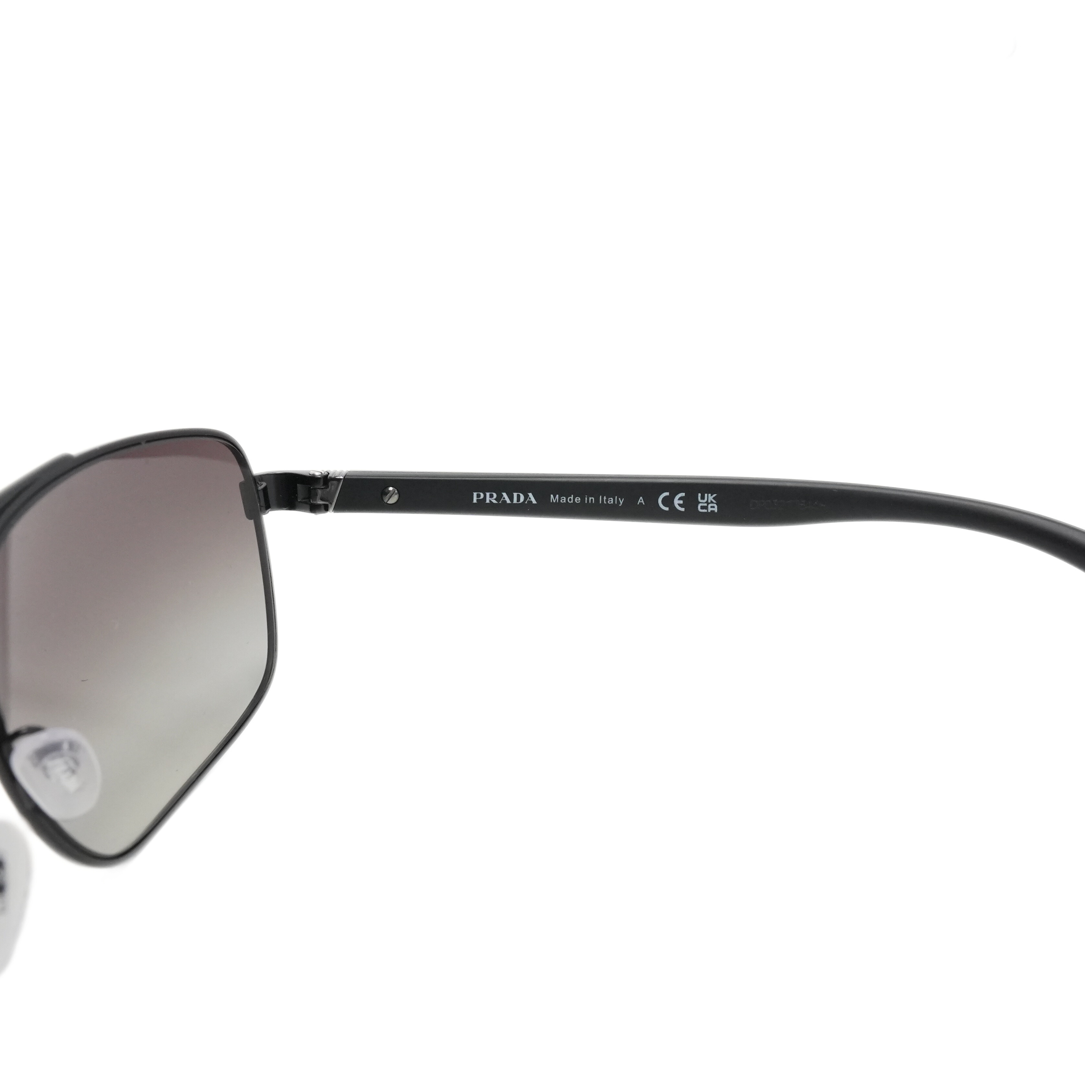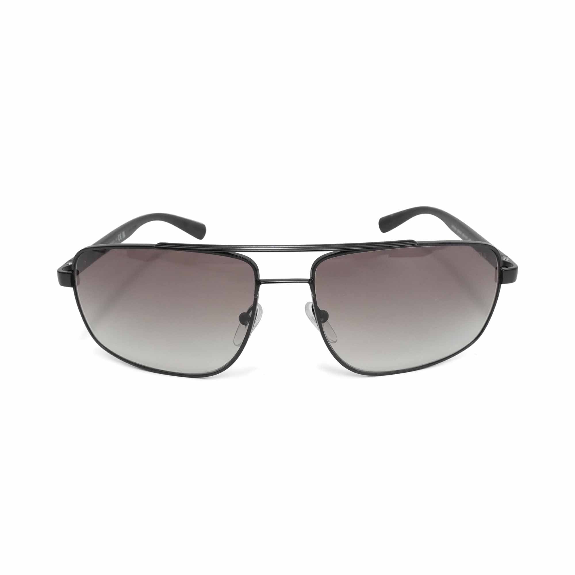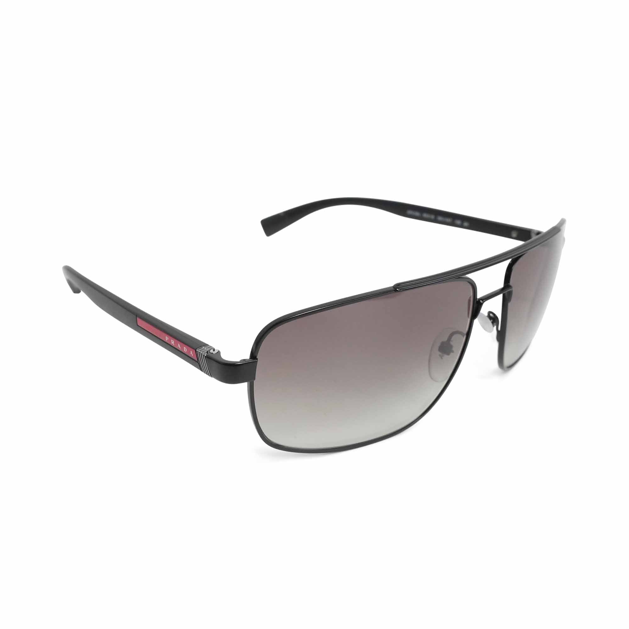 Prada 'Linea Rossa' aviator sunglasses in gunmetal with black arms with red logo and ombre lenses.