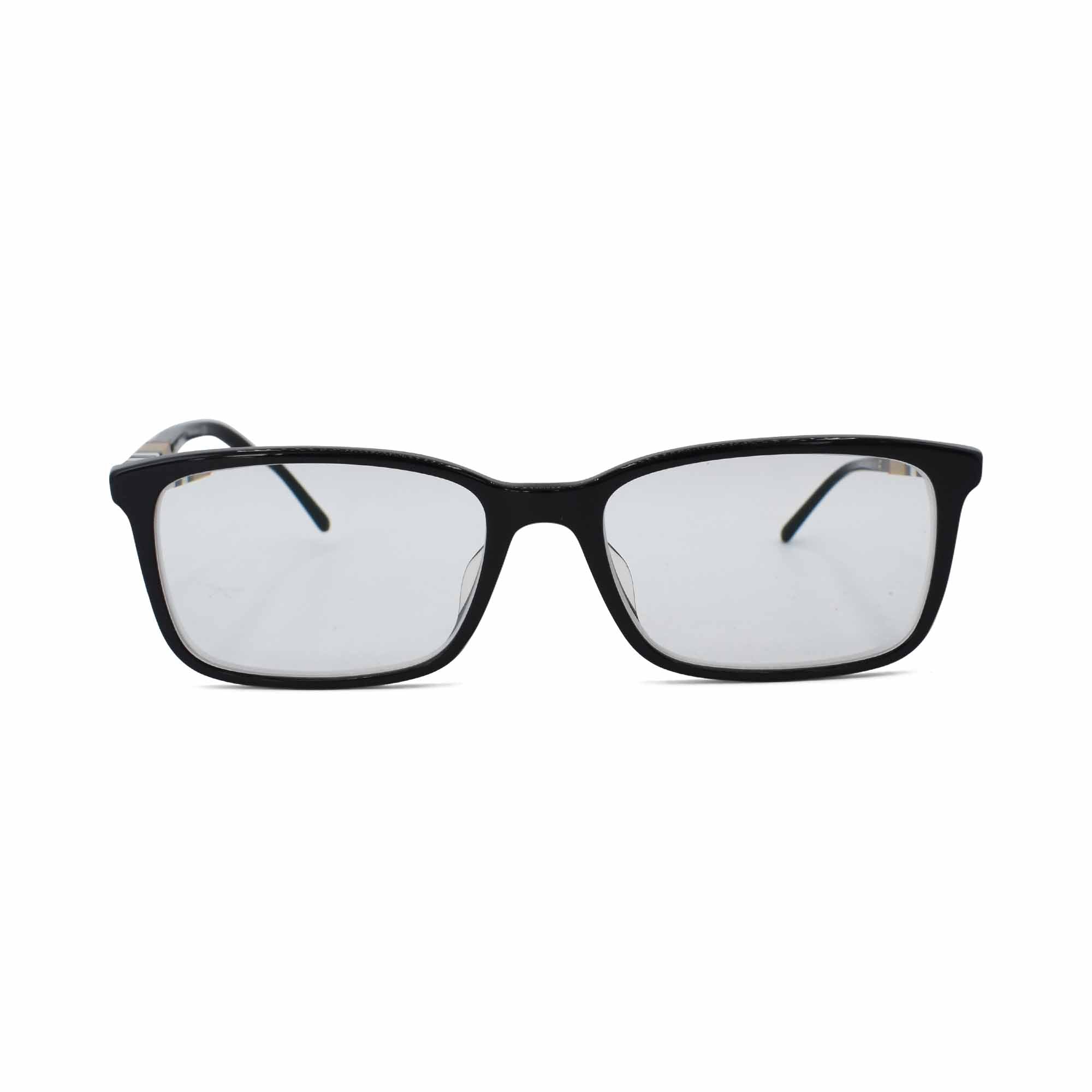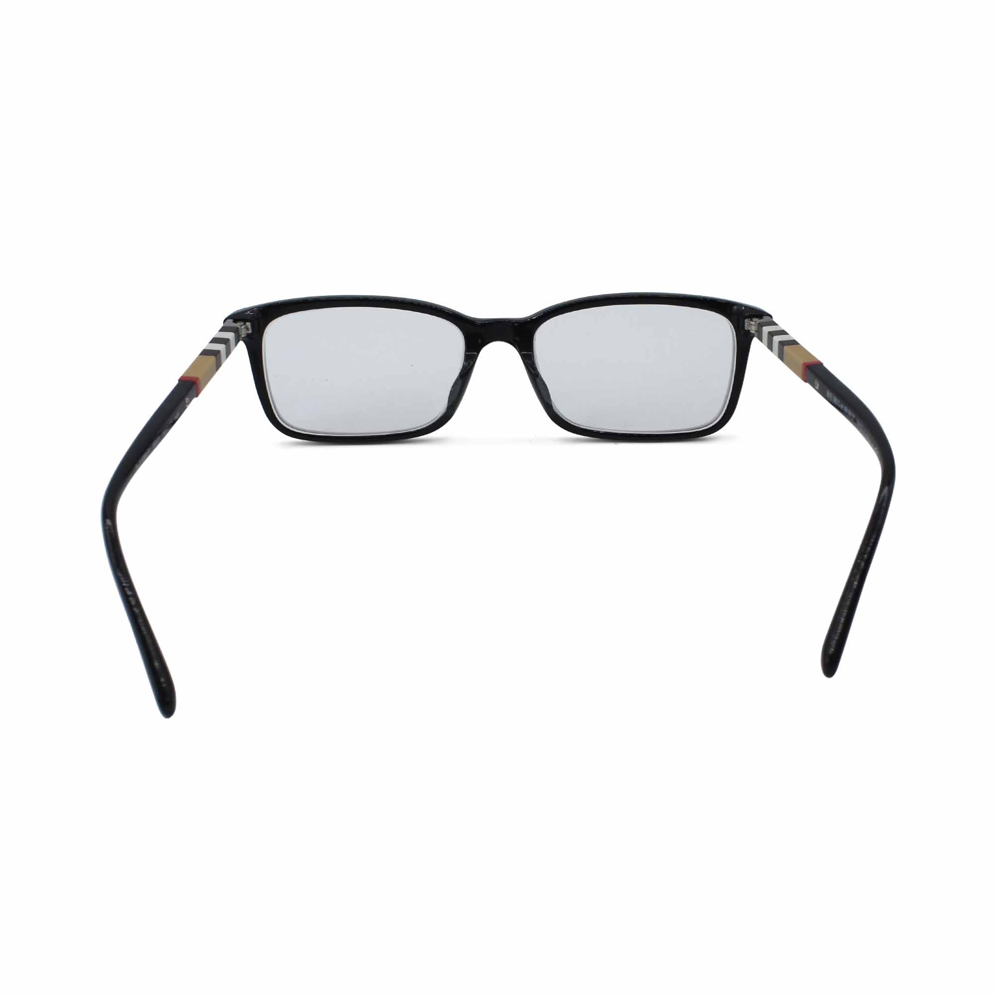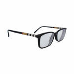 Burberry black wayfarer glasses with Novacheck stripes on the arms. The glasses currently have prescription lenses.