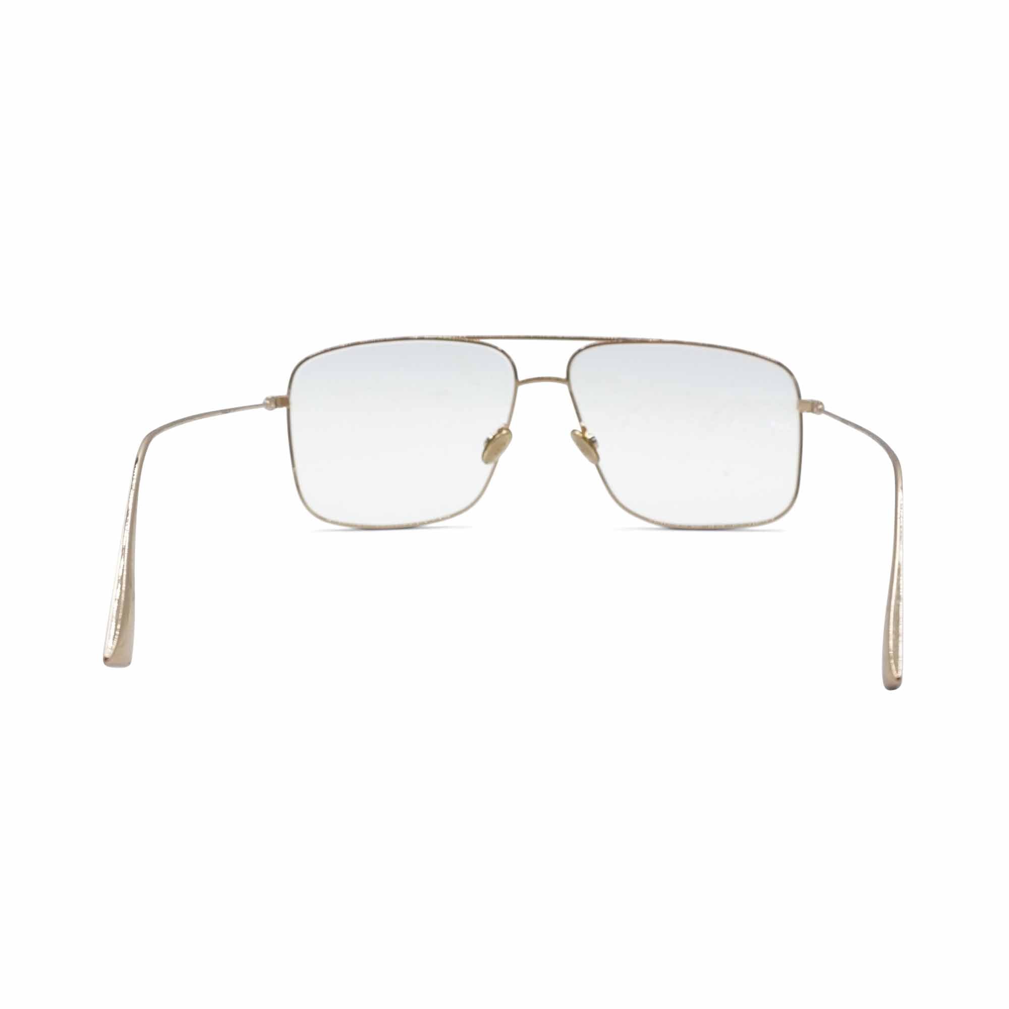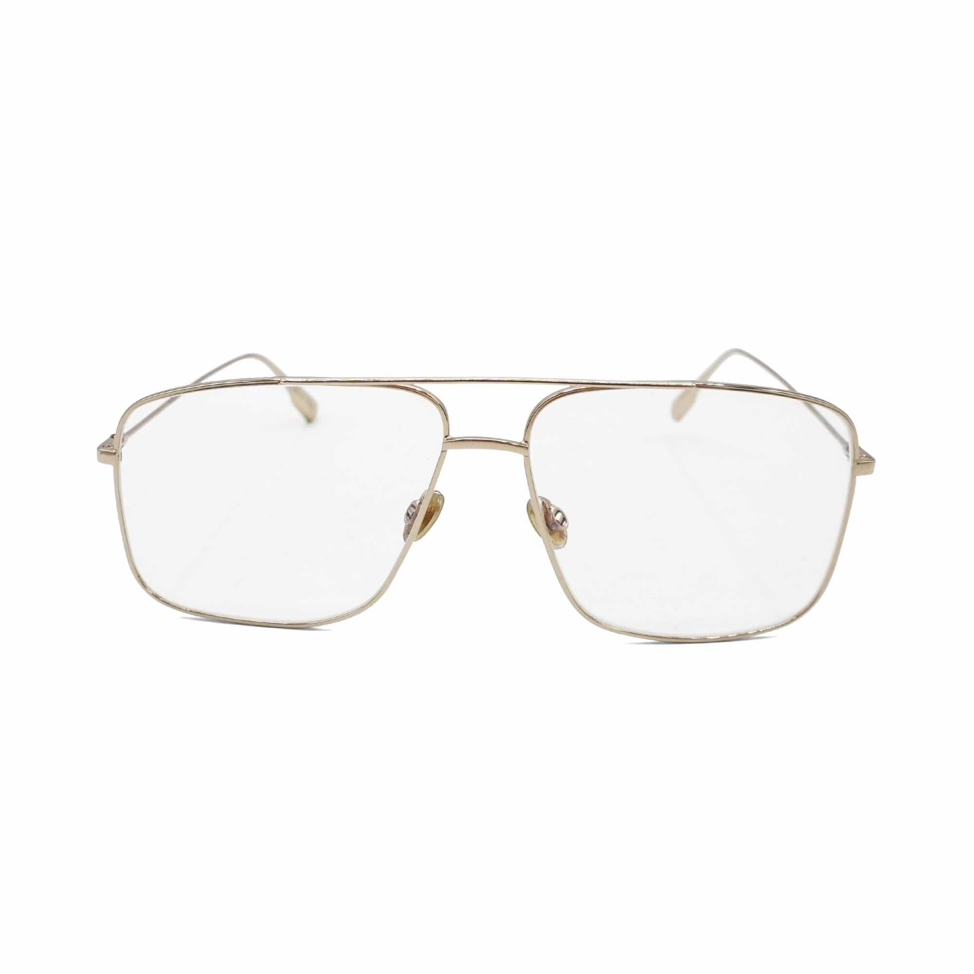 Christian Dior 'Stellaire 03' eyeglasses in gold metal with rectangular lenses and a brow bar detail.