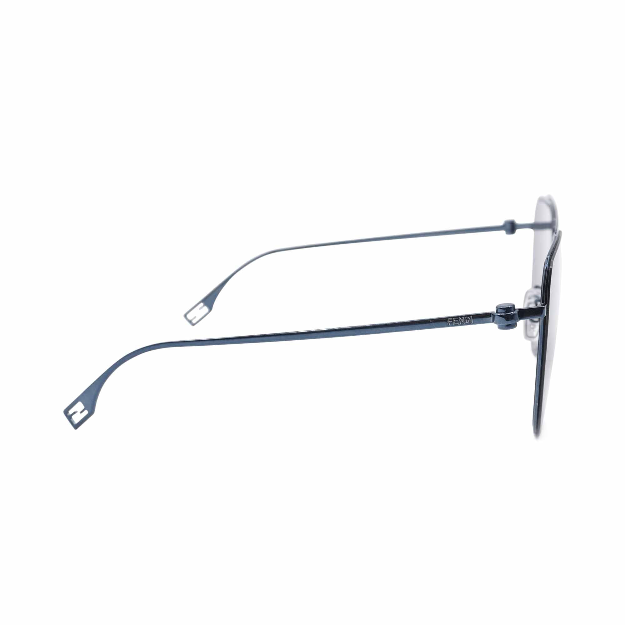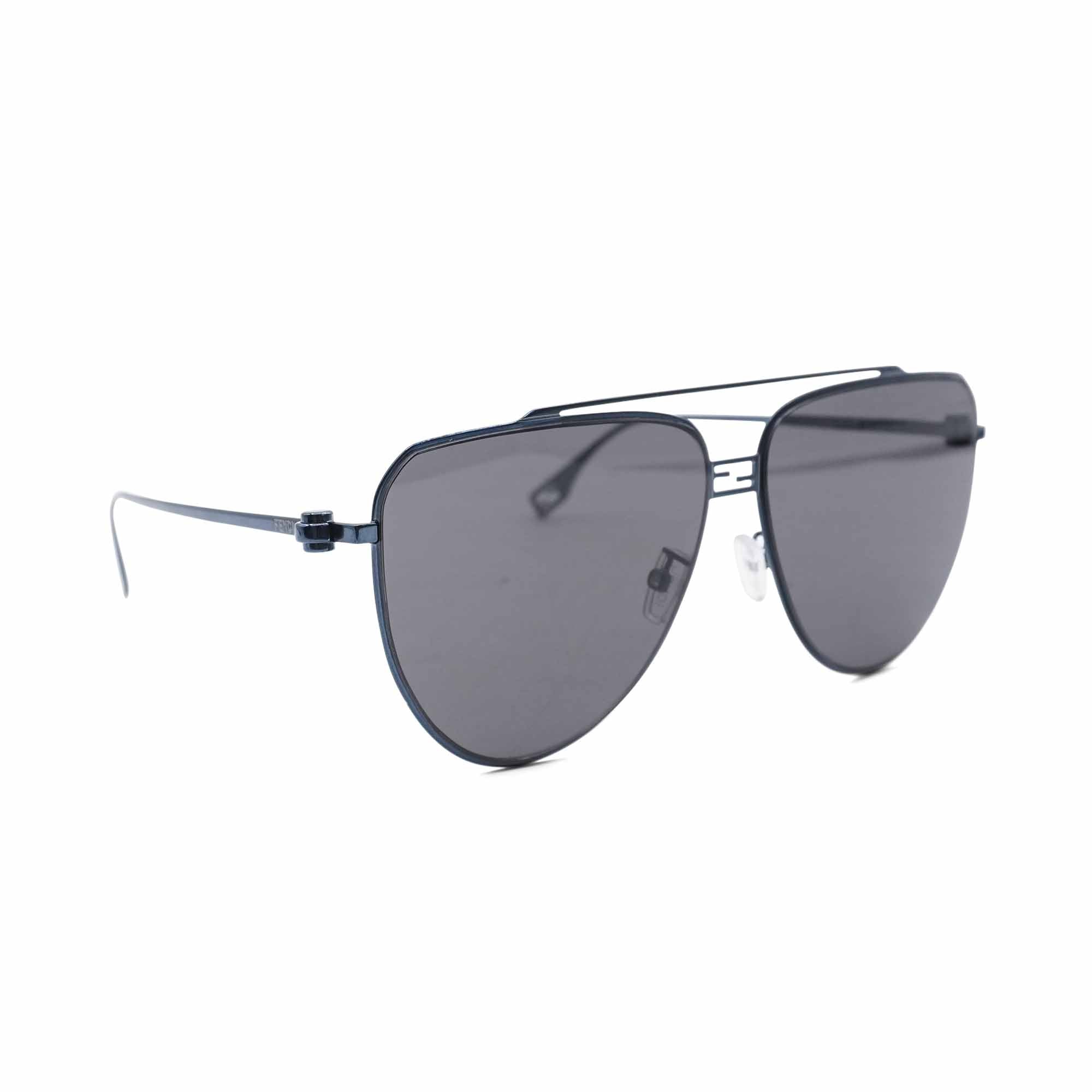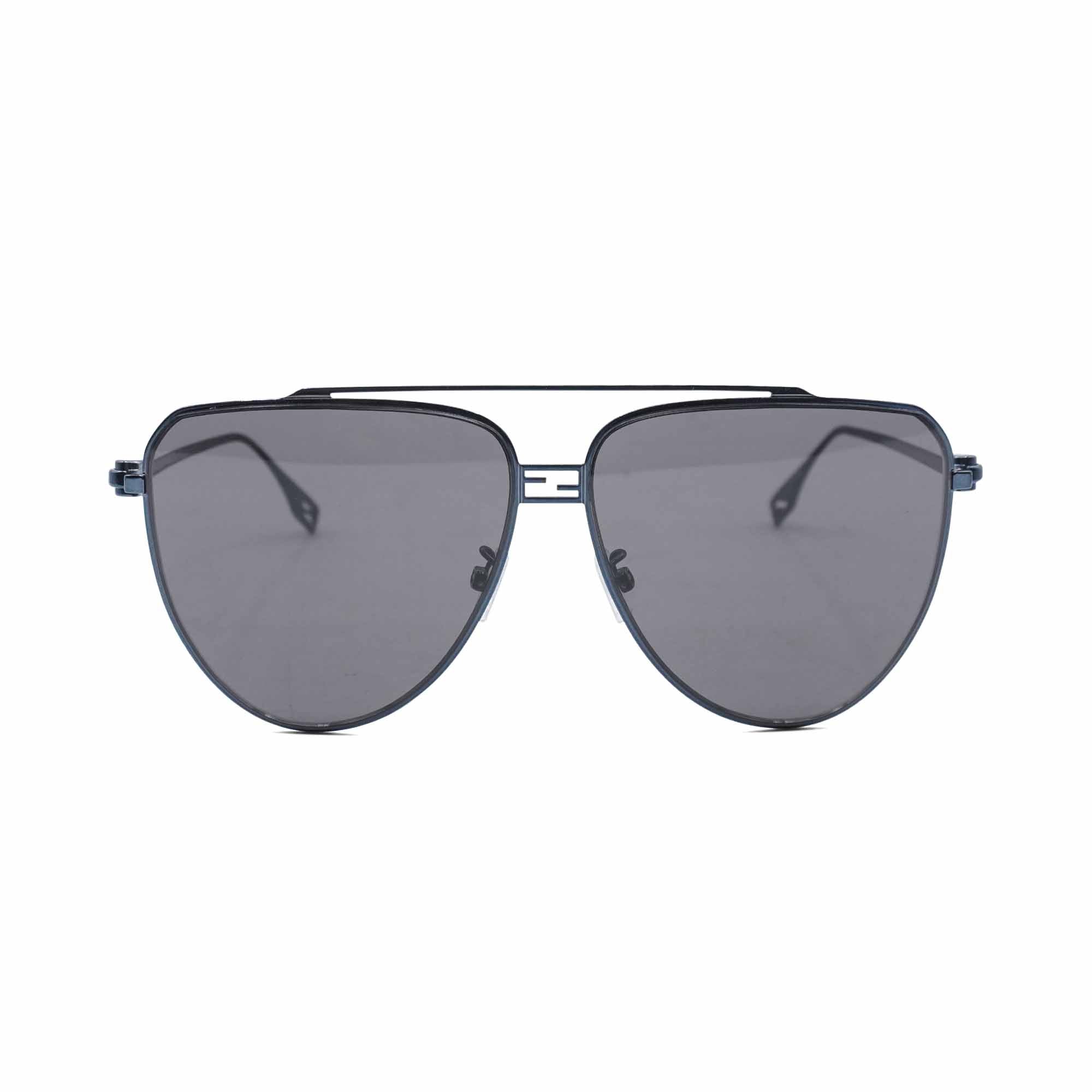 Fendi aviator sunglasses in metallic blue with wire frames, black lenses and small 'FF' on the nose bridge.