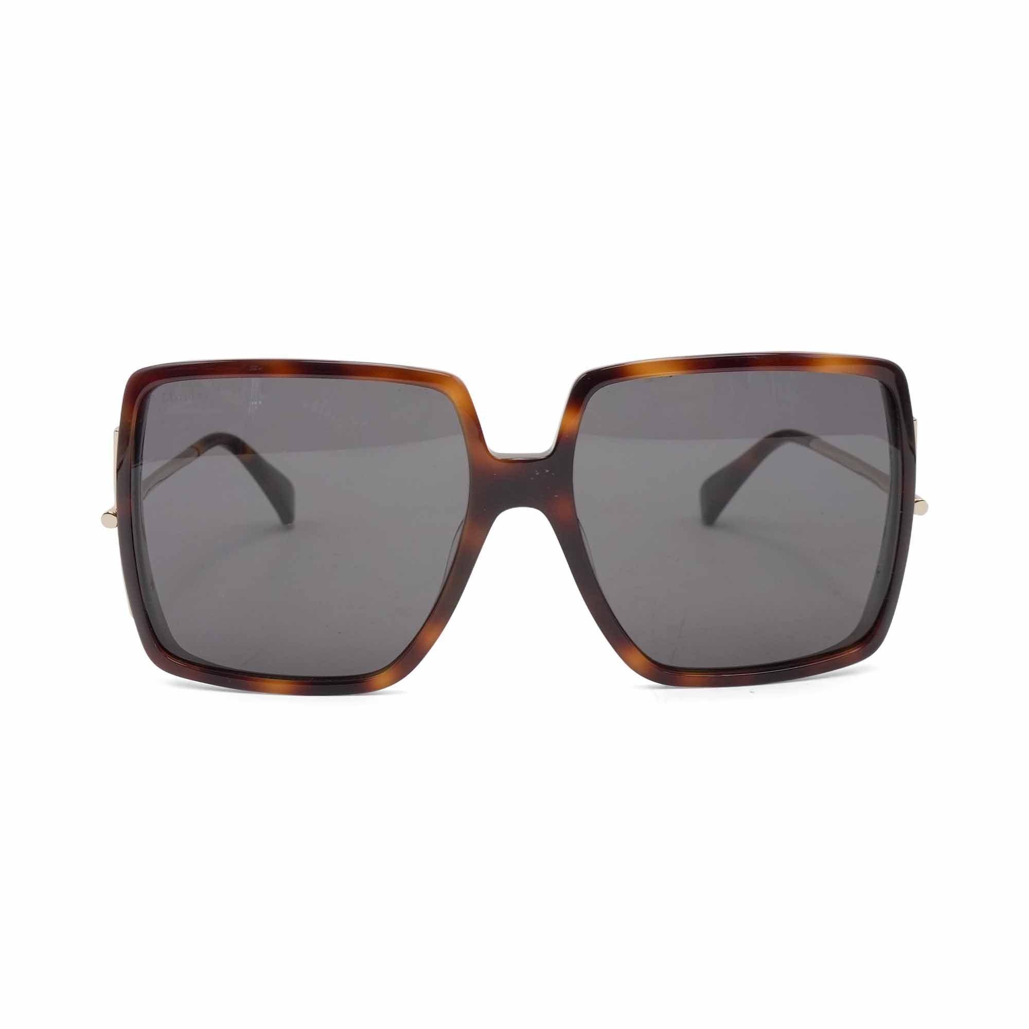 Max Mara 'Malibu4' sunglasses in brown tortoise acetate with gold metal arms and oversized square lenses.