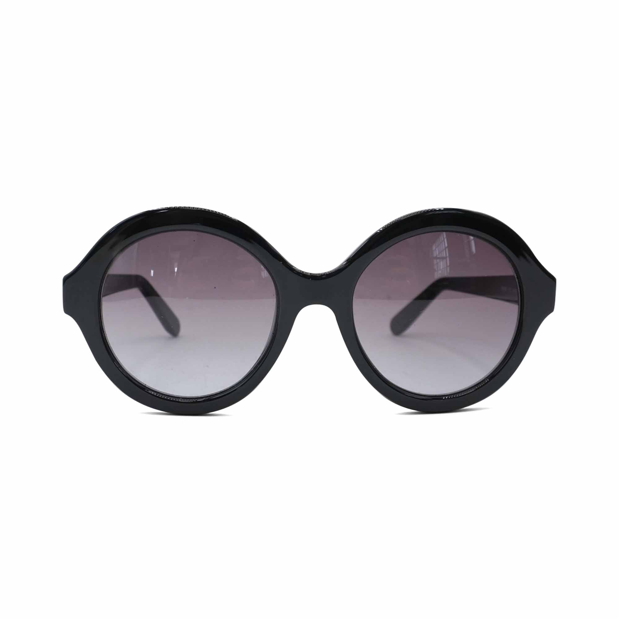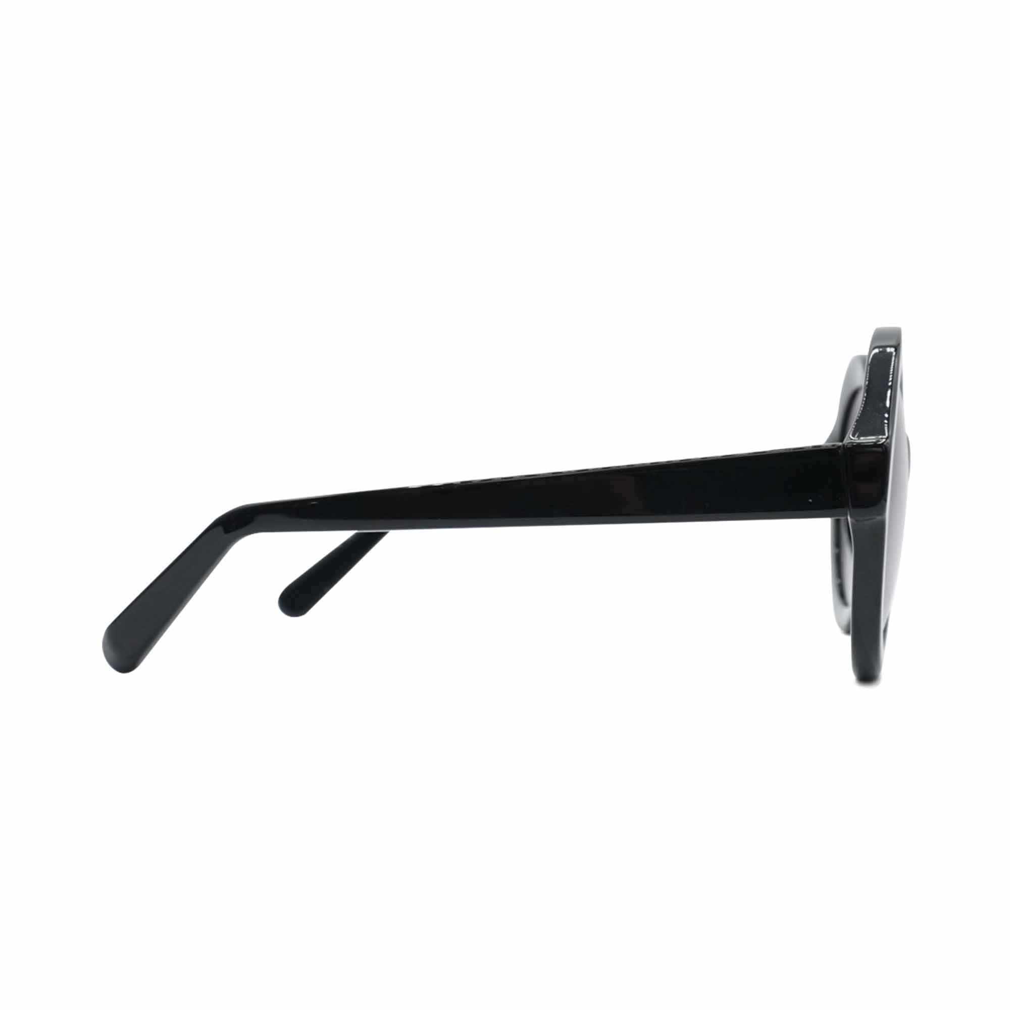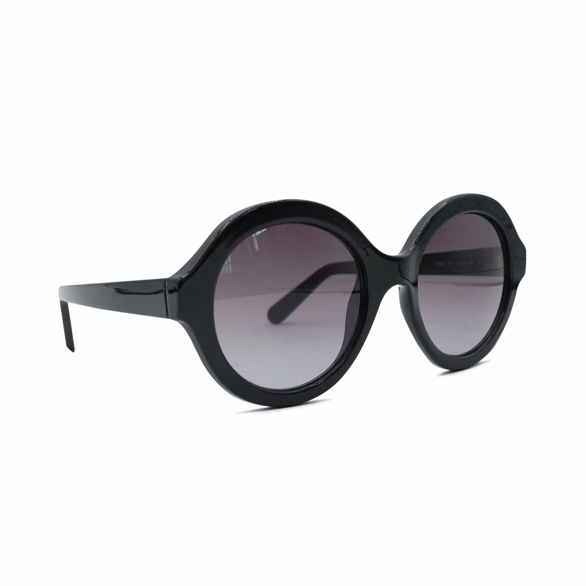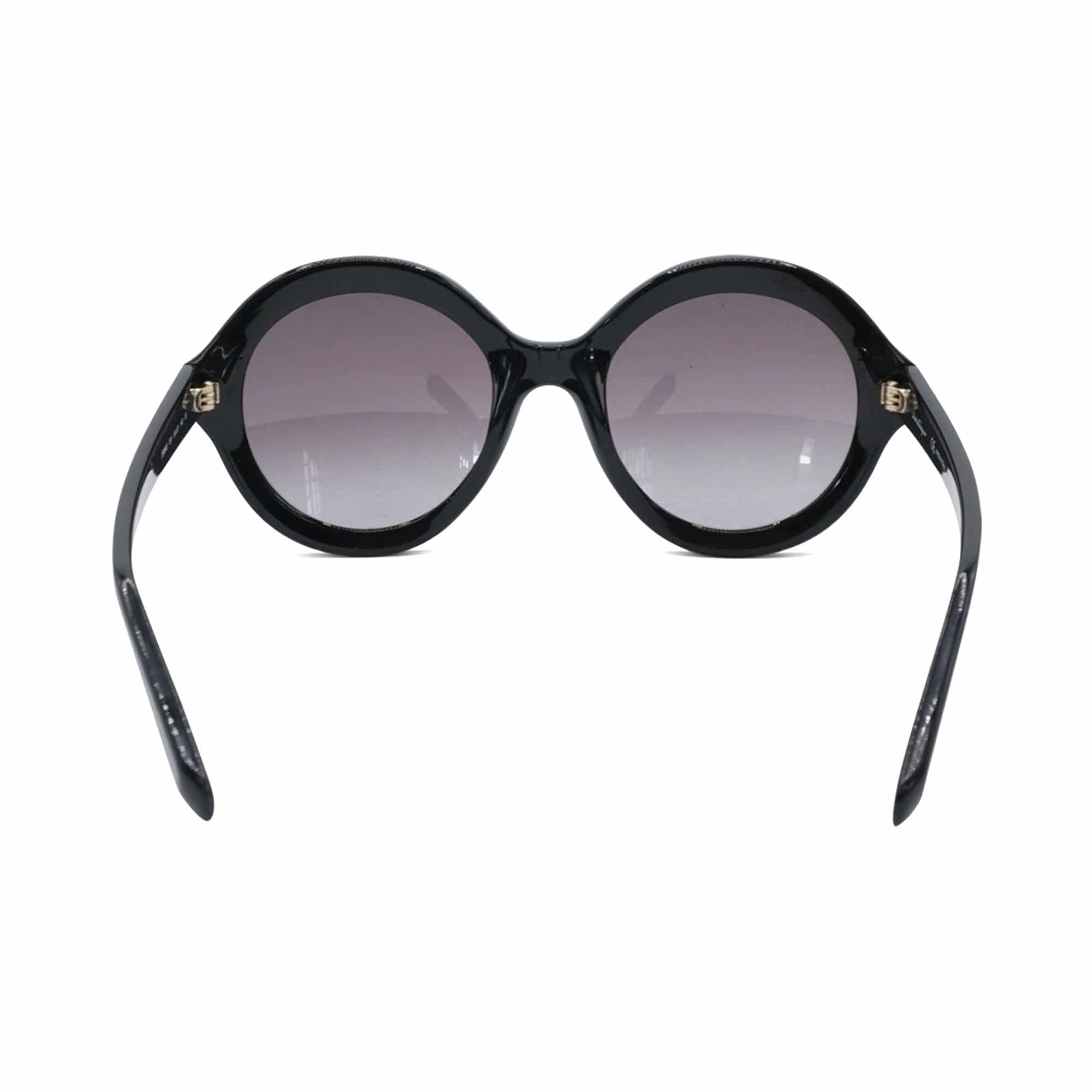 Salvatore Ferragamo sunglasses in black acetate with rounded black lenses and a gold logo on the arm.