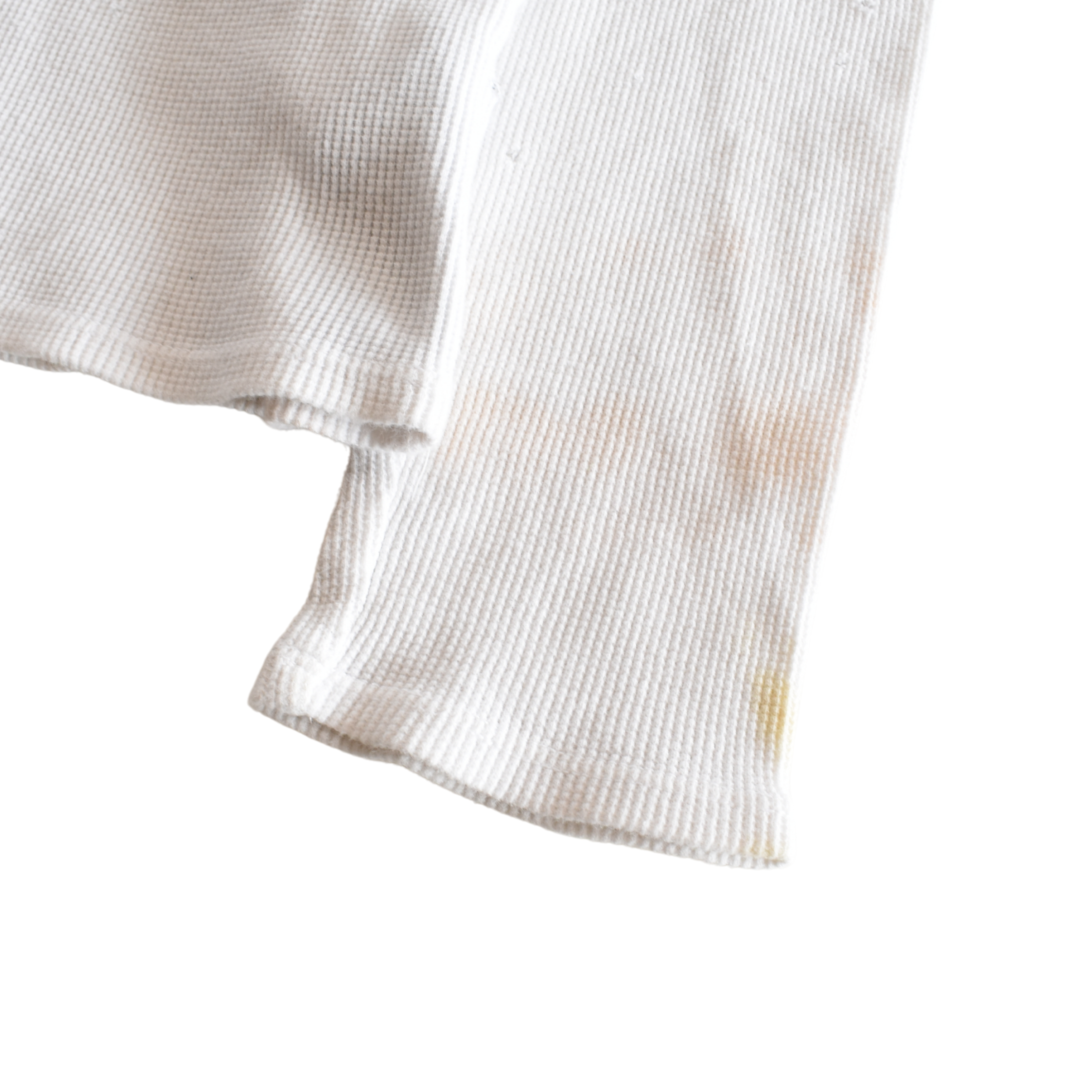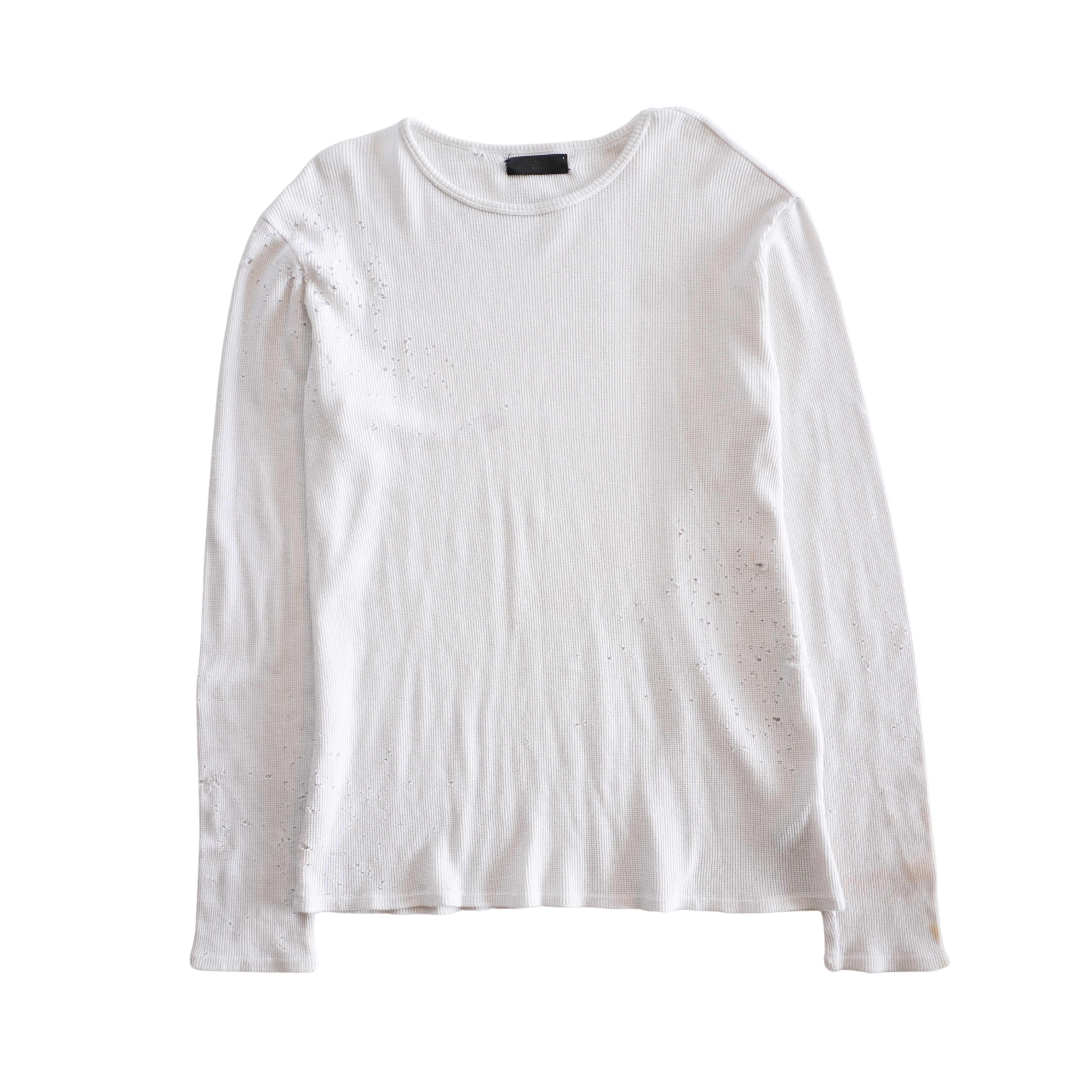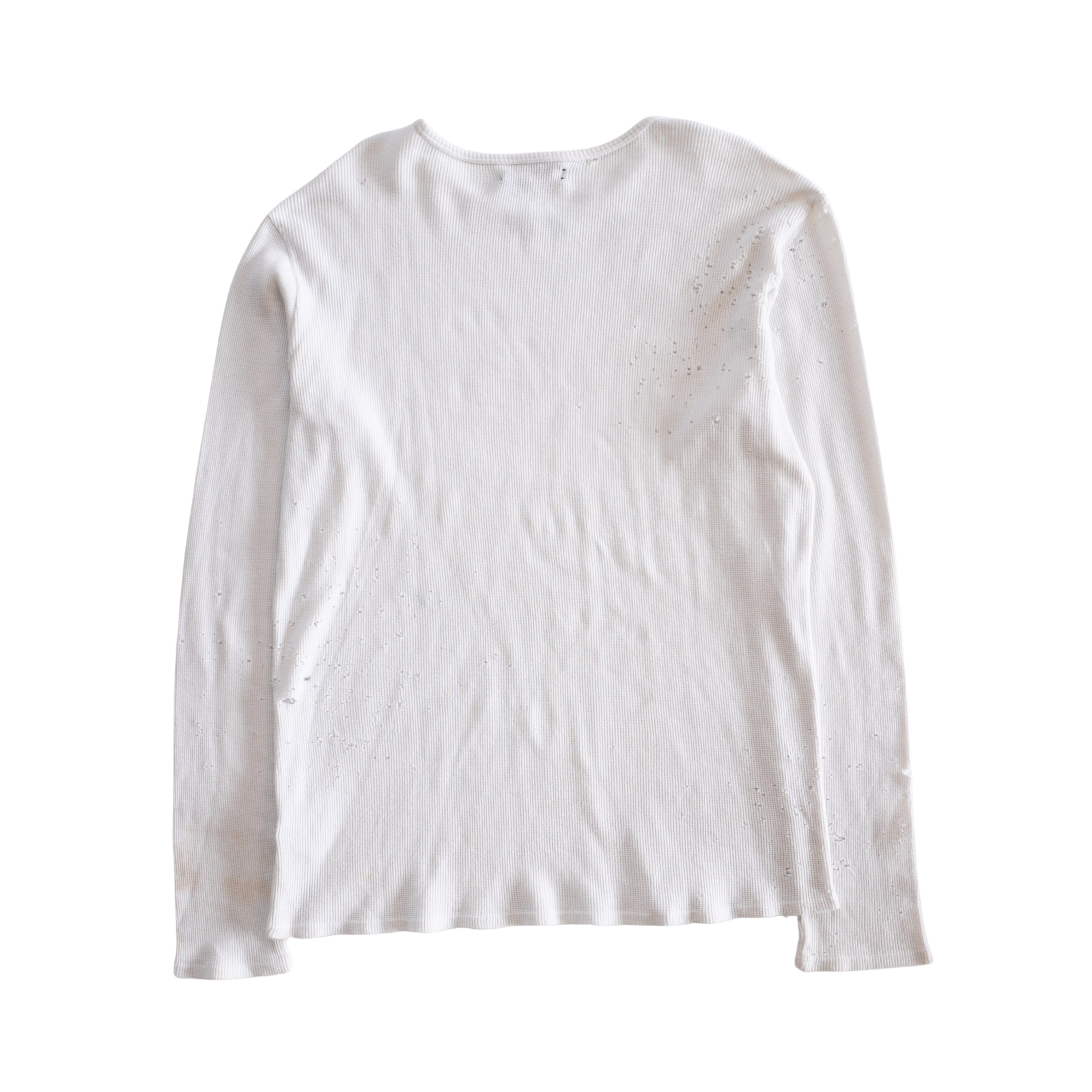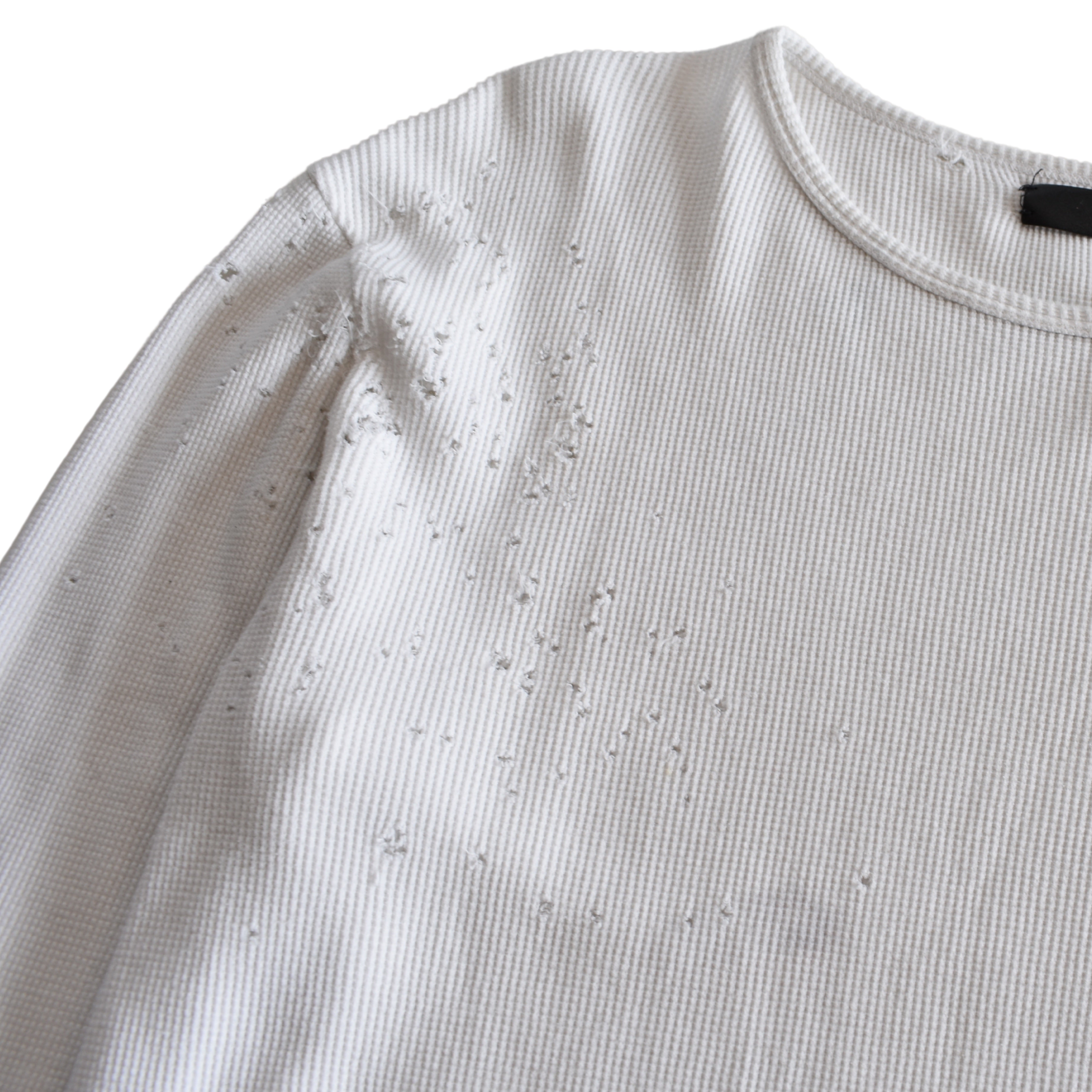 Amiri 'Shotgun' thermal long-sleeve t-shirt in white waffle cotton with all-over rip  distressing.
