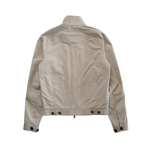 Burberry Brit lightweight sport jacket in beige cotton with a tonal logo on the chest, a front zip opening in gunmetal hardware, and button closures at the collar.