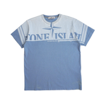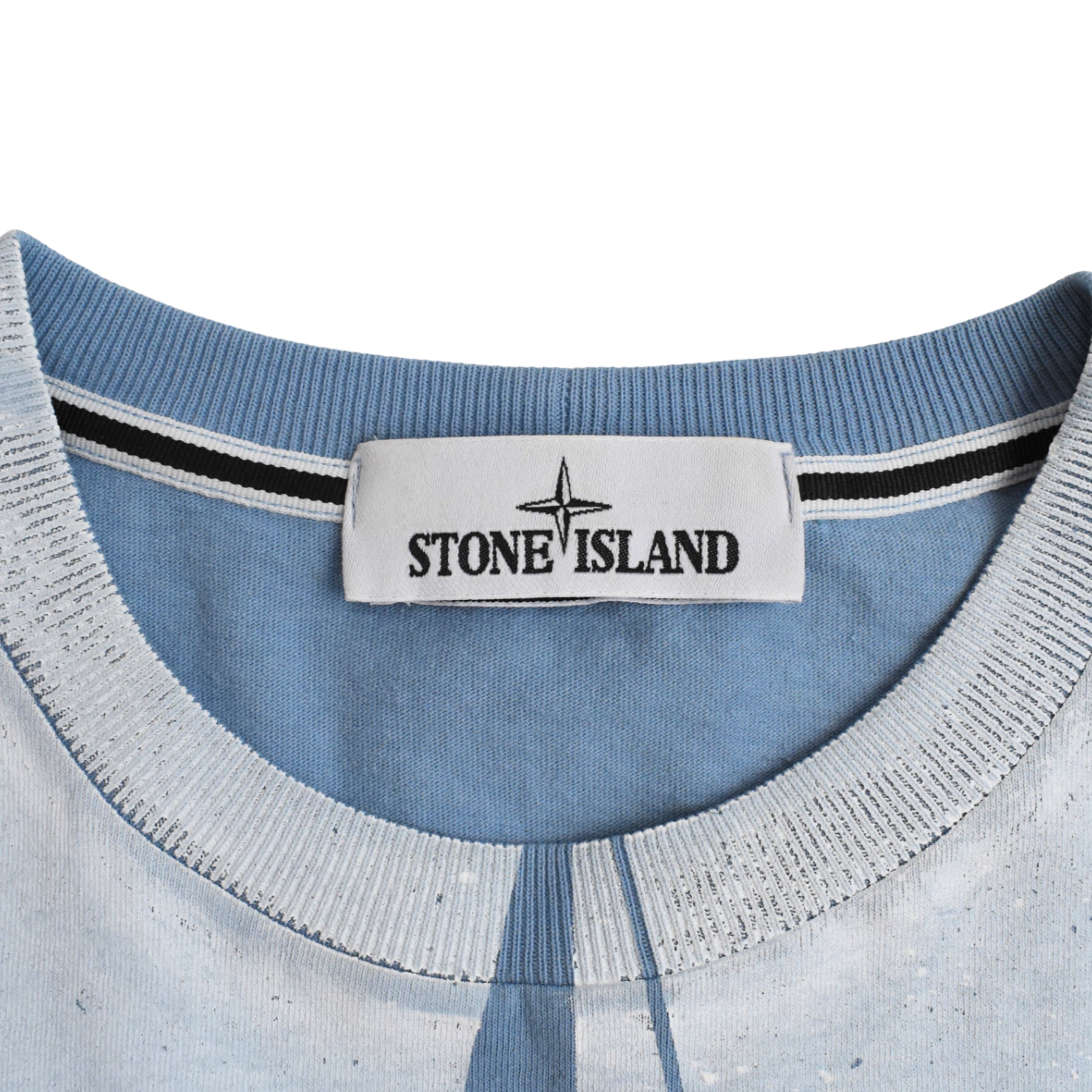 Stone Island 'Mosaic' two-tone t-shirt in blue cotton with a lighter blue speckled chest graphic and a tonal logo across the chest.