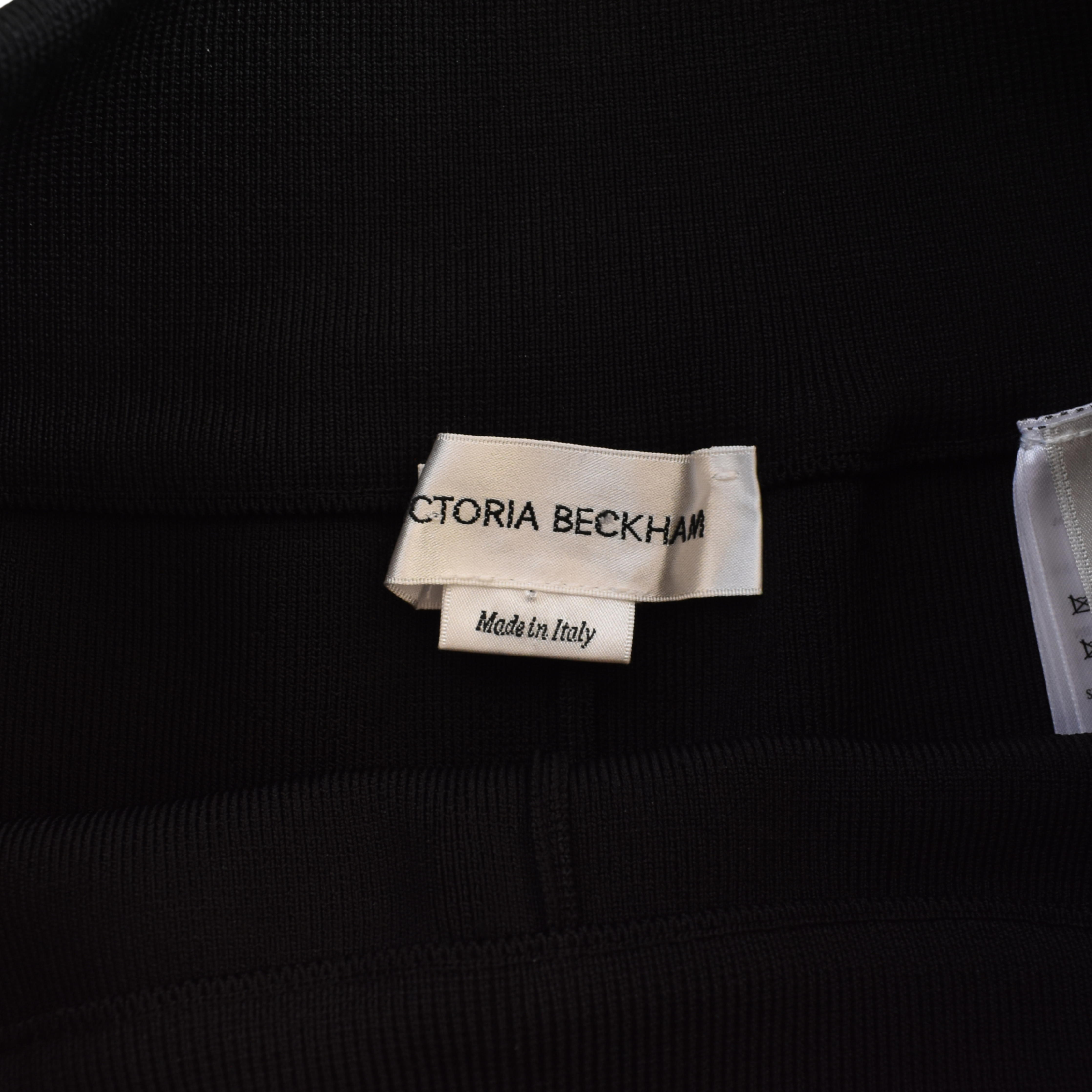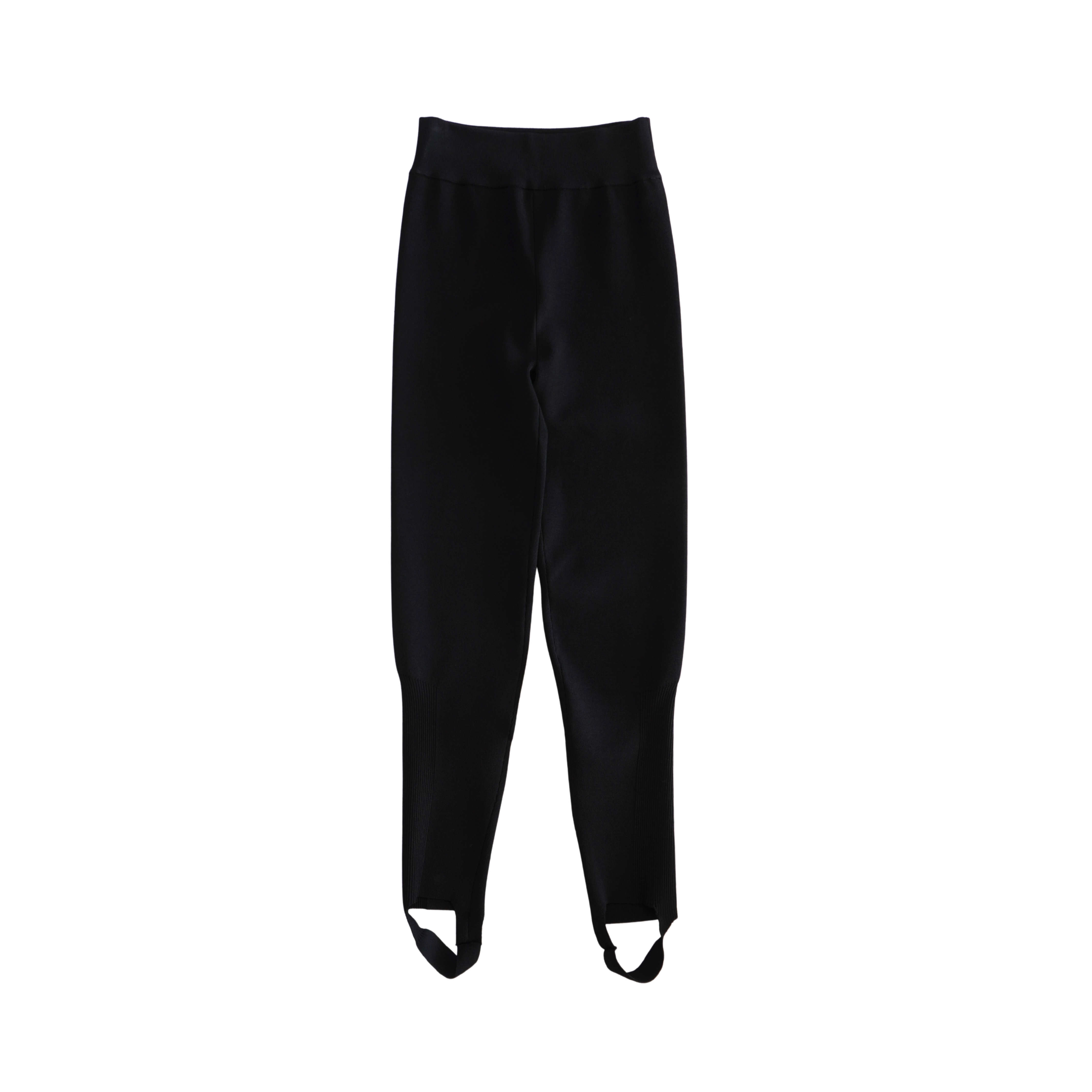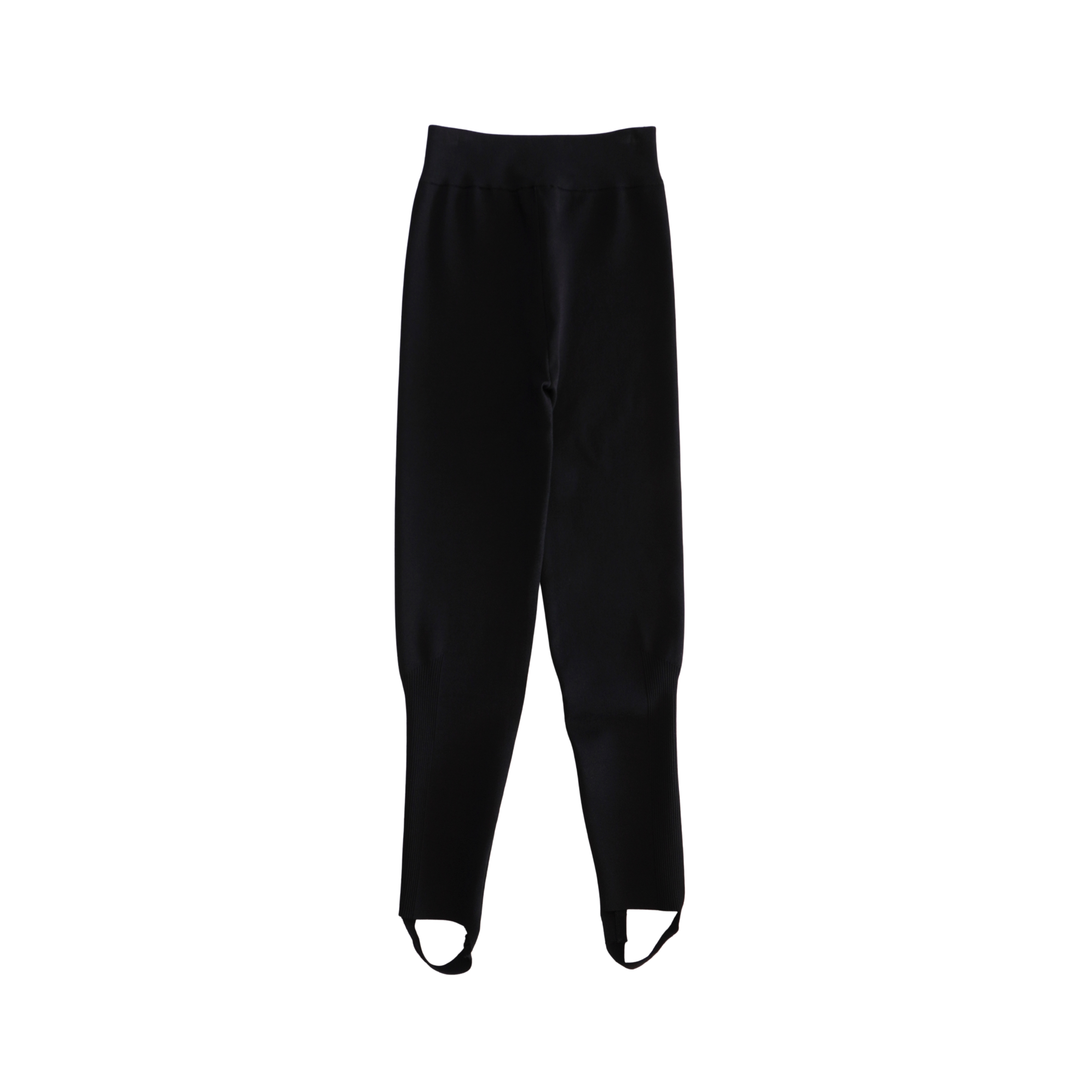 Victoria Beckham high waisted stirrup pants in a black stretch knit with cinched panelling at the calf.