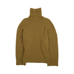 The Attico turtleneck sweater in a mustard yellow-green ribbed knit wool blend.