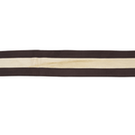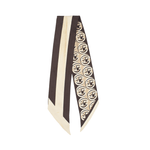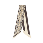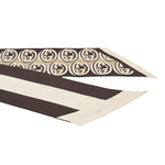 Gucci twilly in brown silk with a beige GG monogram on one side and brown and cream stripes on the other.