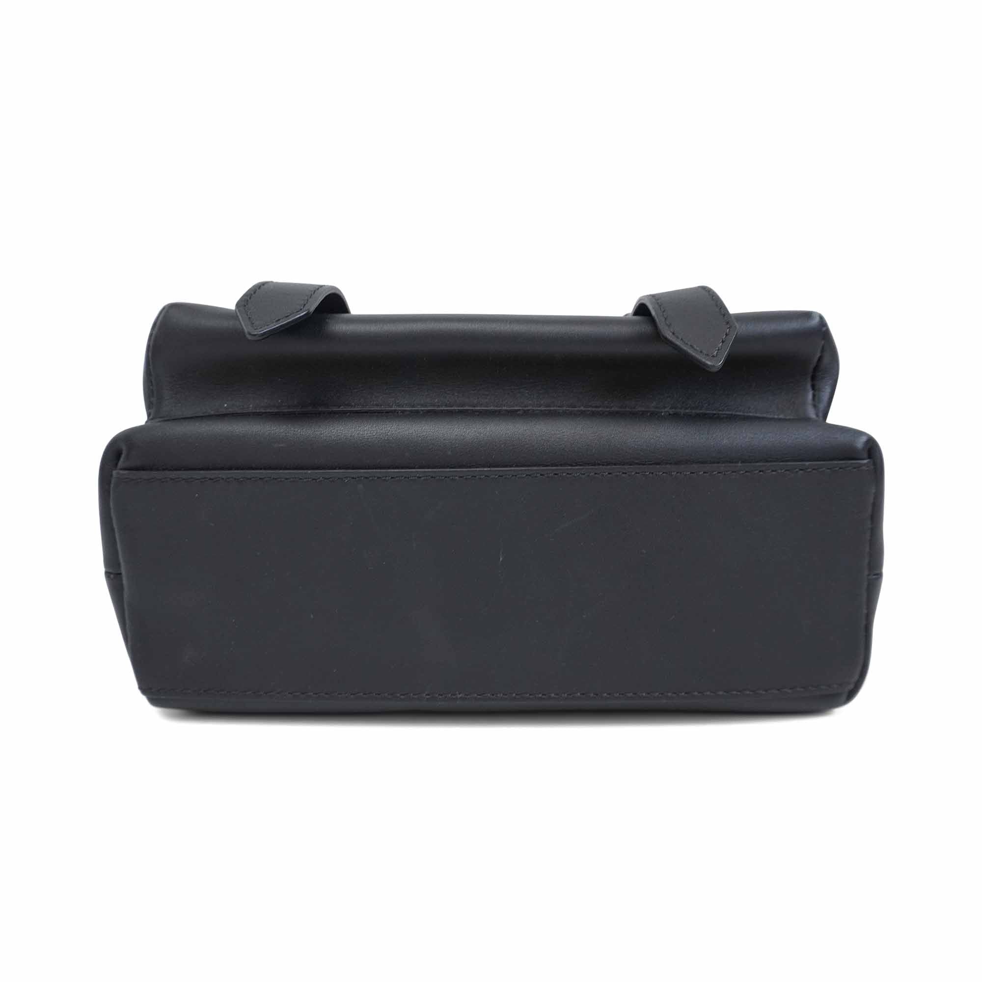 Good. Light scratching throughout exterior leather, wear to bottom corners, some tarnishing in metal hardware.