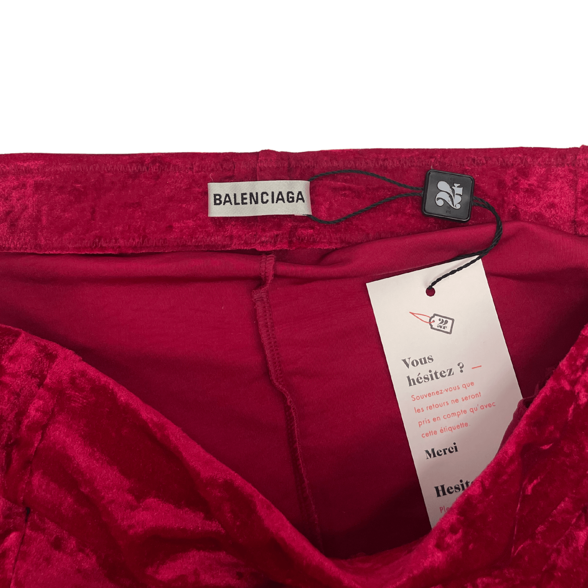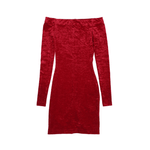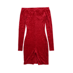 Balenciaga 'Cycling' mini dress in red velvet with an off the shoulder fit and built in shorts