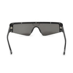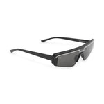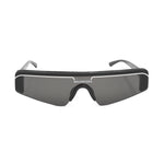 Balenciaga rectangular frameless sunglasses in black with white line details on the top and white logo on the centre. Features acetate armbands with white logo engraved on the ends.