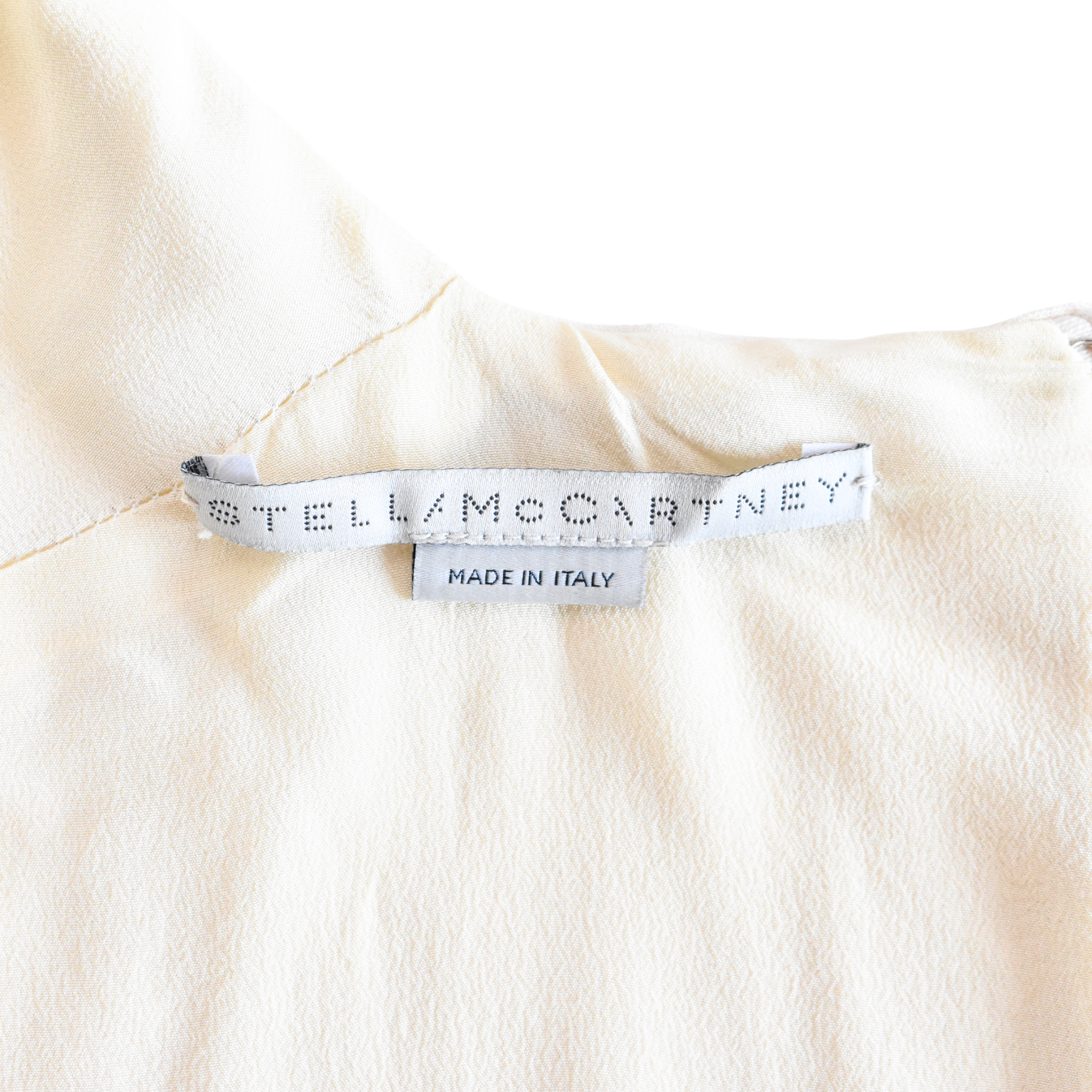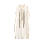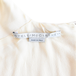 Stella McCartney 'Chain Fringe' shift dress in cream viscose with a deep chest cutout and silver beaded fringe trim on the chest.