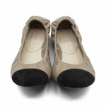 Chanel ballet flats in grey leather with black suede toe cap and a double cc on the heel in gold hardware.