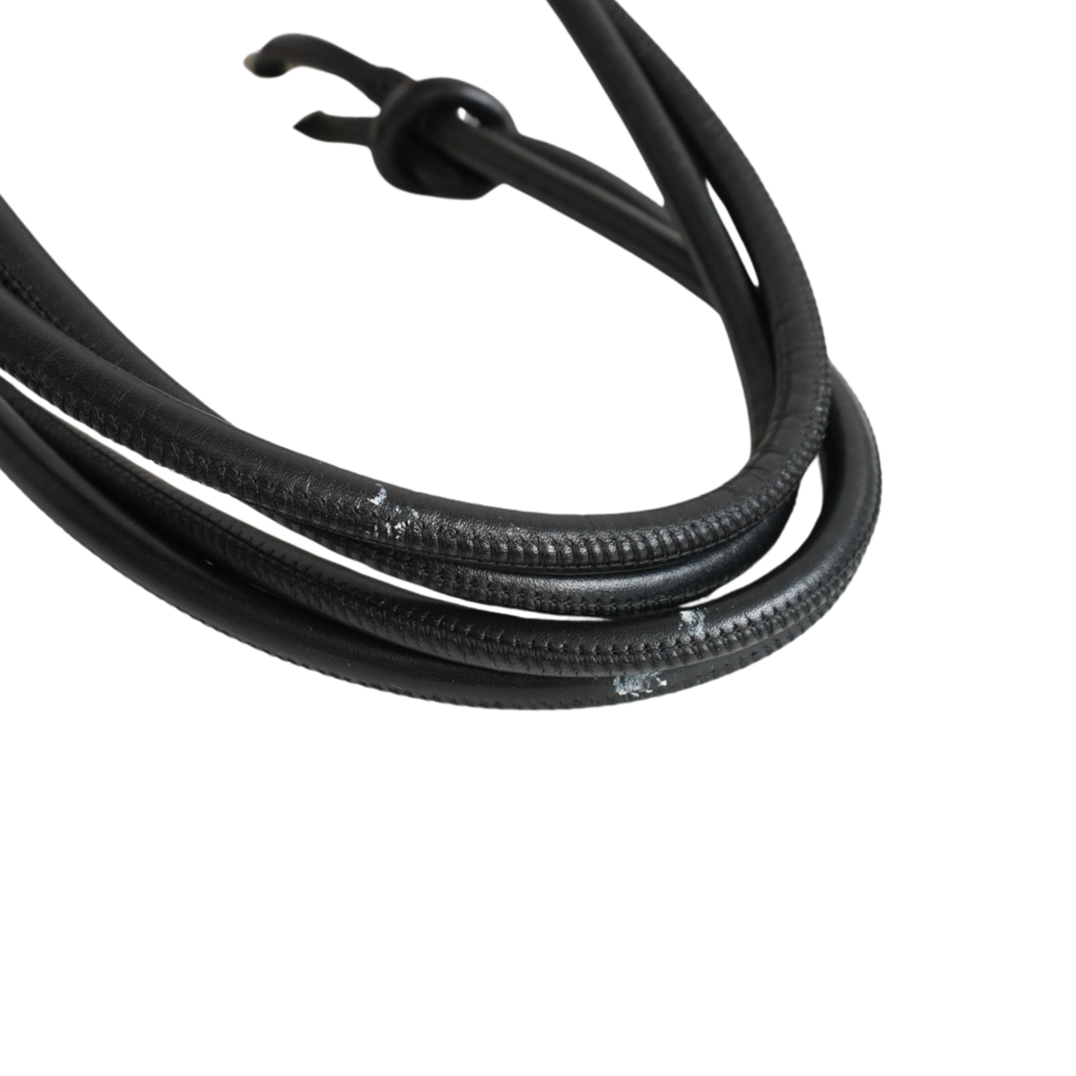 Fair. General wear to leather, fading along edges, colour transfer on back, surface scratches, and creasing. Interior lining is stained.