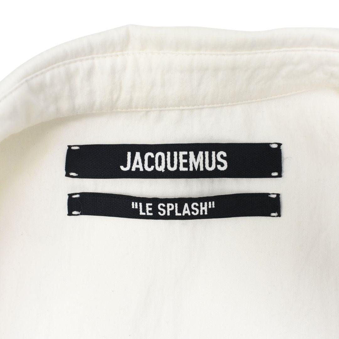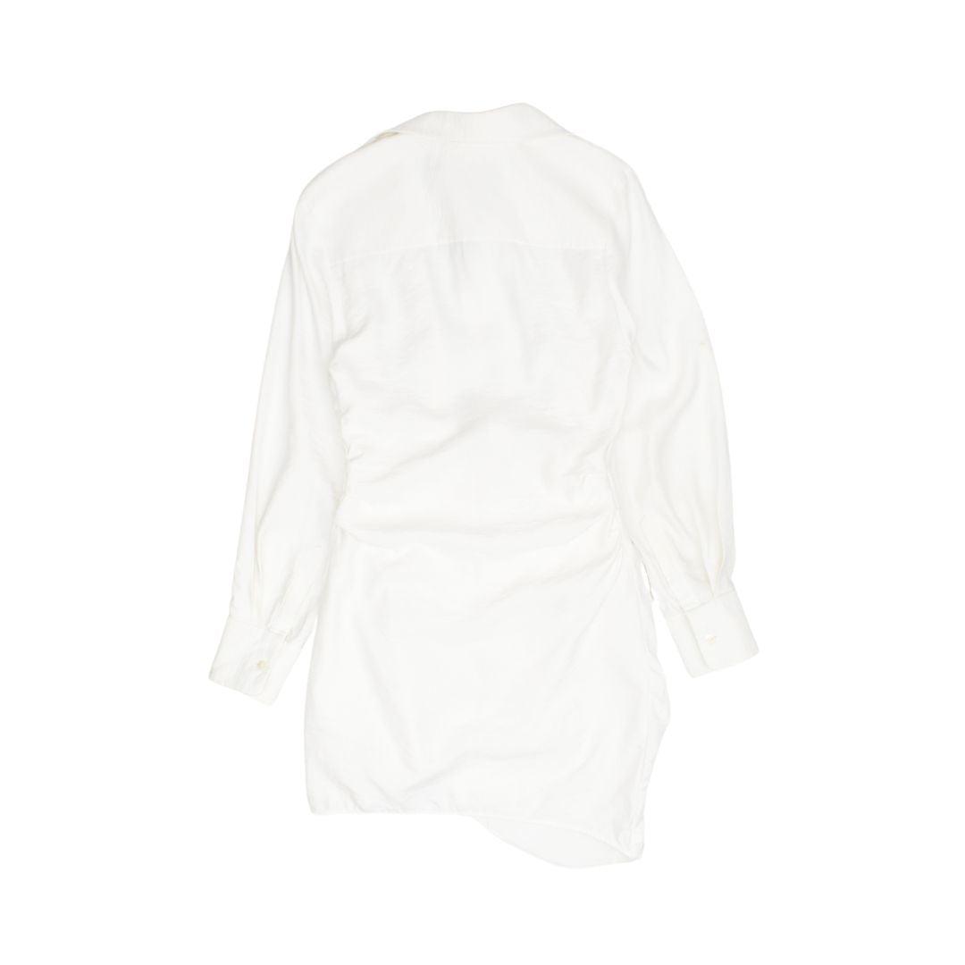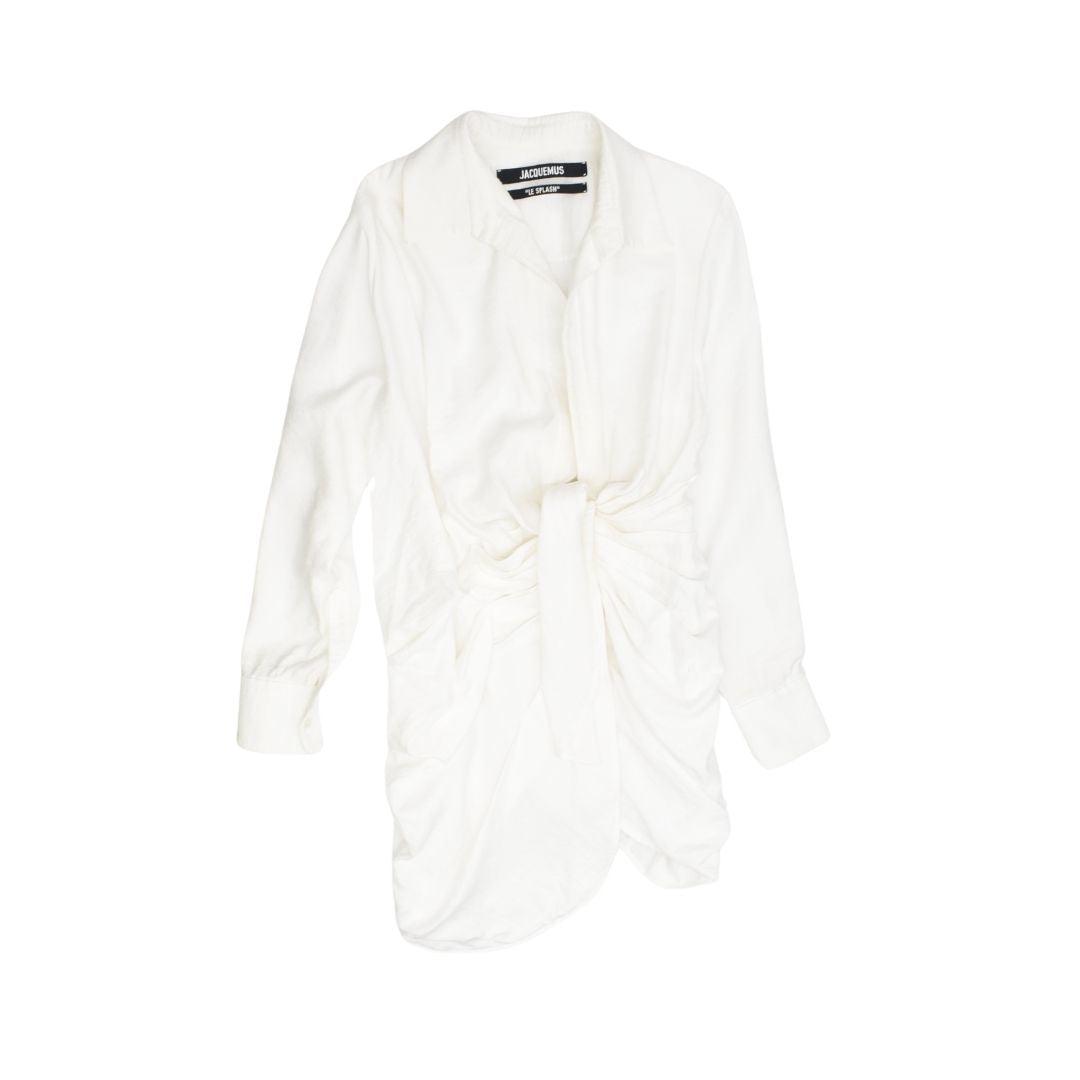 Jacquemus shirt dress in white with a deep neckline and a twisted drape fit.