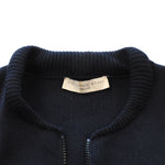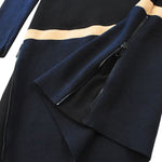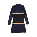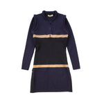 Stella McCartney long-sleeve sweater dress in black knit with a ribbed neckline detail and beige panels. Features a quarter zip closure on the neckline and side zip detailing.