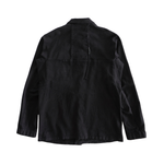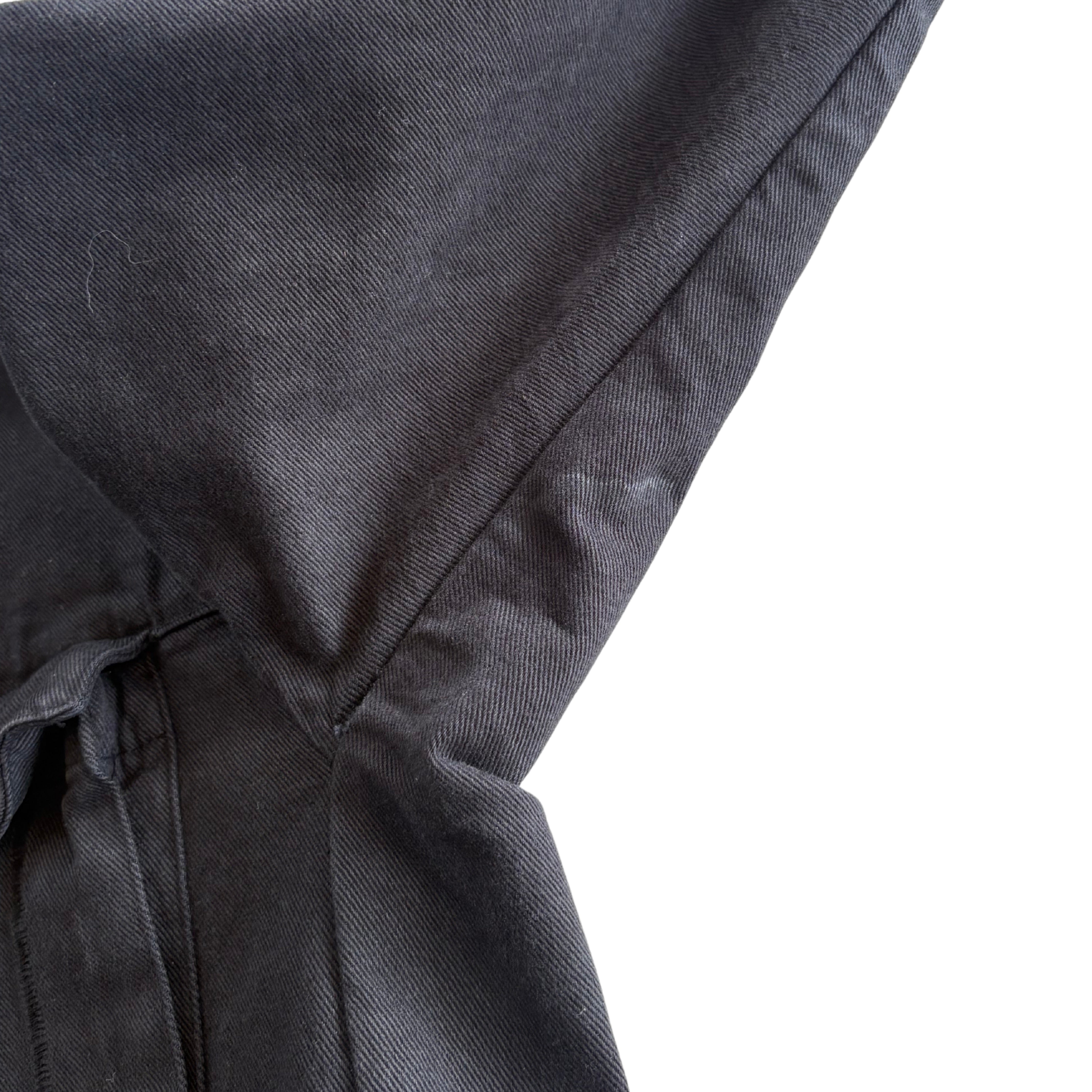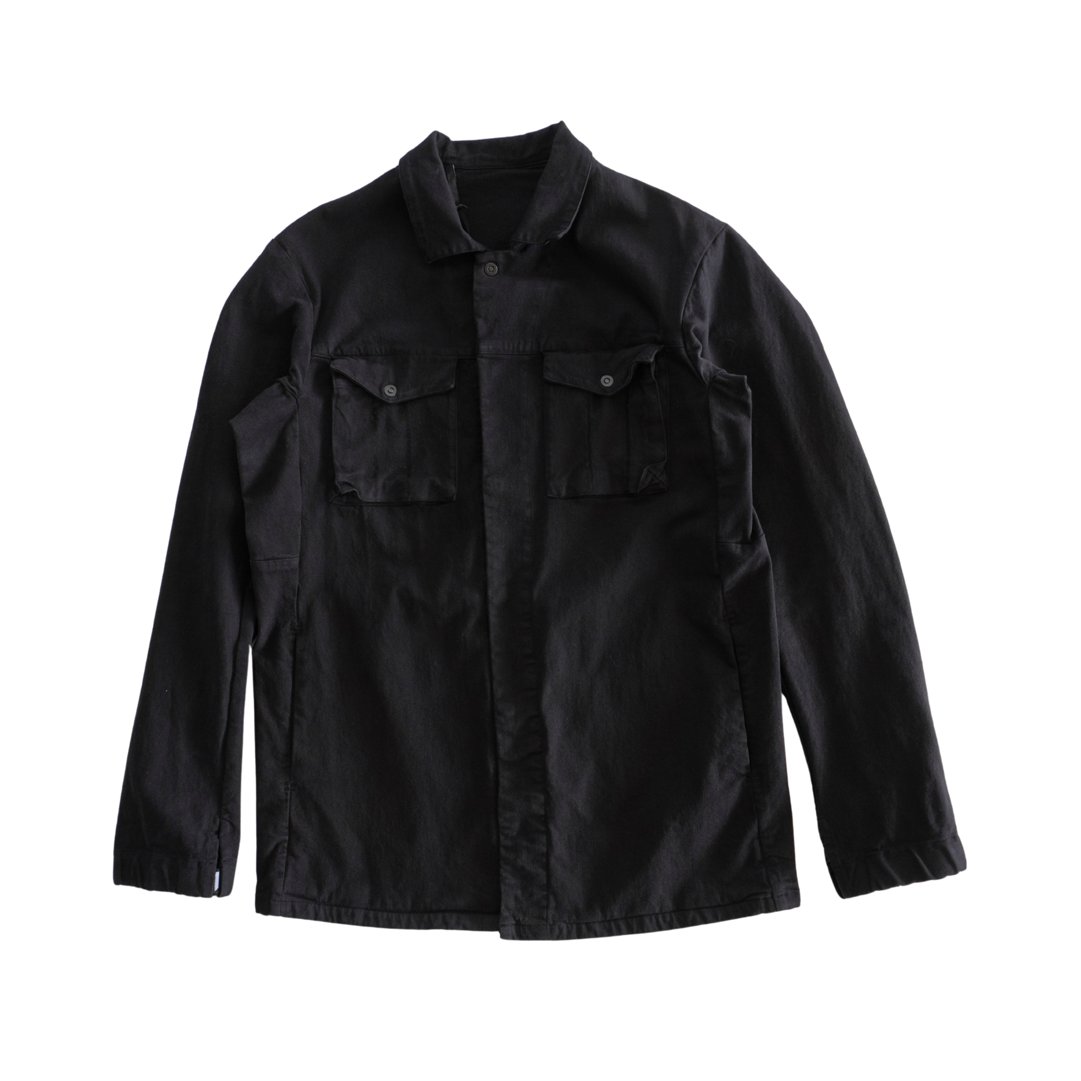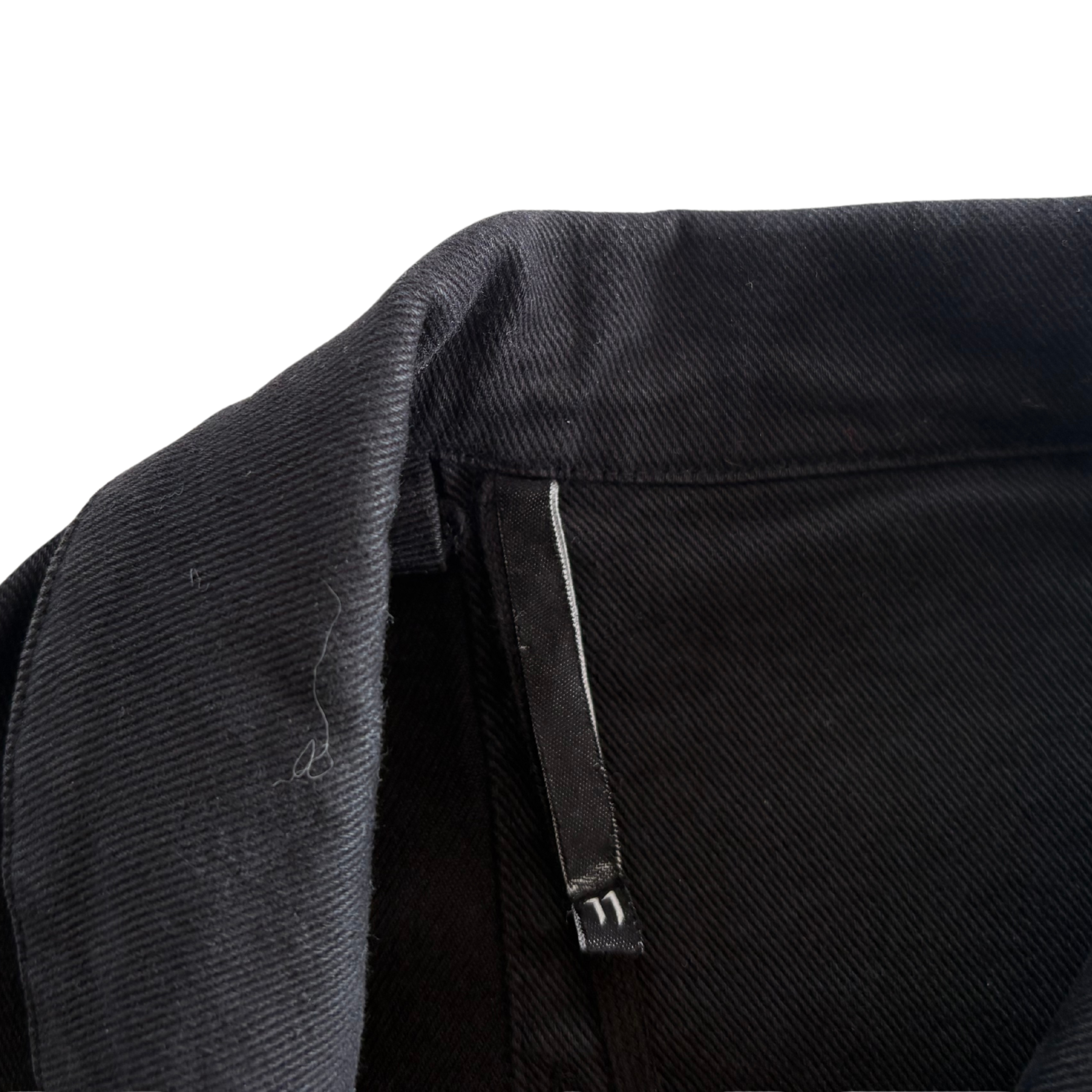 11 by Boris Bidjan Saberi oversized shirt in black denim with a hidden front button closure, chest pockets, and a collar.