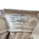 Brunello Cucinelli trousers in beige cotton with a fold-over waistband, a black canvas belt, and a wide leg fit.