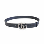 Gucci thin belt in black leather with a silver 'Marmont' GG buckle.