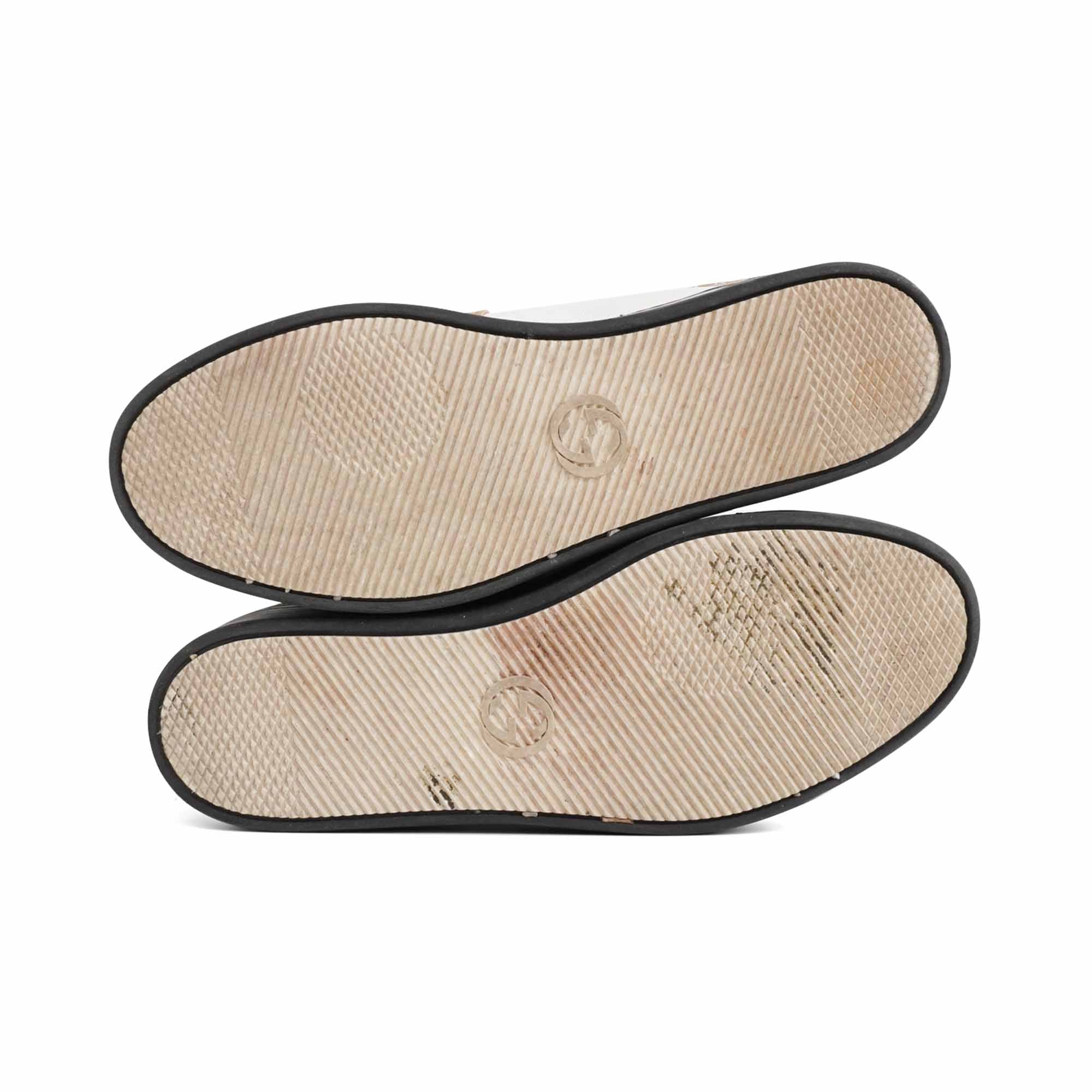 Fair. Scuffing to toe box and heels, staining throughout leather, some creasing to toe, discolouration to white leather.