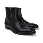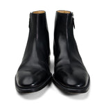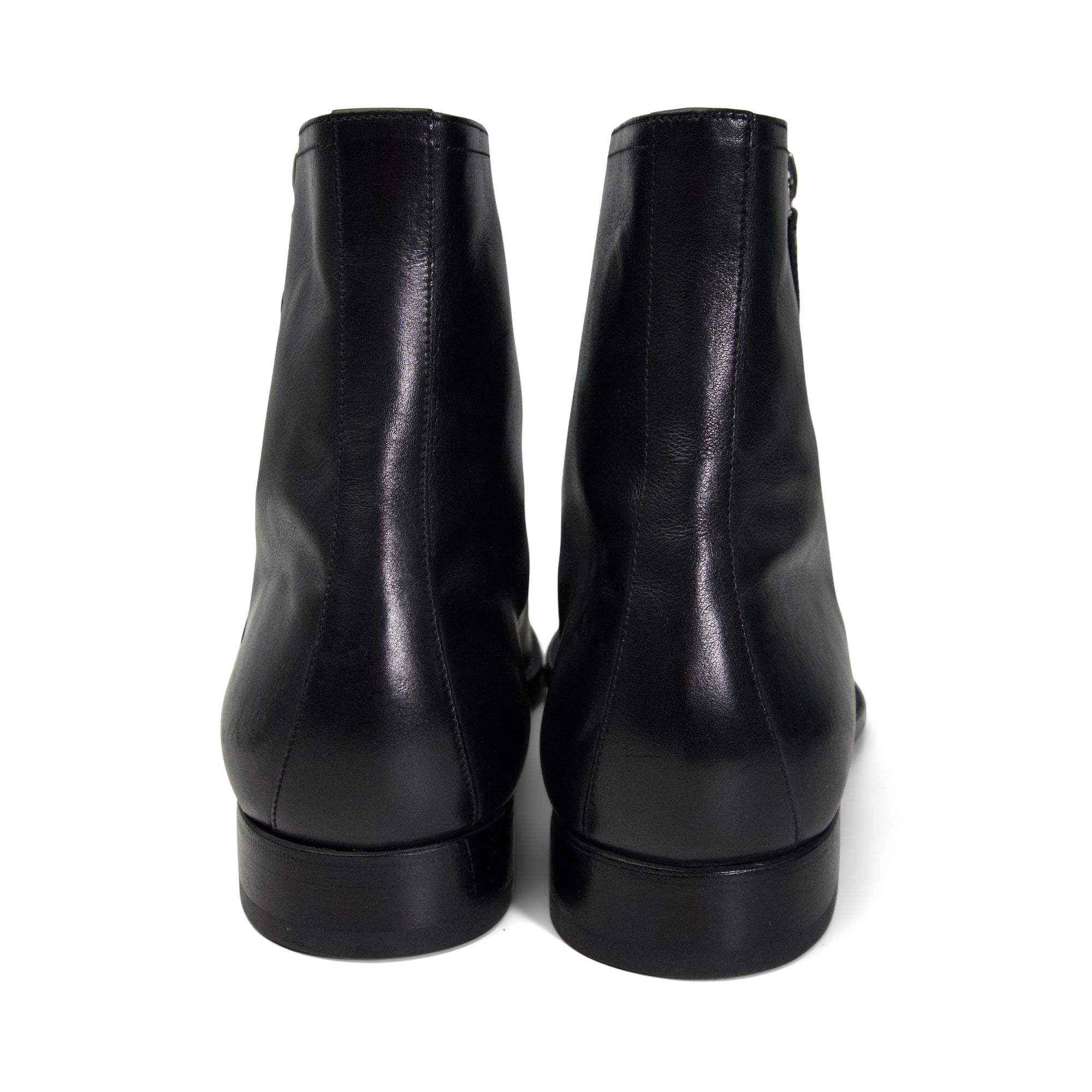 Hermes 'Jerry Leather' almond toe ankle boots in black smooth leather with outer zipper closure in silver hardware.