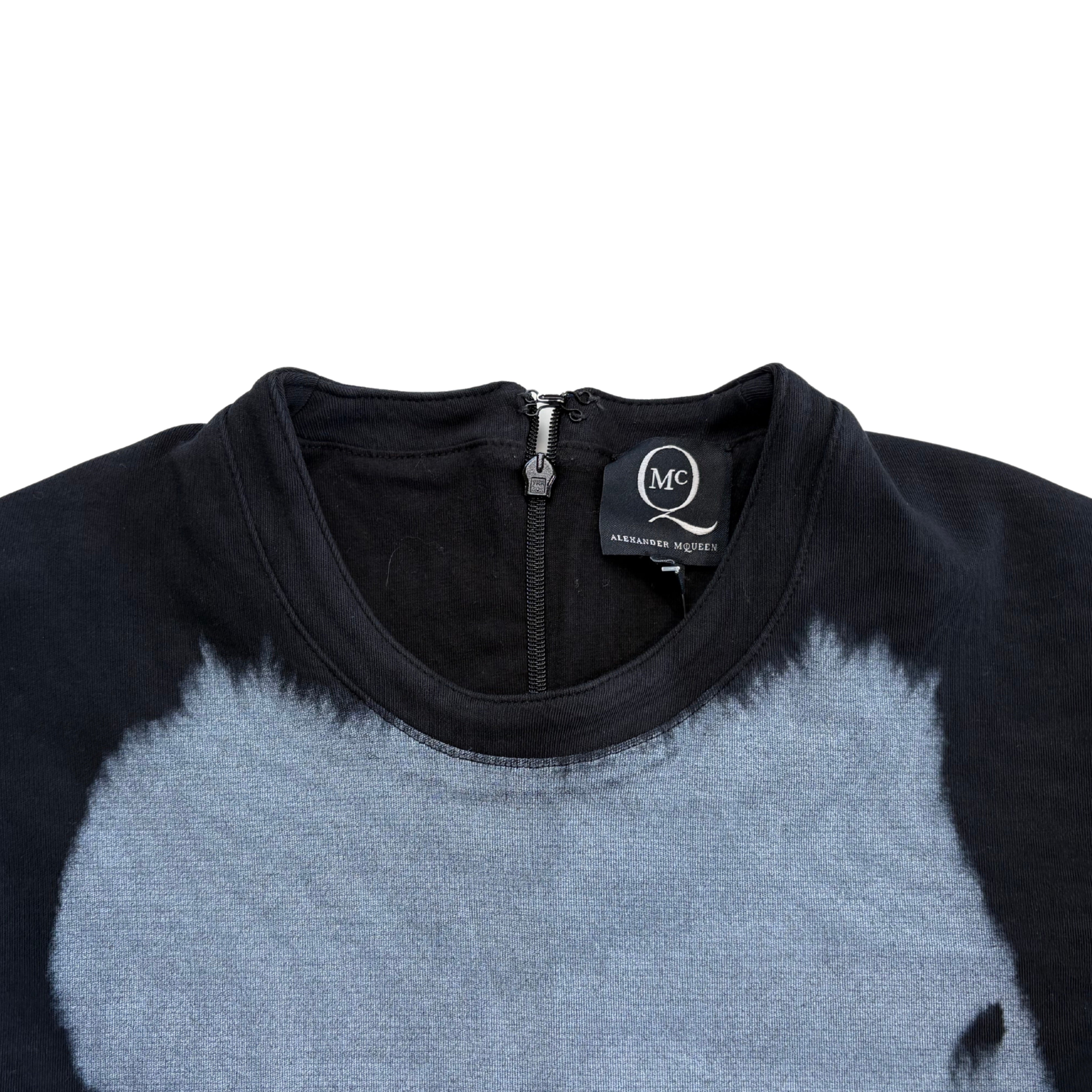 McQ by McQueen 'Skull' fitted dress in black with a grey smoke skull graphic on the chest.