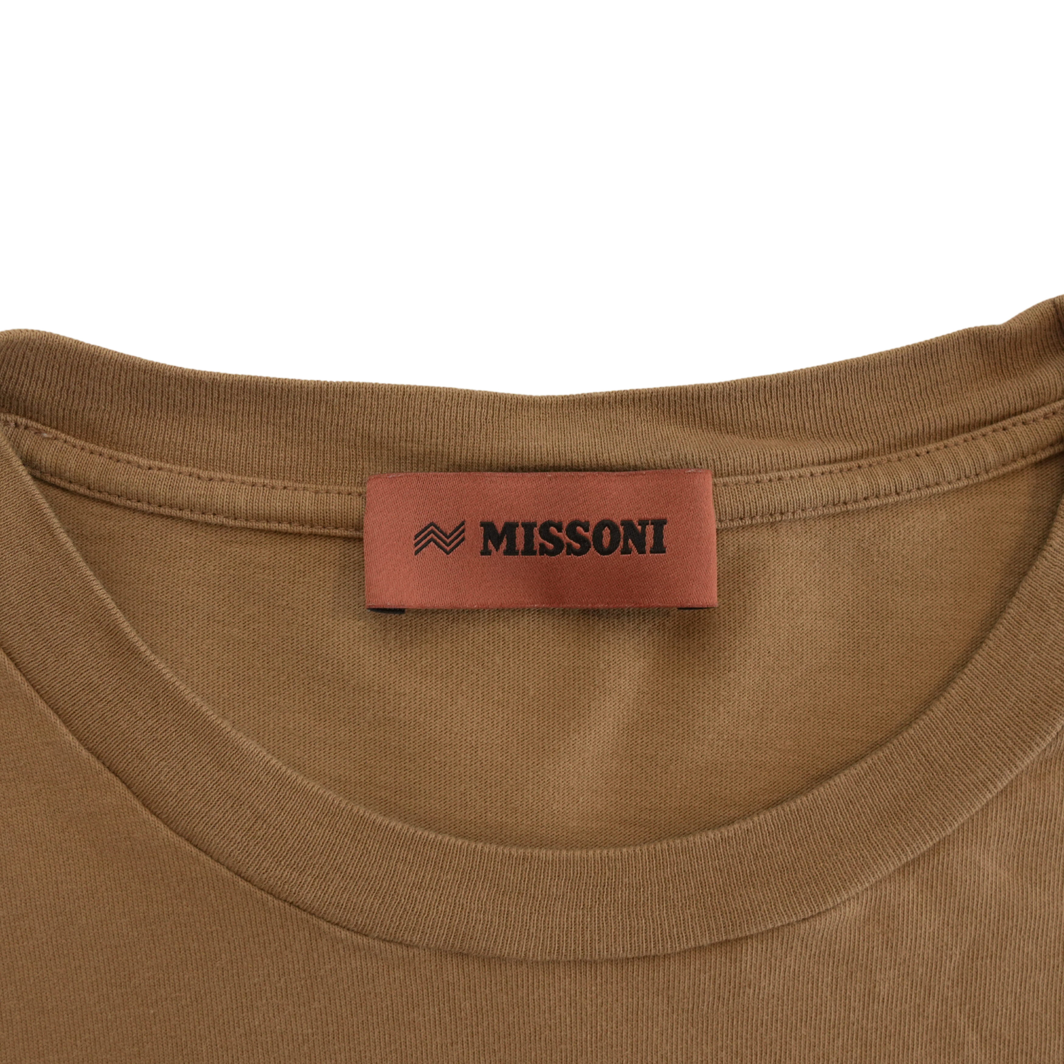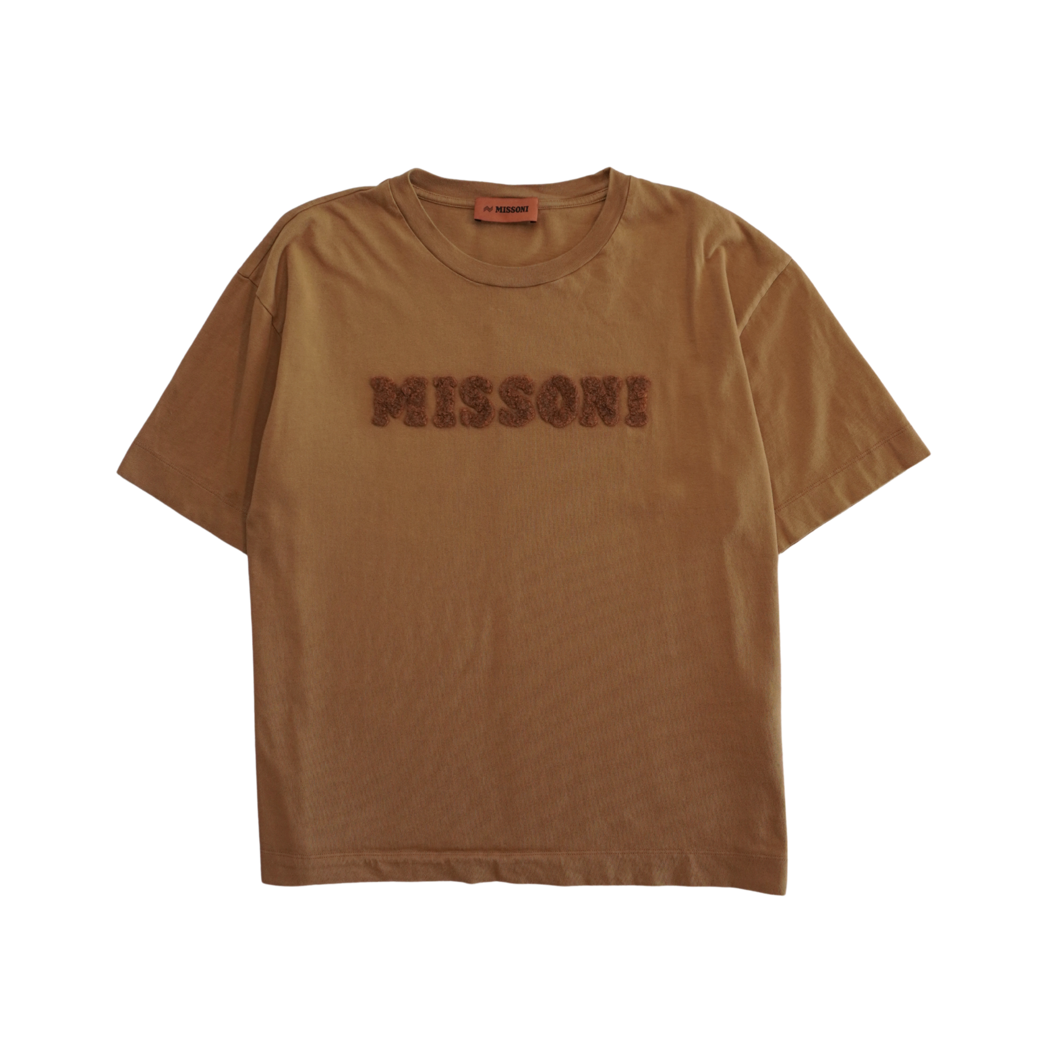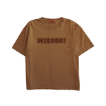 Missoni t-shirt in brown cotton with wool tufted logo lettering on the chest.