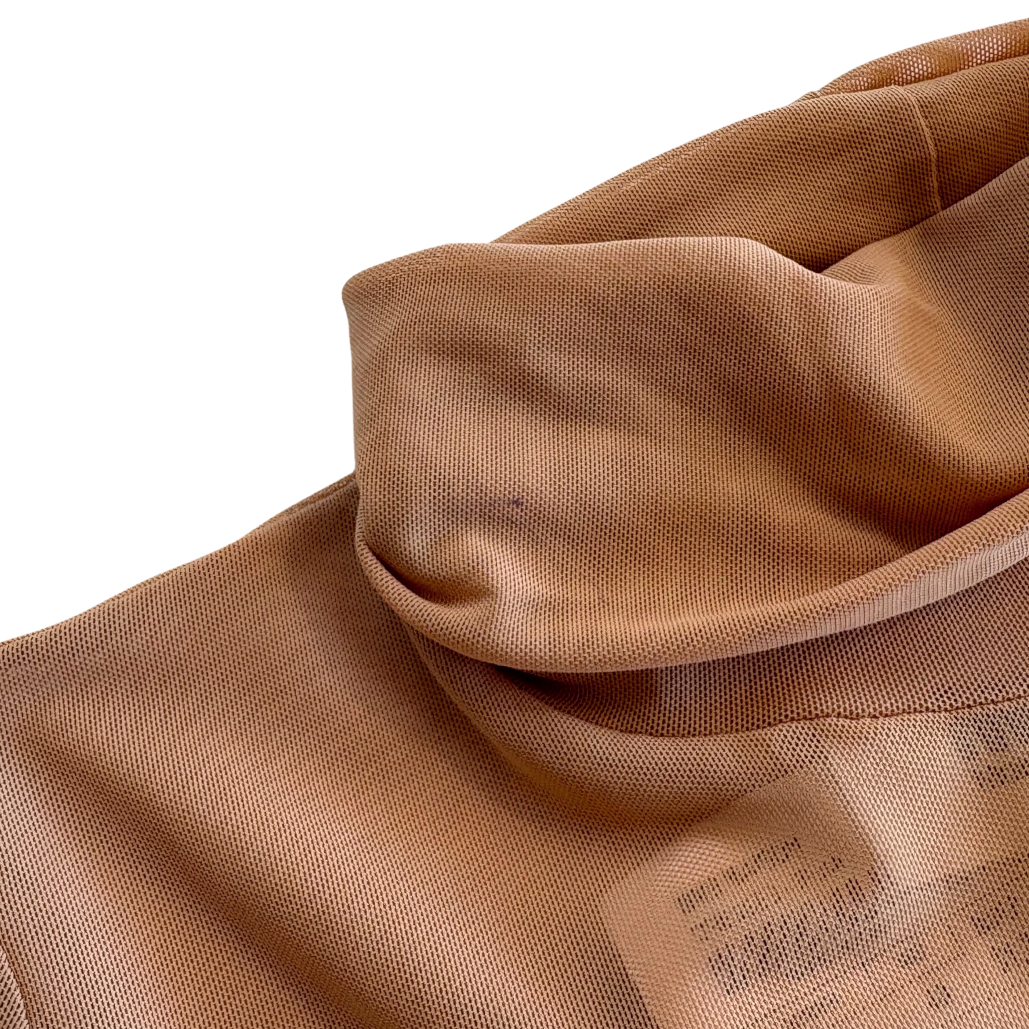MM6 full length, long sleeve, fitted dress in sheer nude mesh with fold over turtleneck.