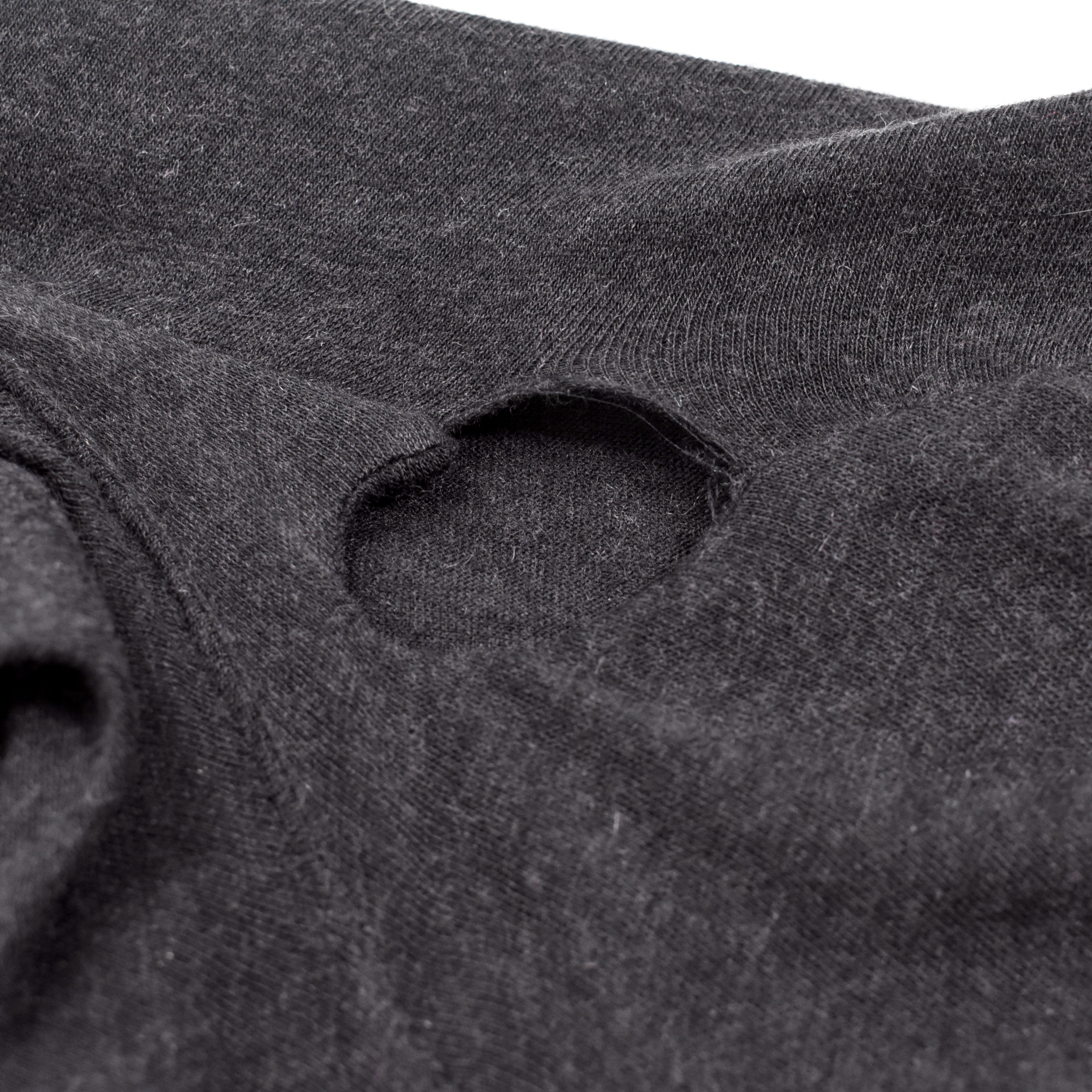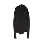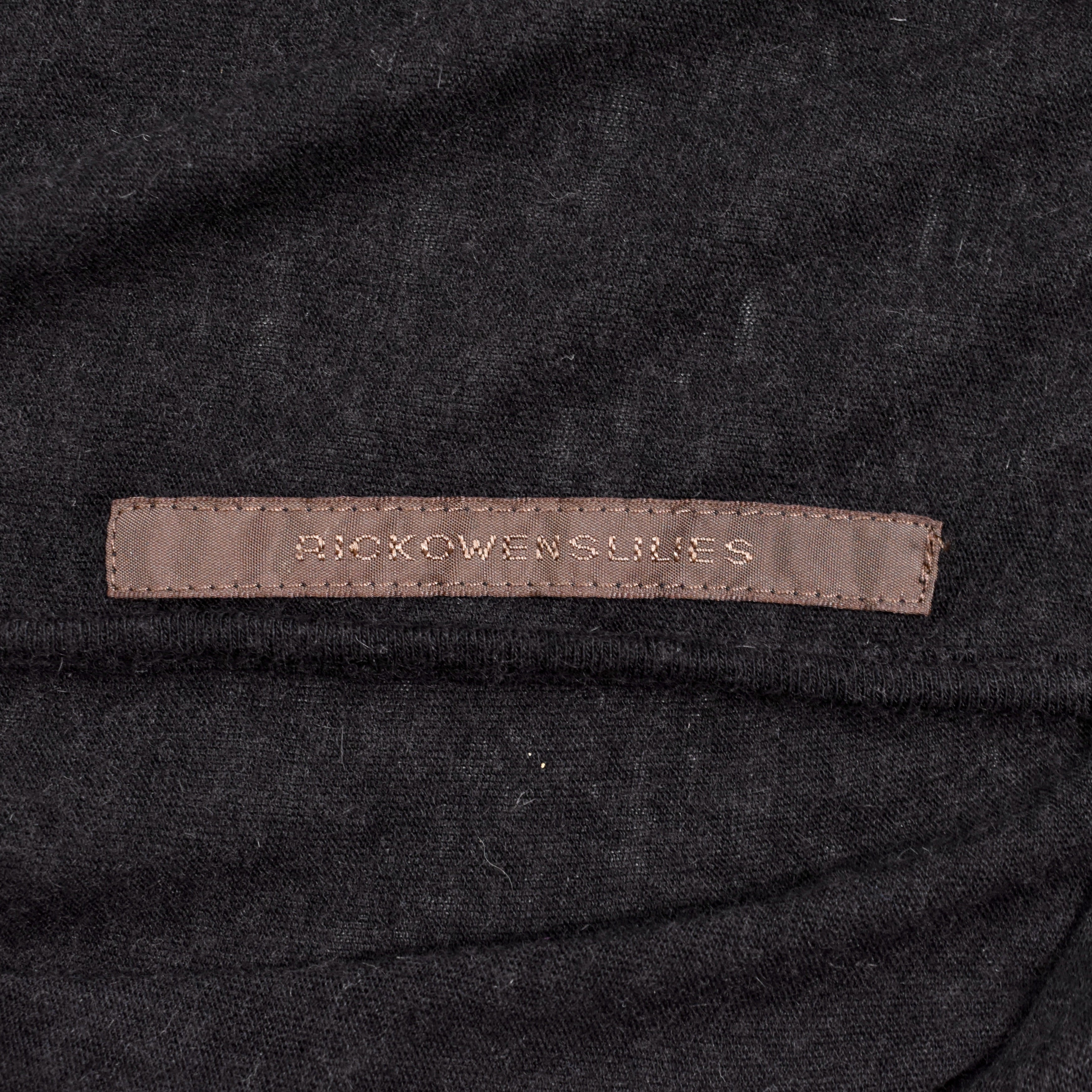 Rick Owens Lilies waterfall cardigan in faded black cotton with a an open front, a waterfall style collar, and a hole in the shoulder for draping the collar.
