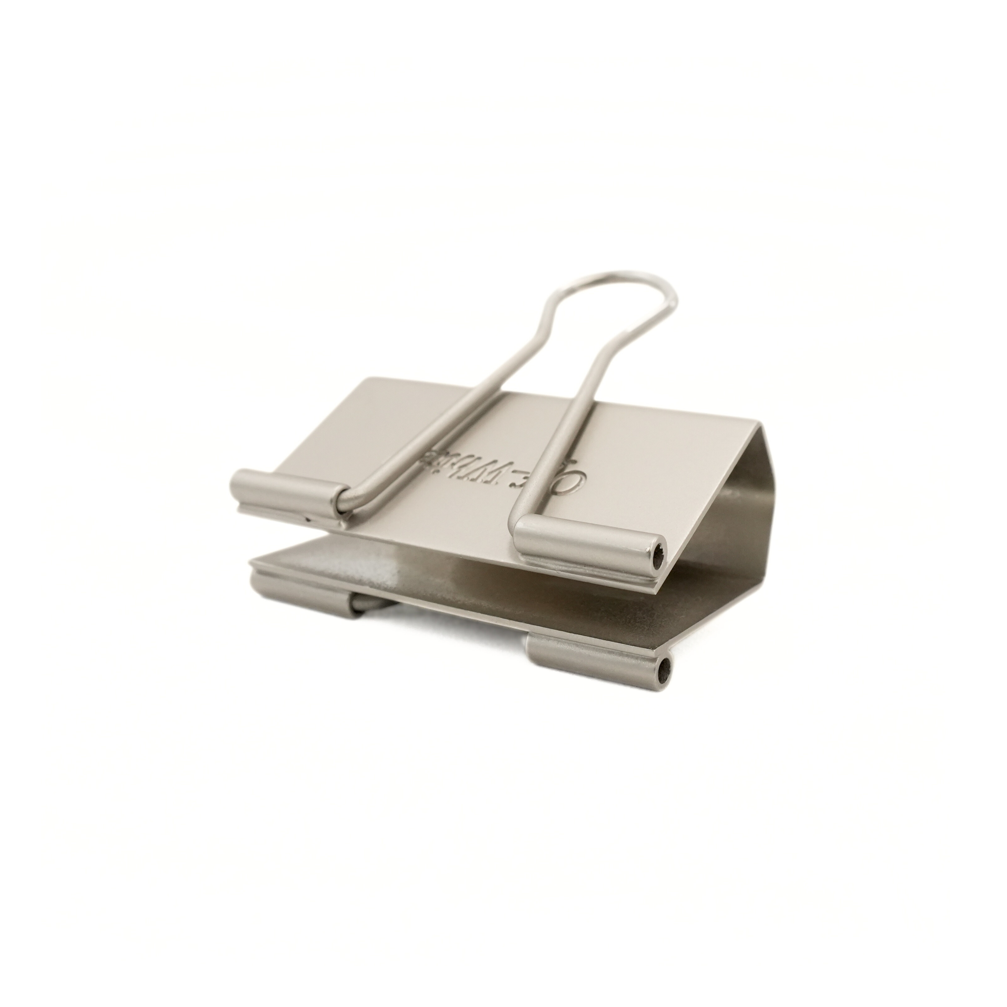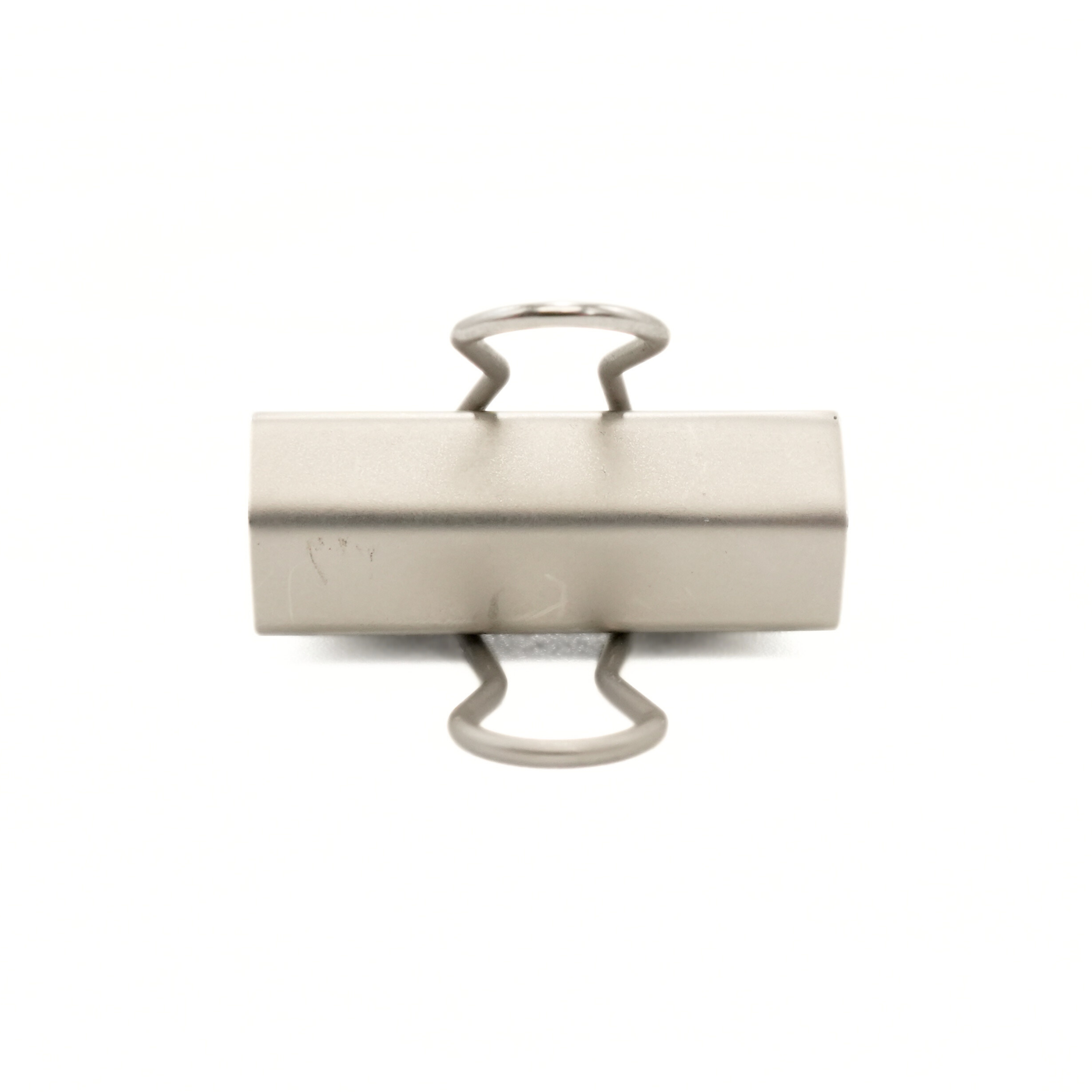 OFF-WHITE SS19 metal binder clip in silver toned metal with an embossed logo on the front.