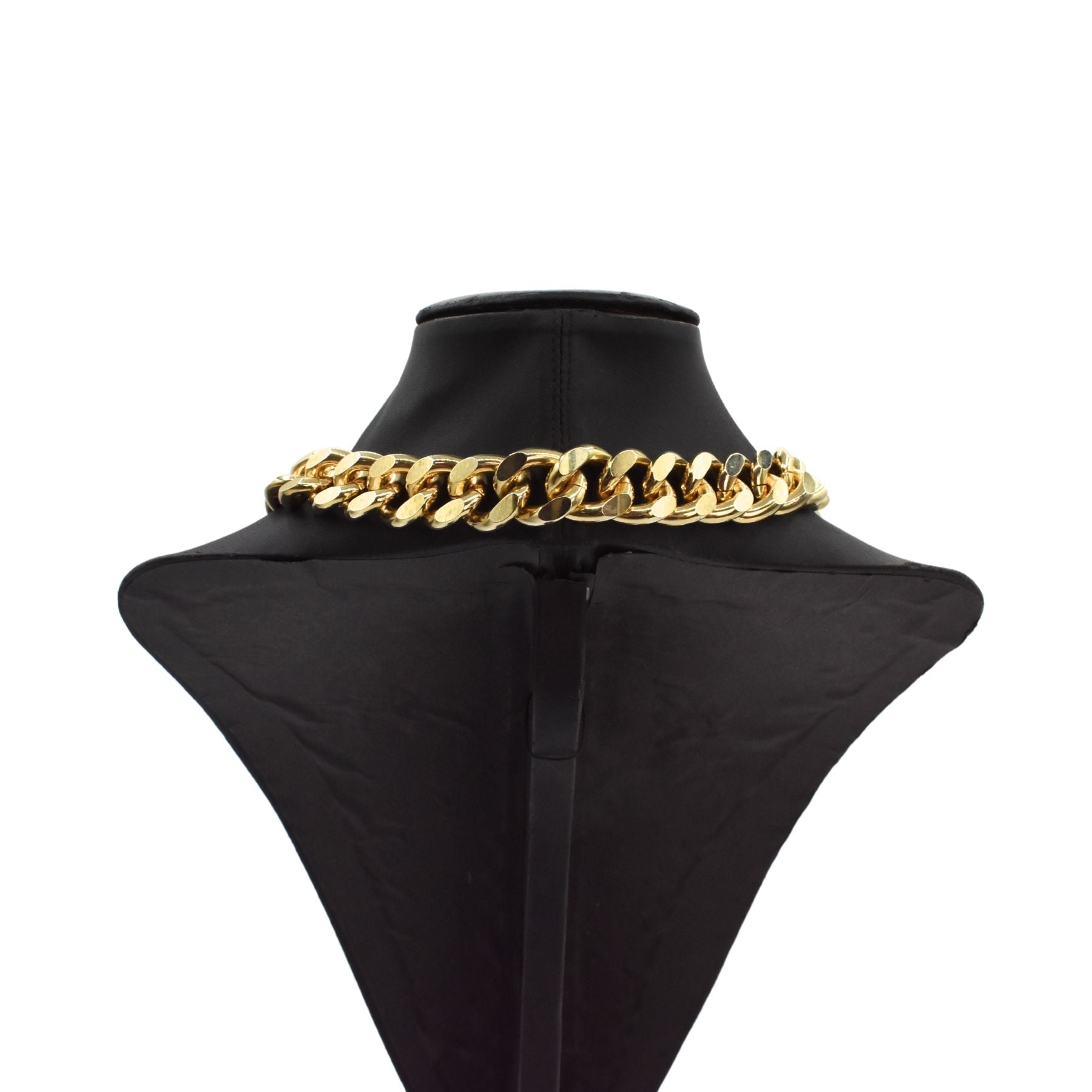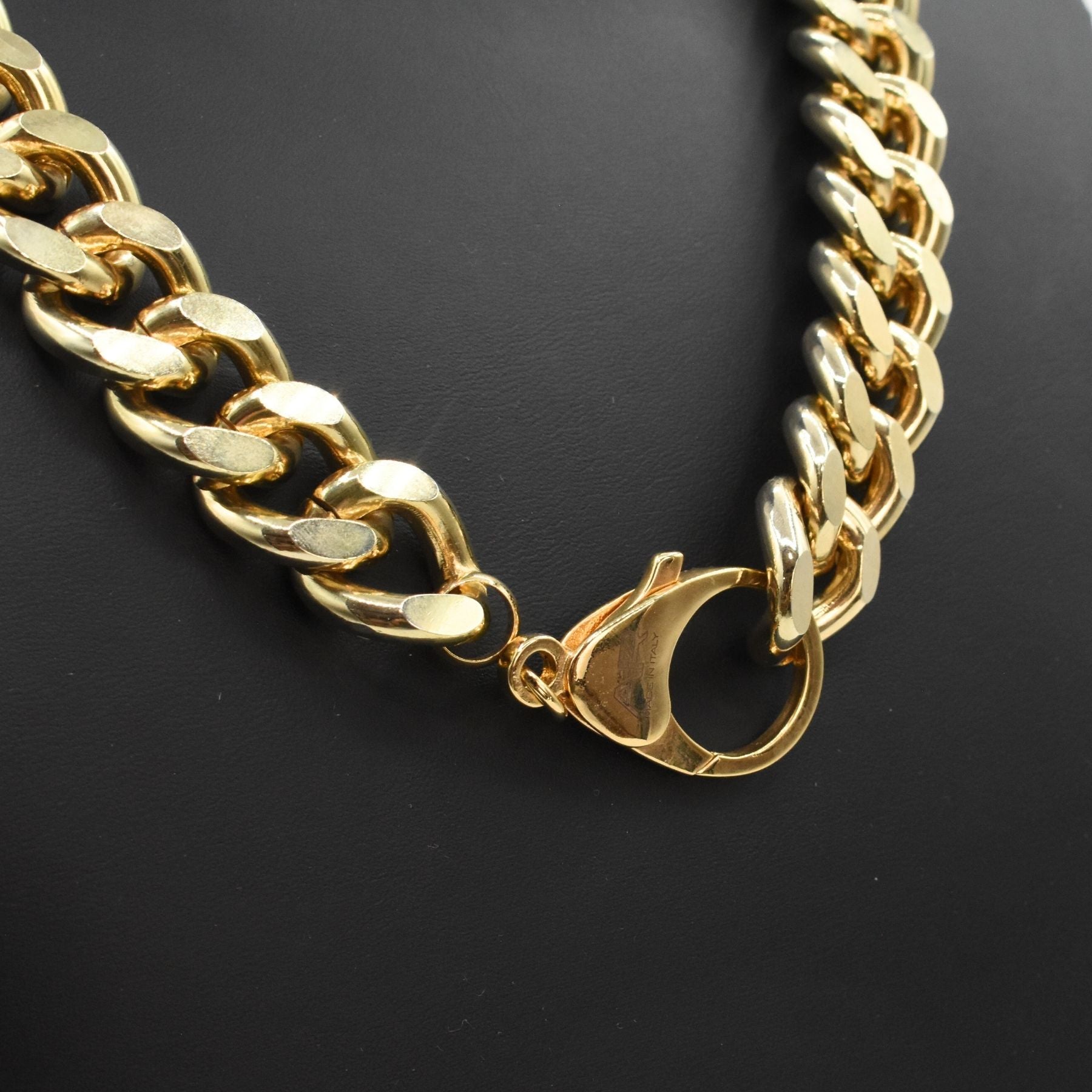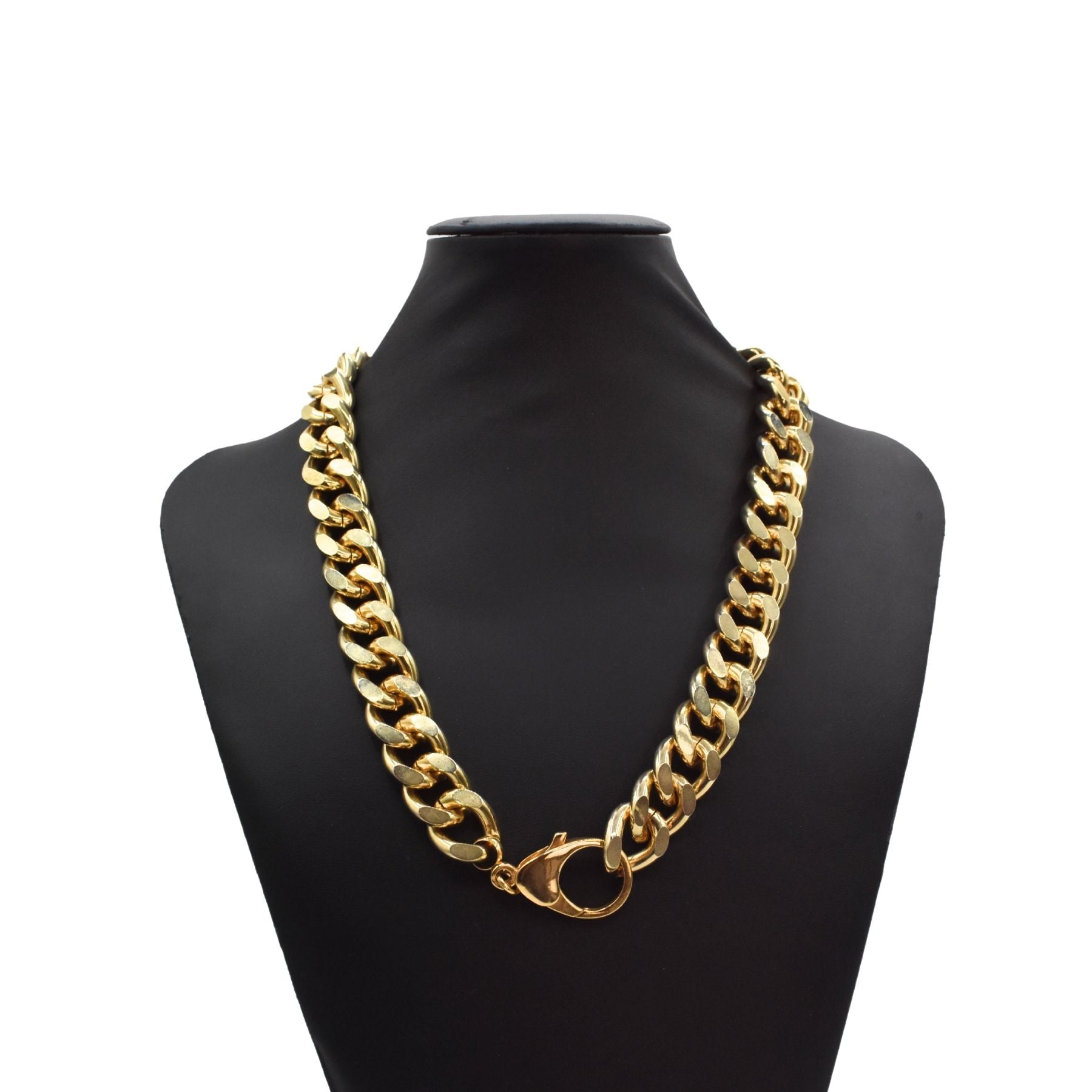 Alessandra Rich thick cuban link chain necklace in gold-tone hardware. Features a large lobster clasp on the front.