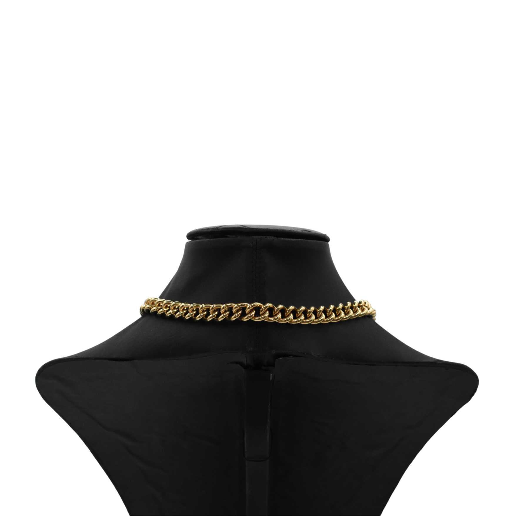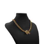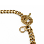 Coach 'Toggle' chain link necklace in gold metal hardware with a small rhinestone charm and a toggle closure with a signature Coach 'C' cutout design.