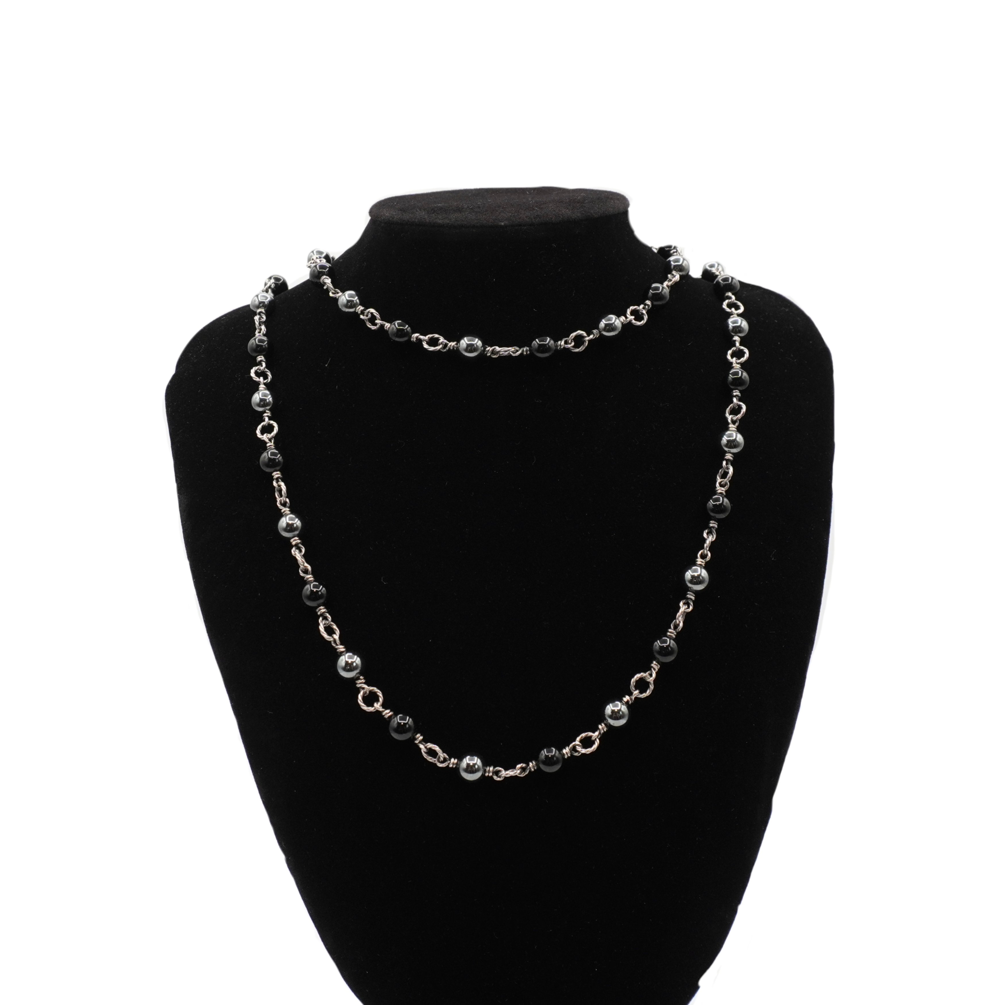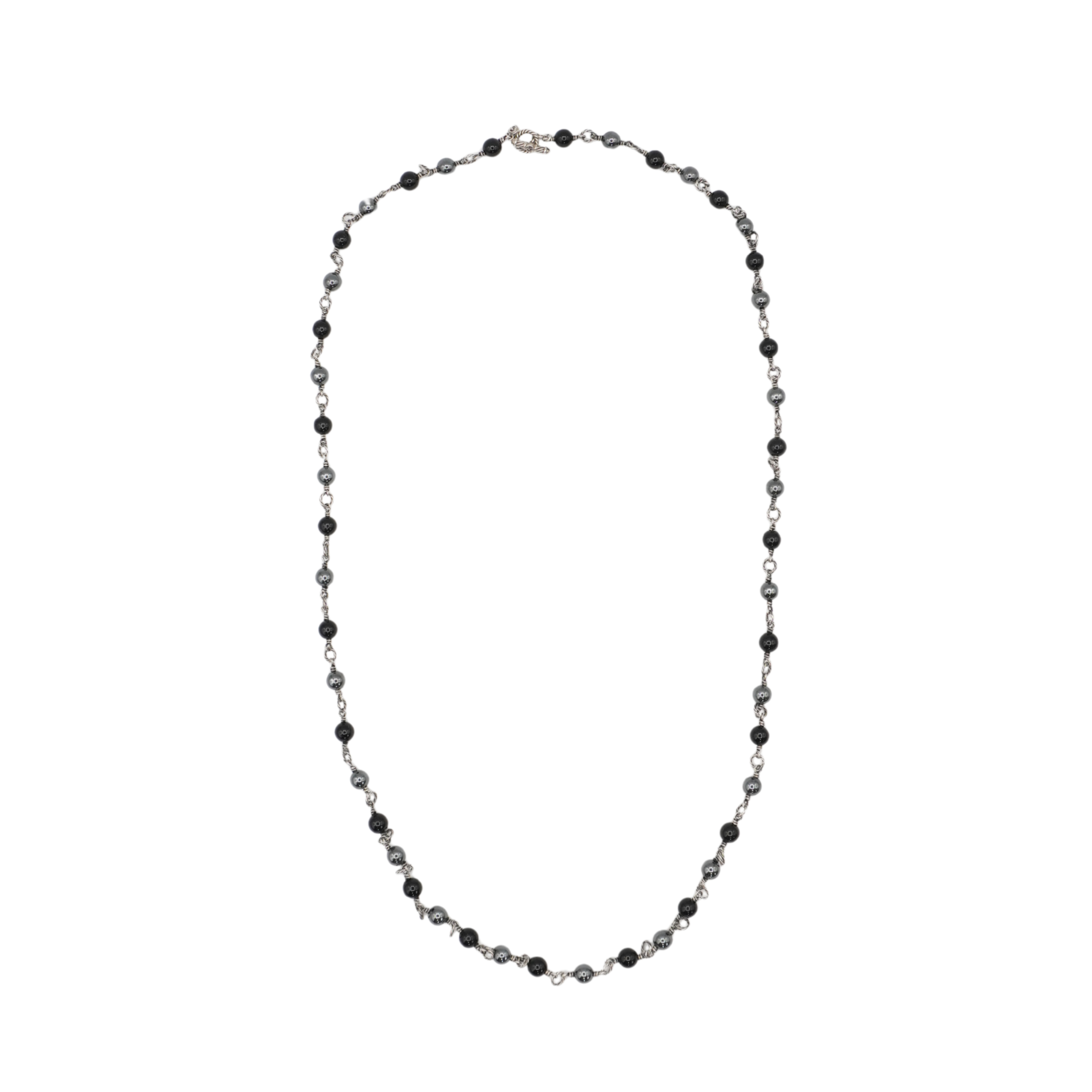 David Yurman 'Bijoux' beaded necklace in sterling silver with tahitian pearls and black onyx beads throughout and a toggle closure.