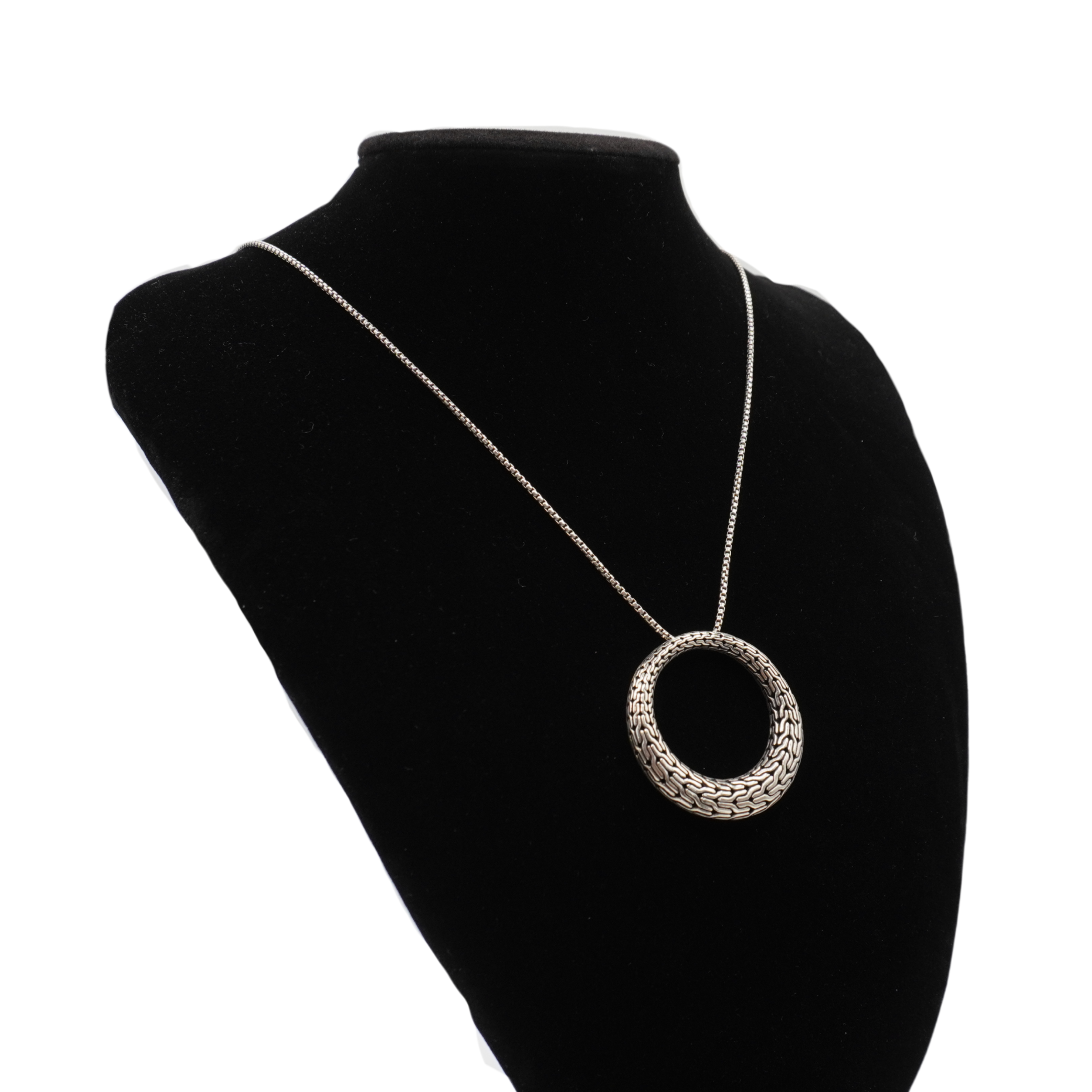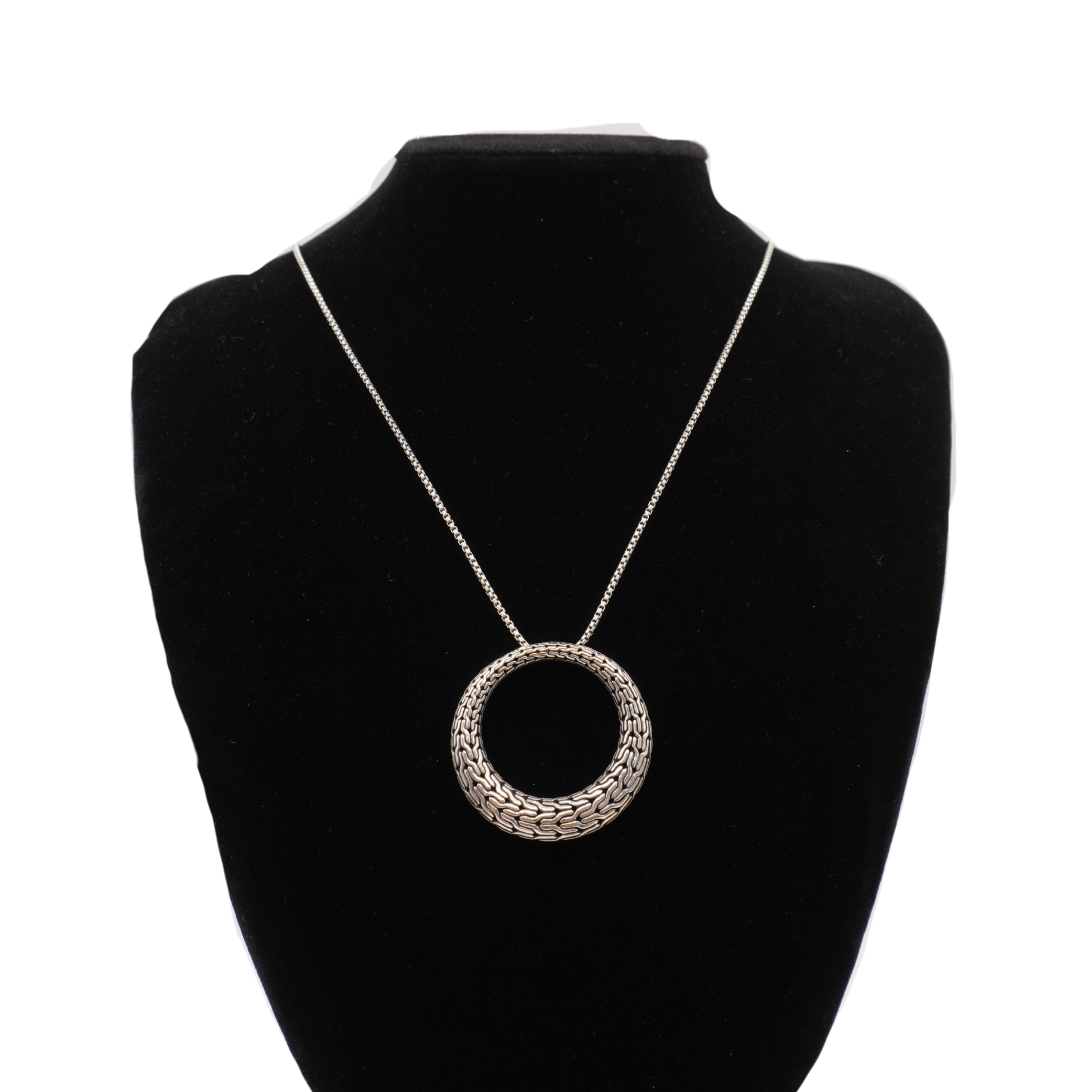 John Hardy 'Classic Chain Graduated' necklace in solid sterling silver with a large round textured chain pendant.