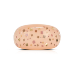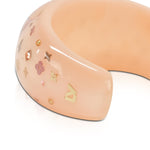Louis Vuitton 'Art Deco Inclusion' cuff in blush pink acetate with gold, silver and pink monogram 'fleur' gems set into the acetate.