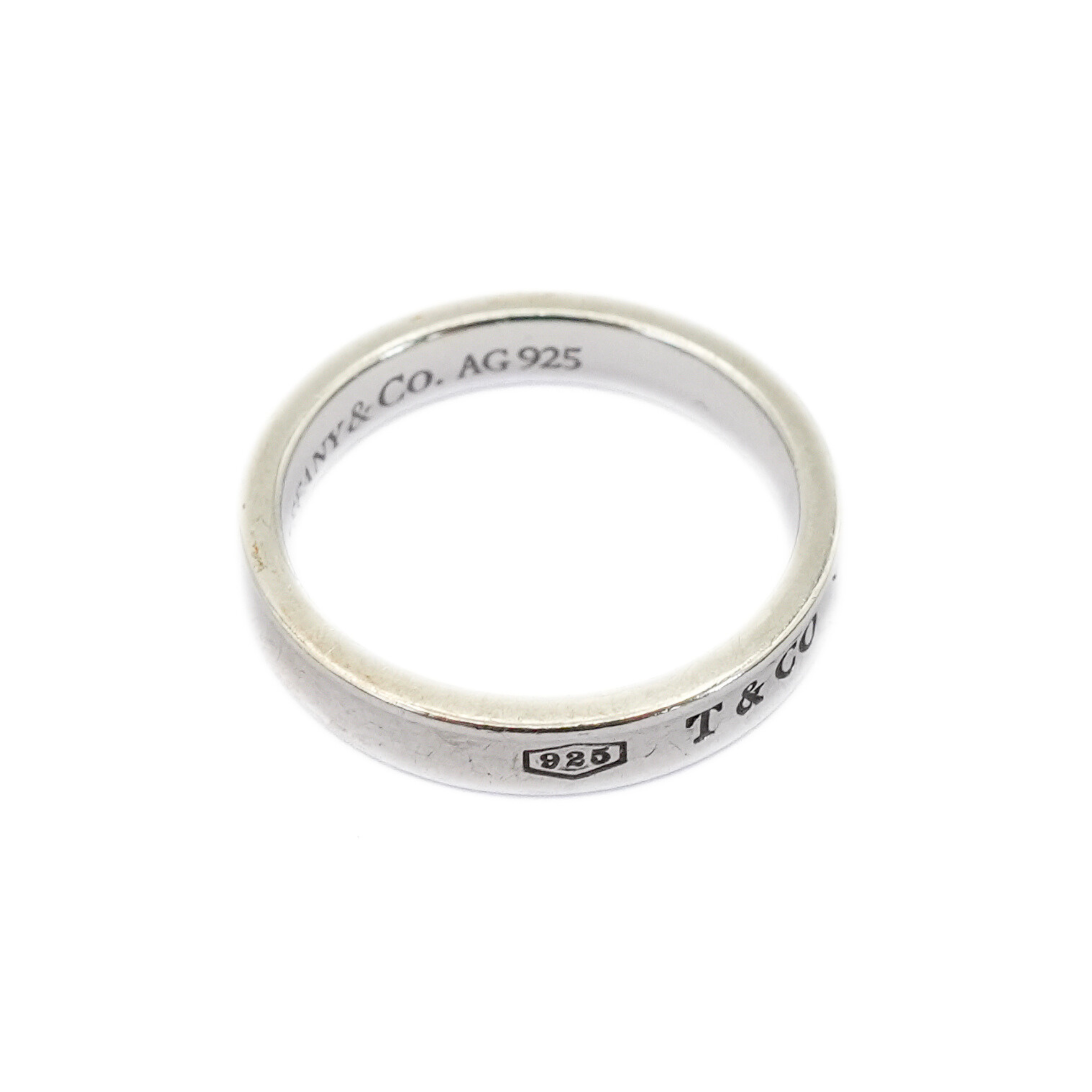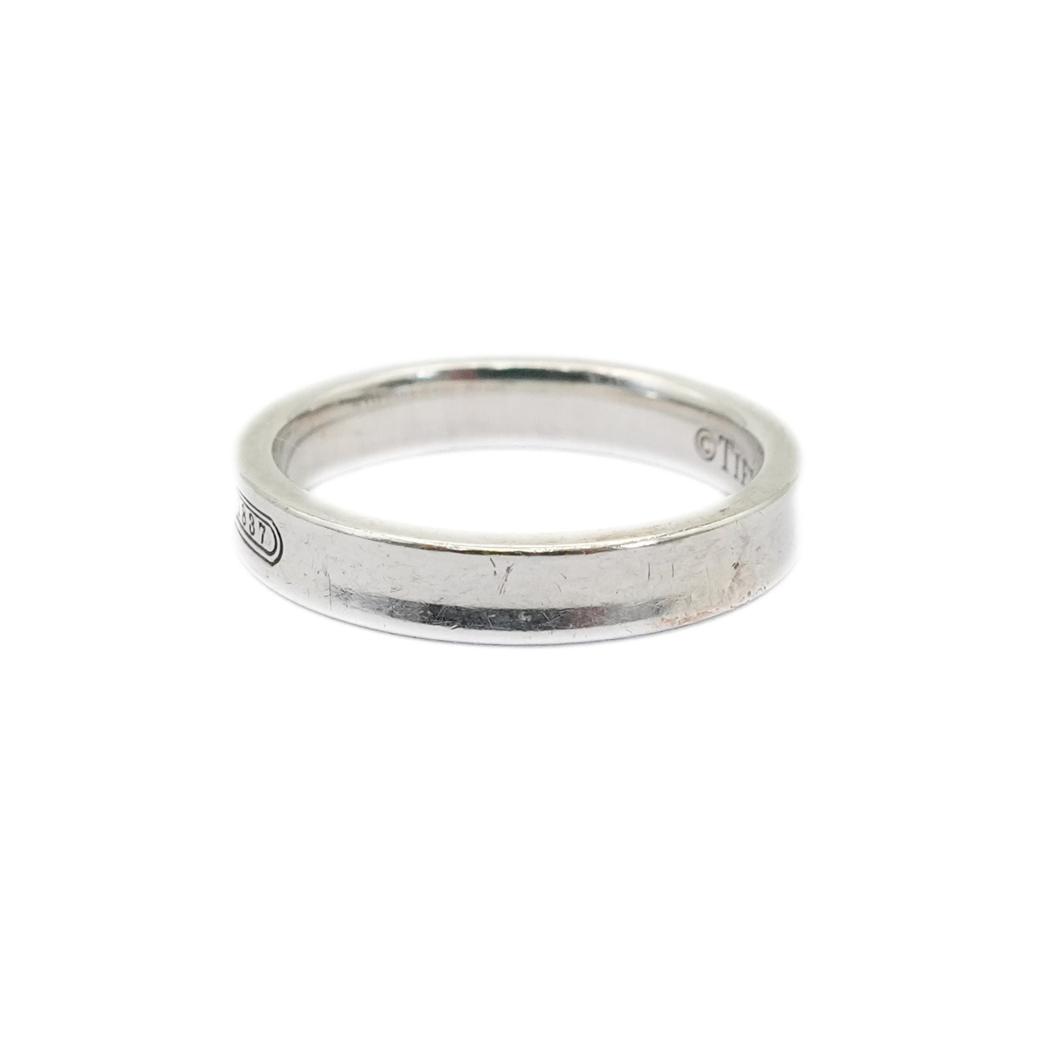 Tiffany & Co. '1837 Narrow' ring in 925 sterling silver with engraved logo and date on the outer band.