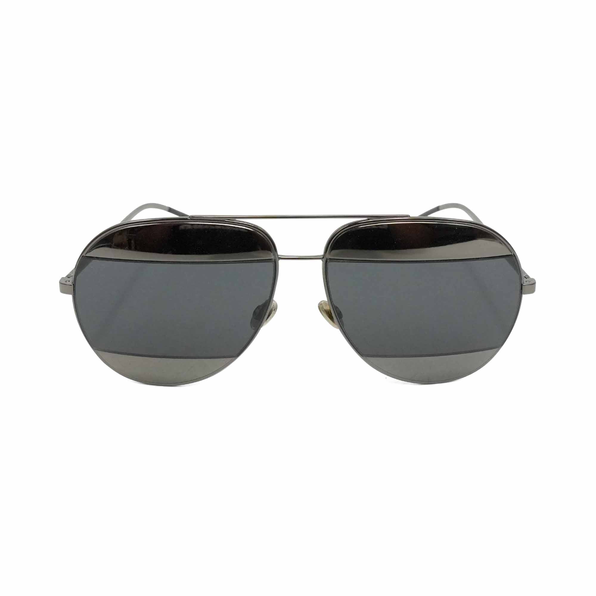 Christian Dior 'Split 1' aviator glasses with gunmetal mirrored panels at top and bottom of lenses with black lens in the centre. Features subtle CD logo on arms, gunmetal lightweight frame and silicone nose pads.