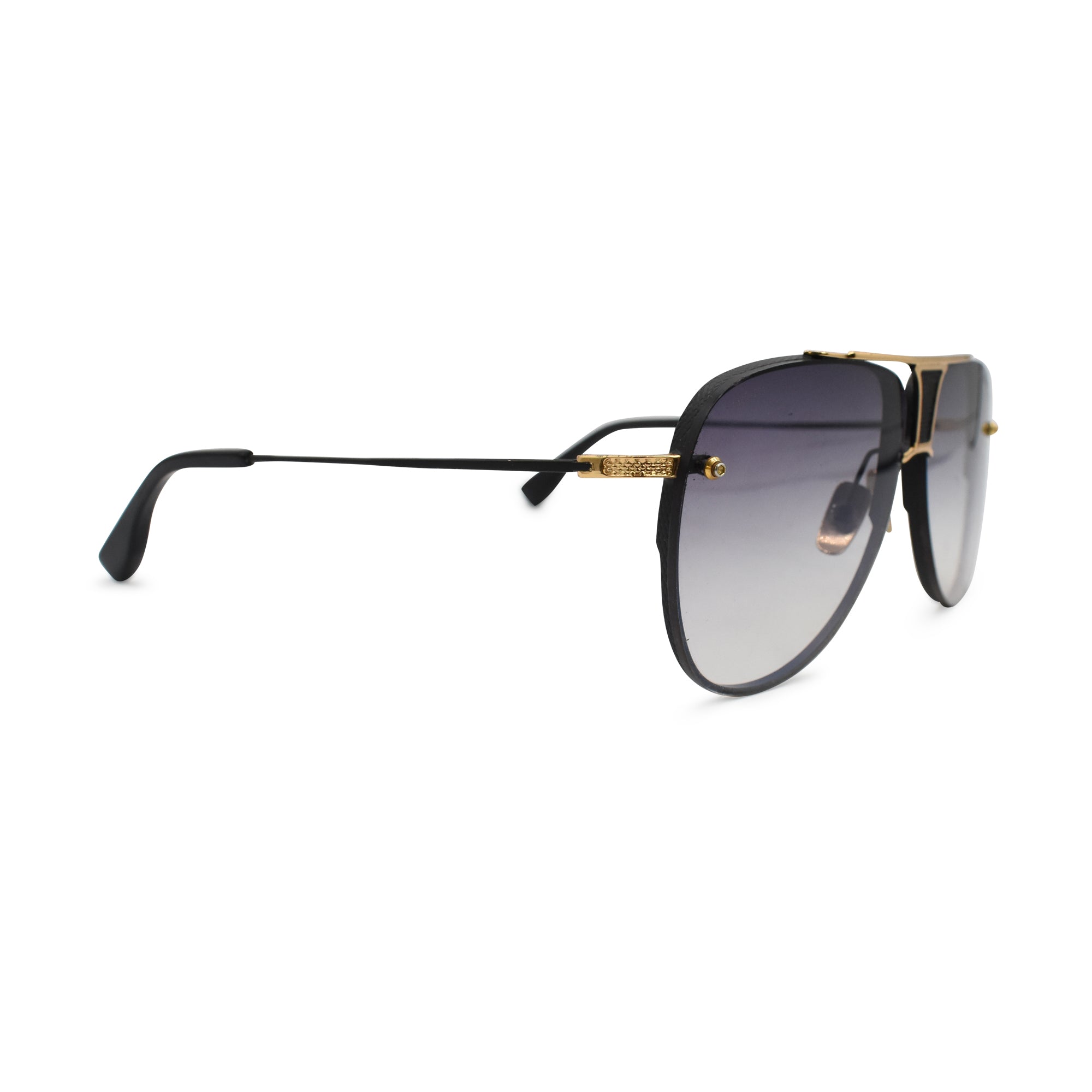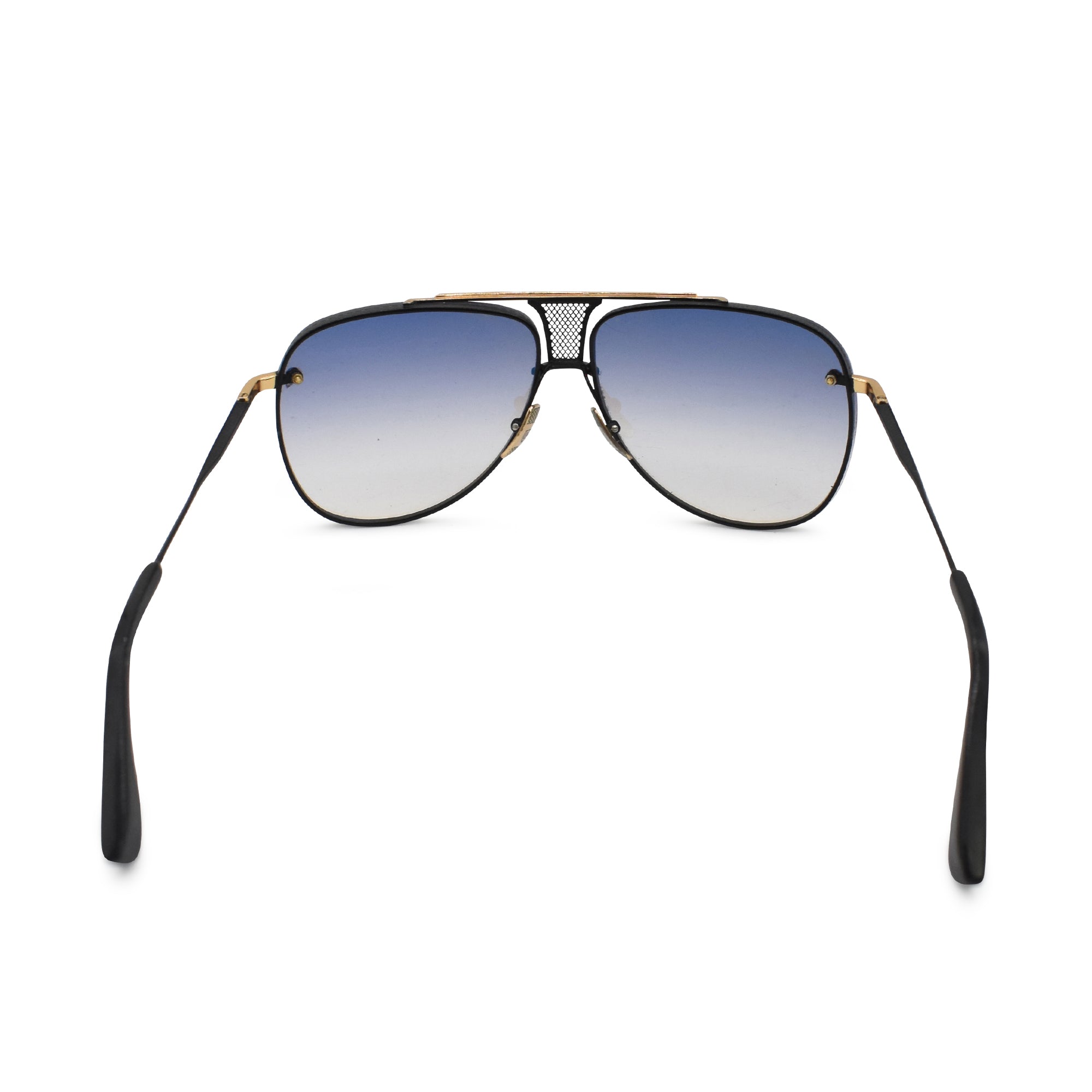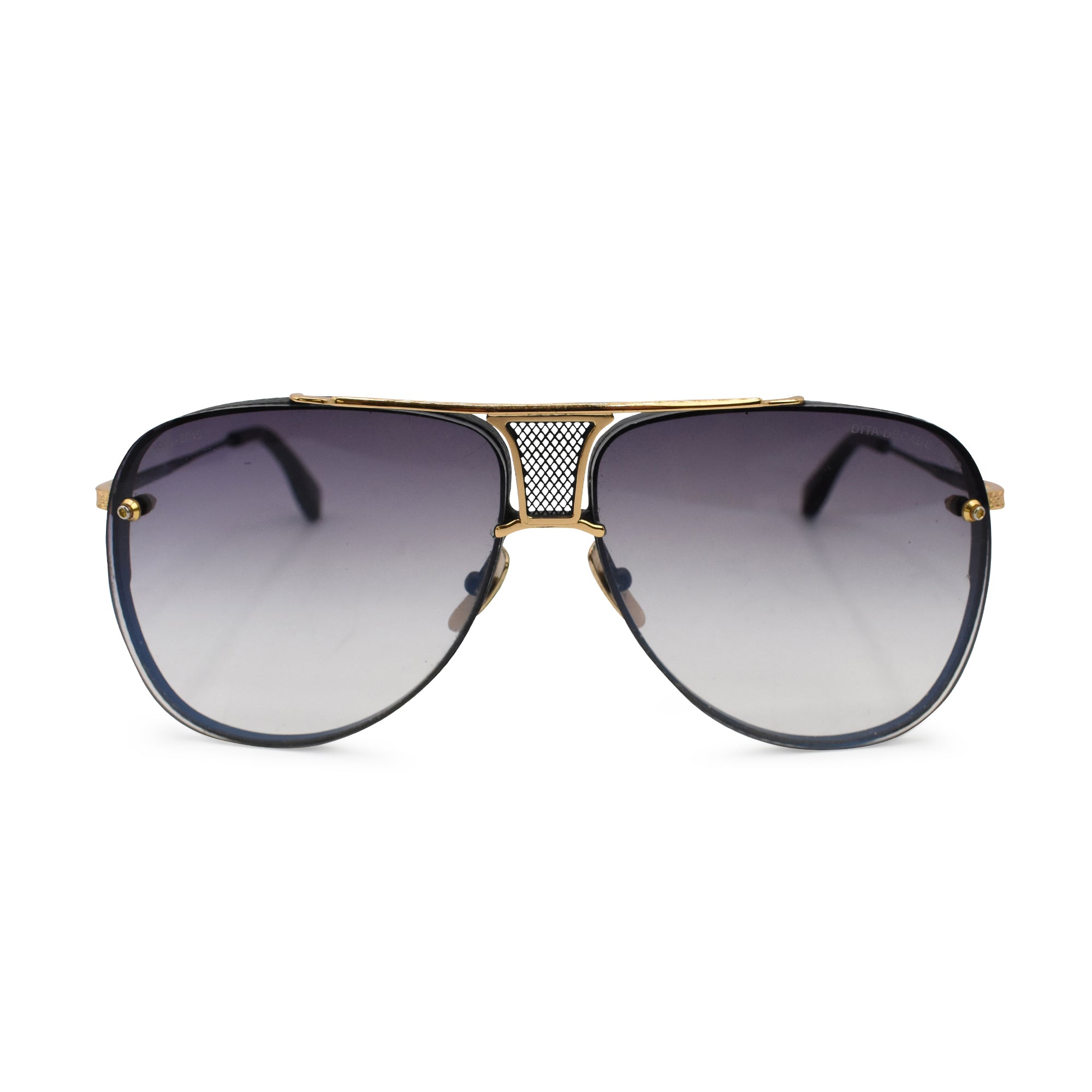 Dita 'Decade' aviator sunglasses in blue metal frame with blue lenses and a gold mesh bar detail.