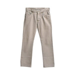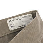 Brunello Cucinelli slim fit pants in light brown cotton with button-down fly closure in copper hardware.