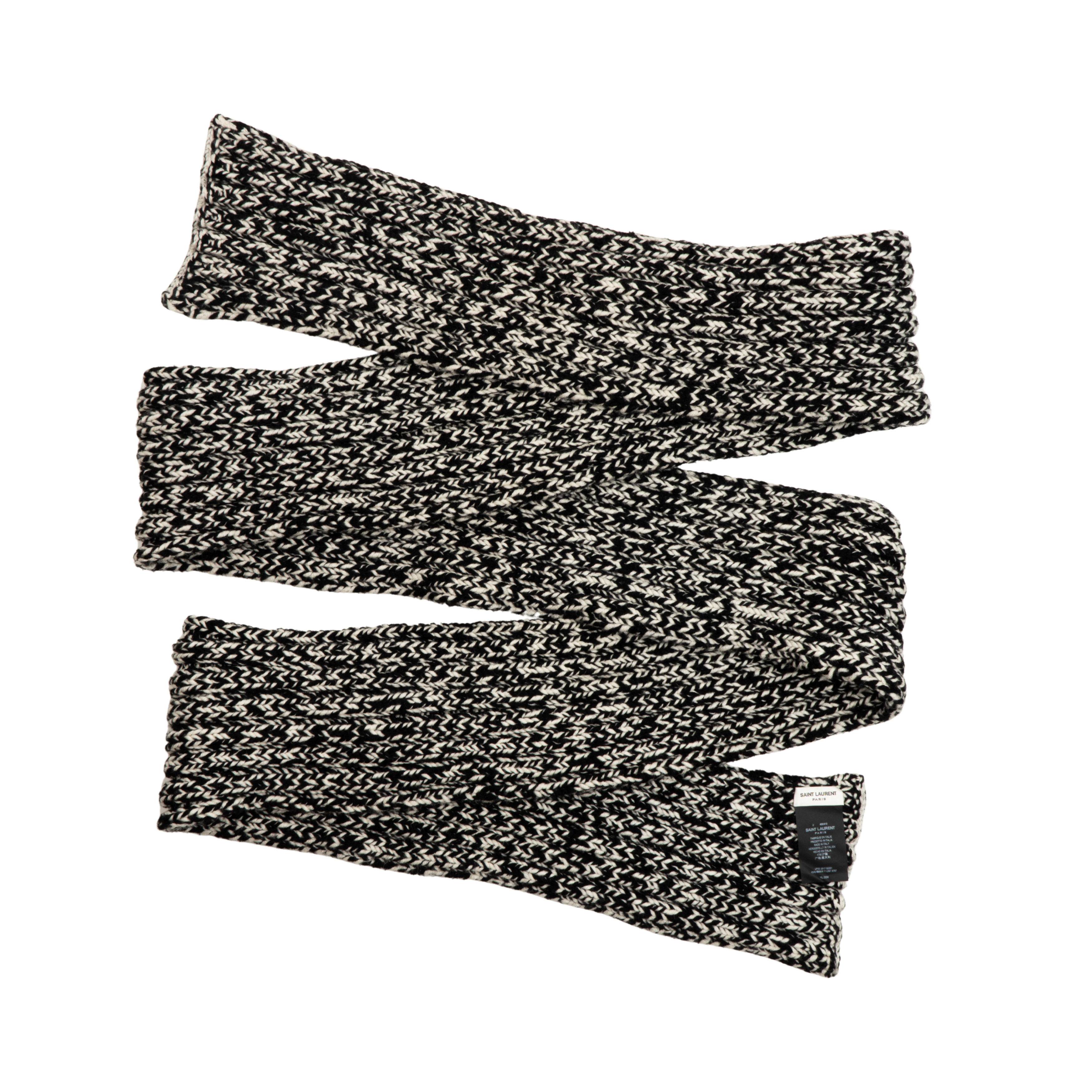 Saint Laurent extra long scarf in black and white chunky cable knit wool.