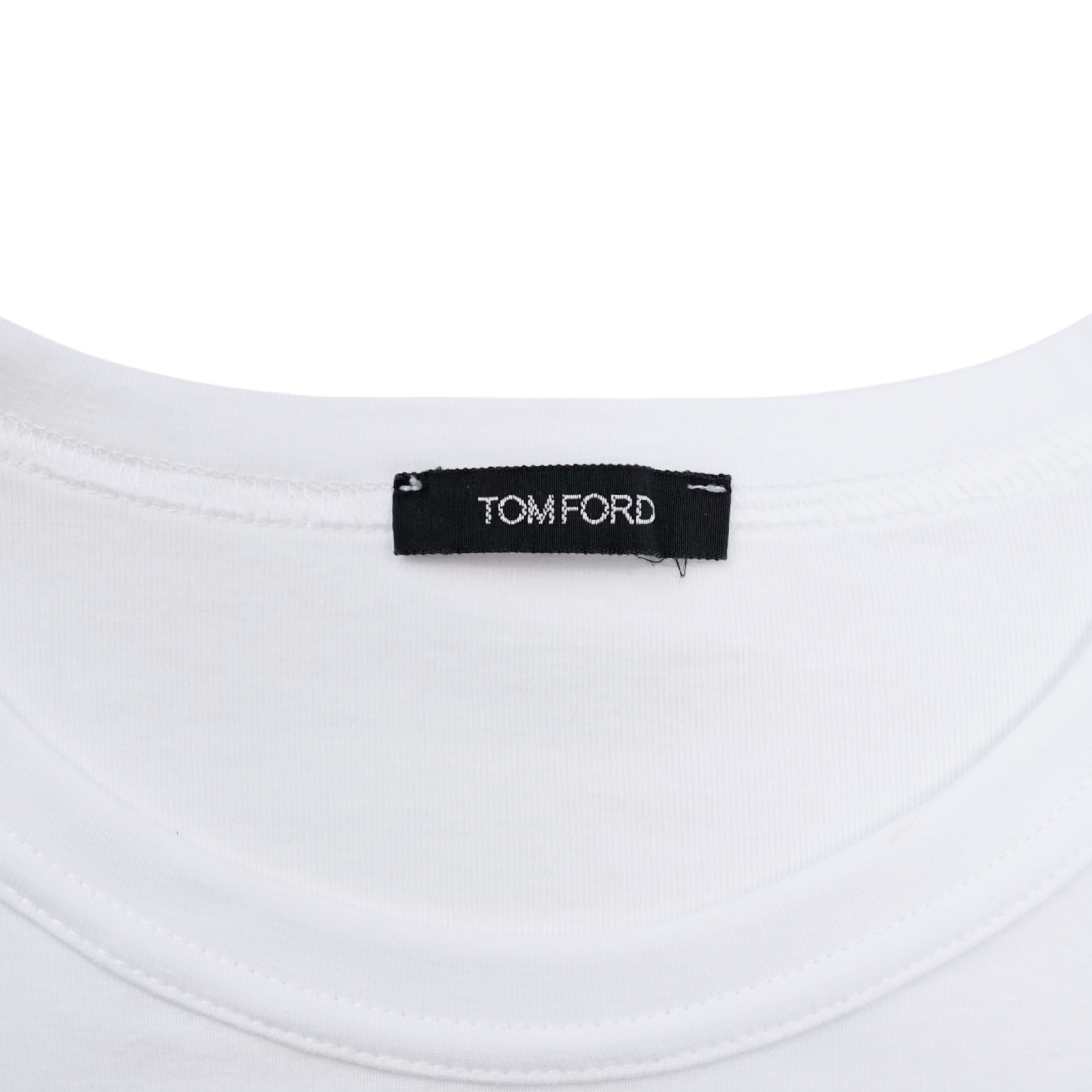 Tom Ford white short-sleeve t-shirt with small logo patch at the hem.