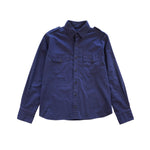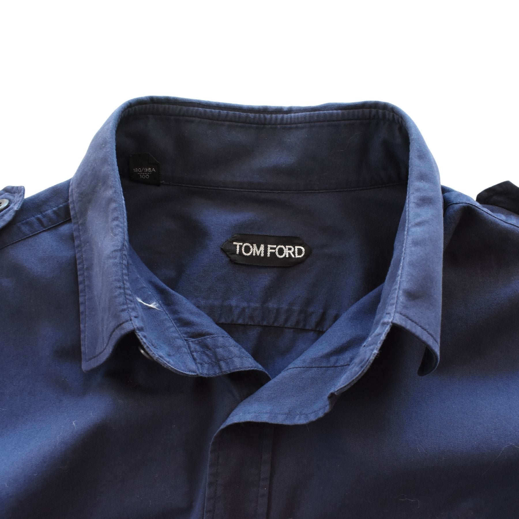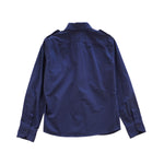 Tom Ford long-sleeve button-down shirt in navy cotton with two front patch pockets and shoulder epaulettes.