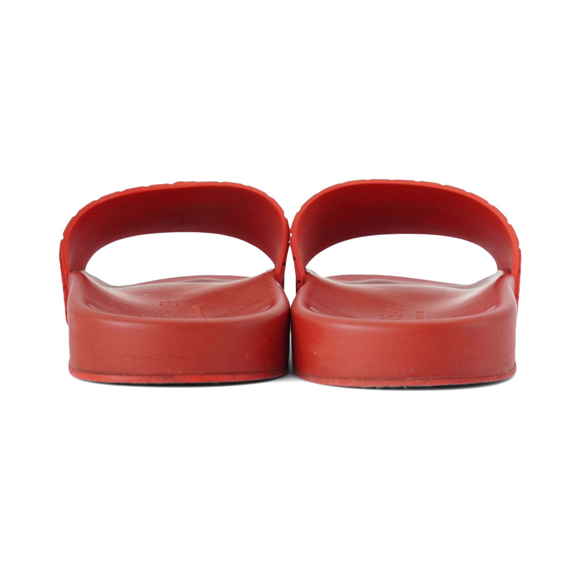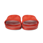 Versace 'Medusa' slide sandals in red rubber with a large medusa head on the toe strap.