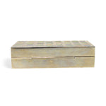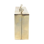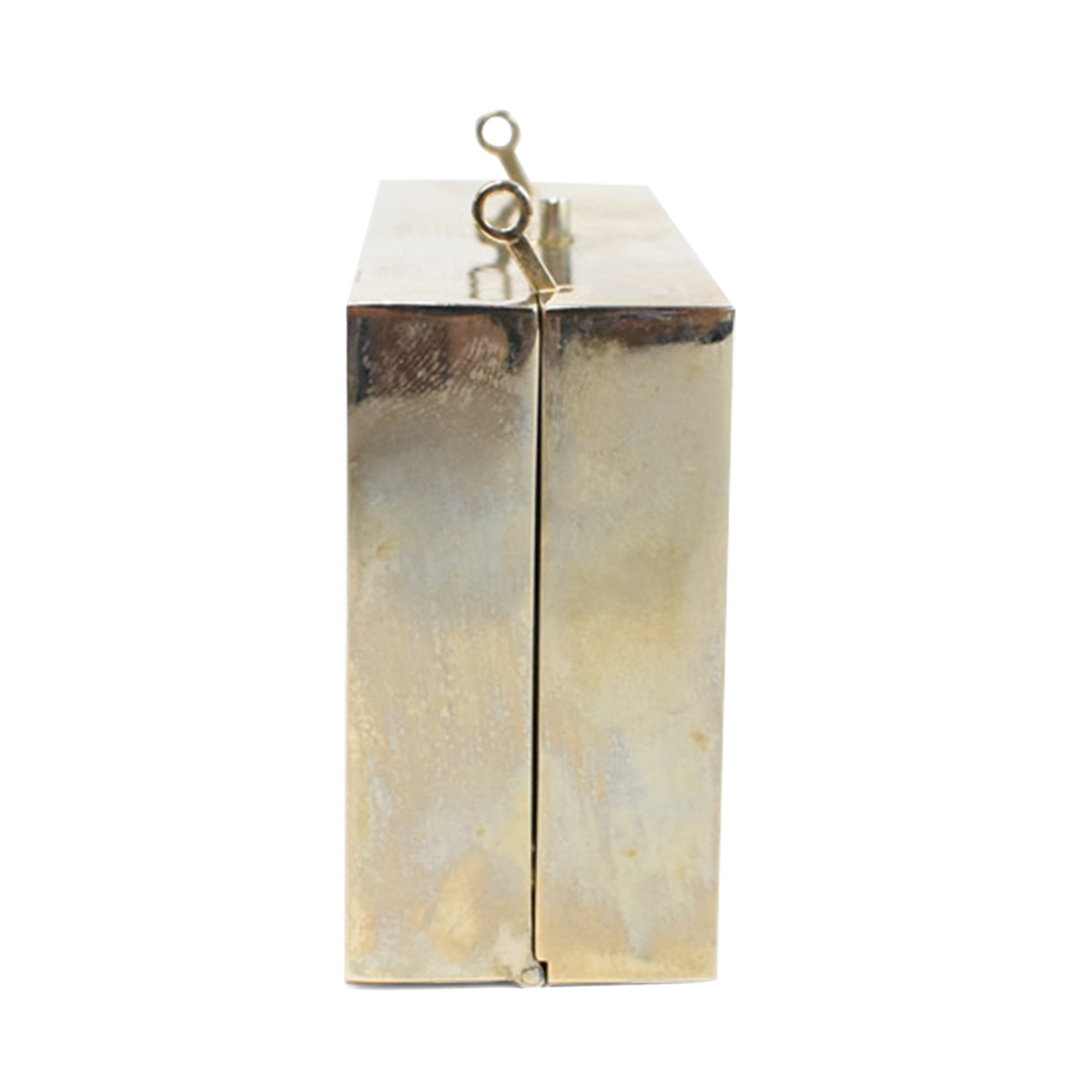 Fair. Light scratching and tarnishing throughout metal exterior, some staining and glue bleed to interior lining.