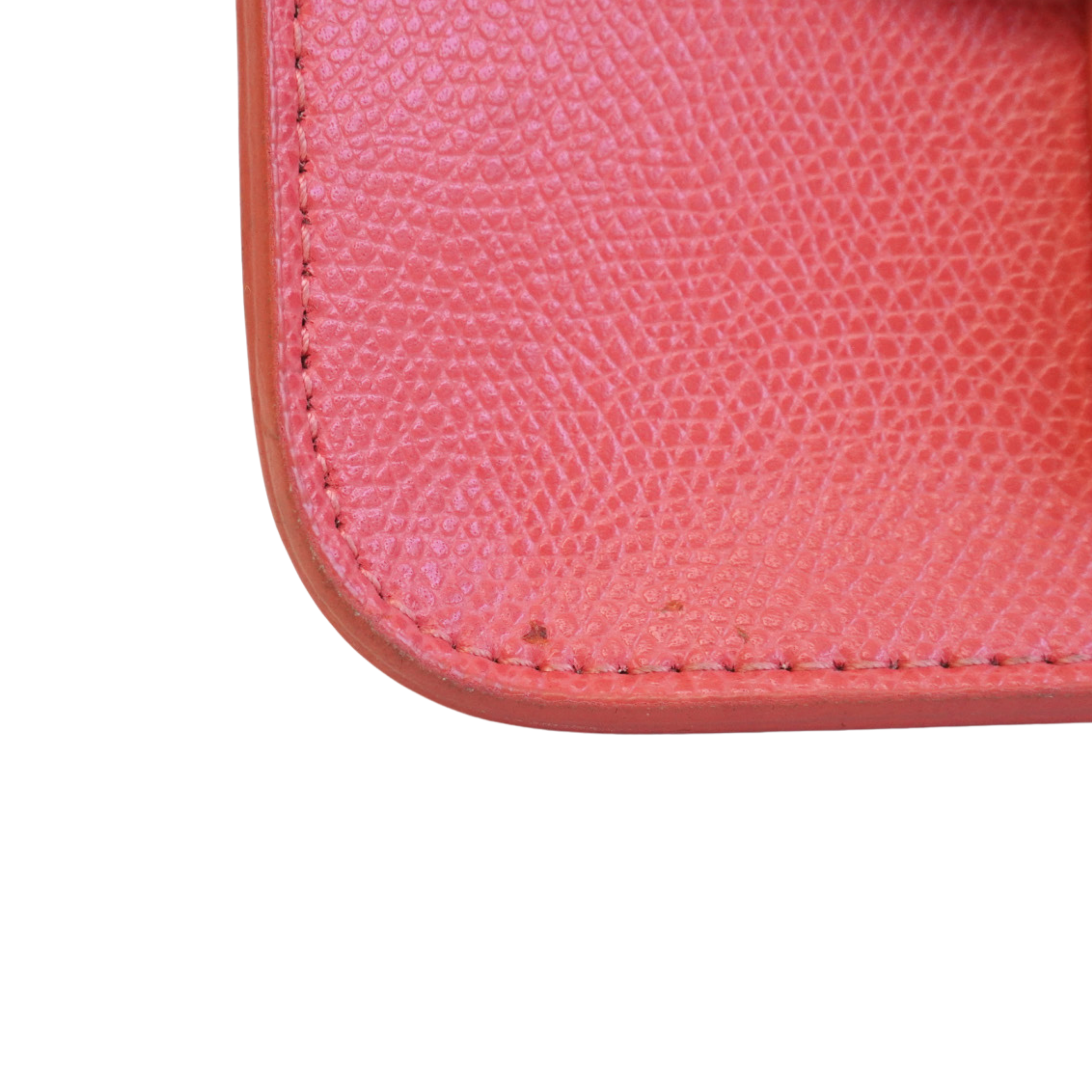 Good. Tarnishing and light scratching in metal hardware, light marks in exterior leather, some wear to trim especially at base of bag.