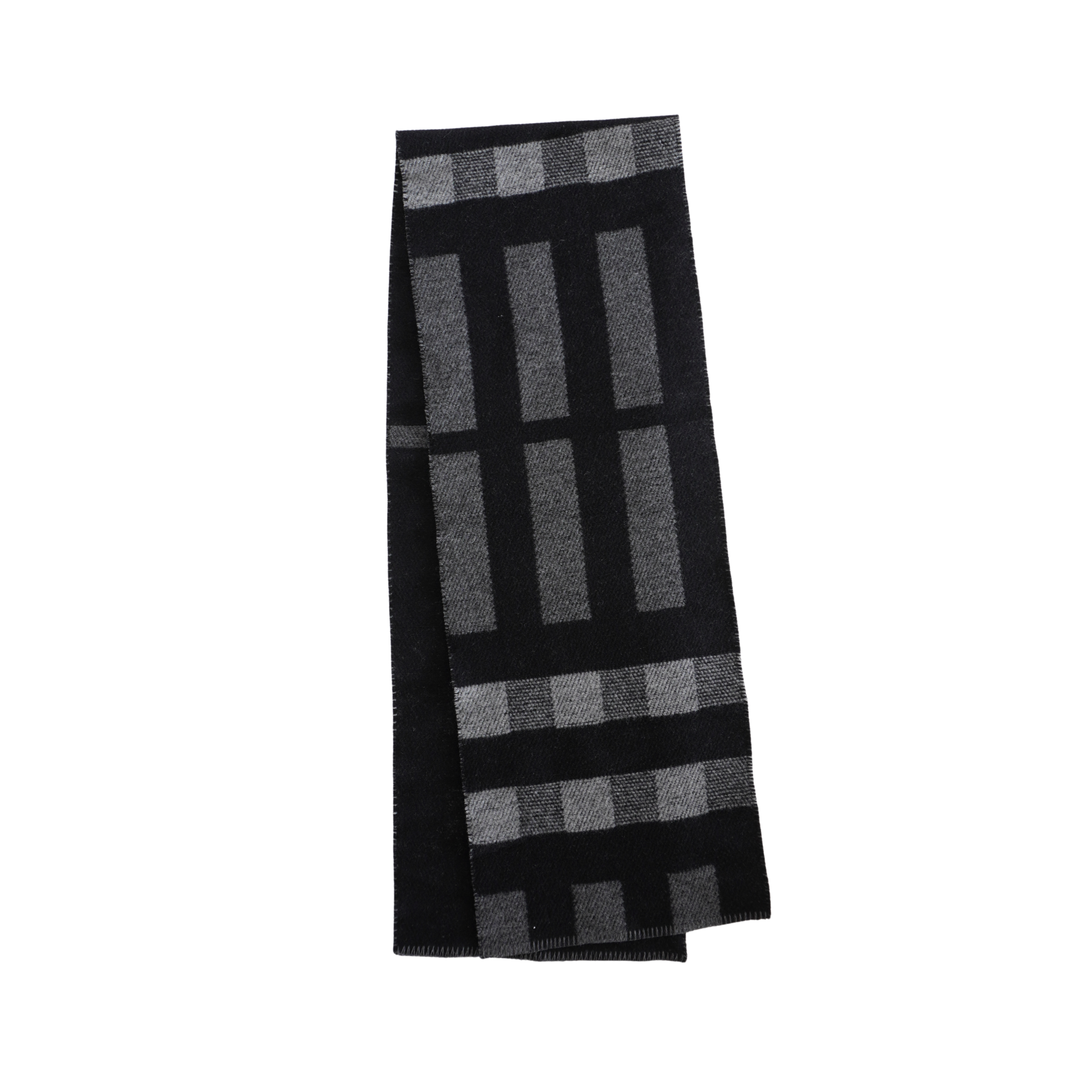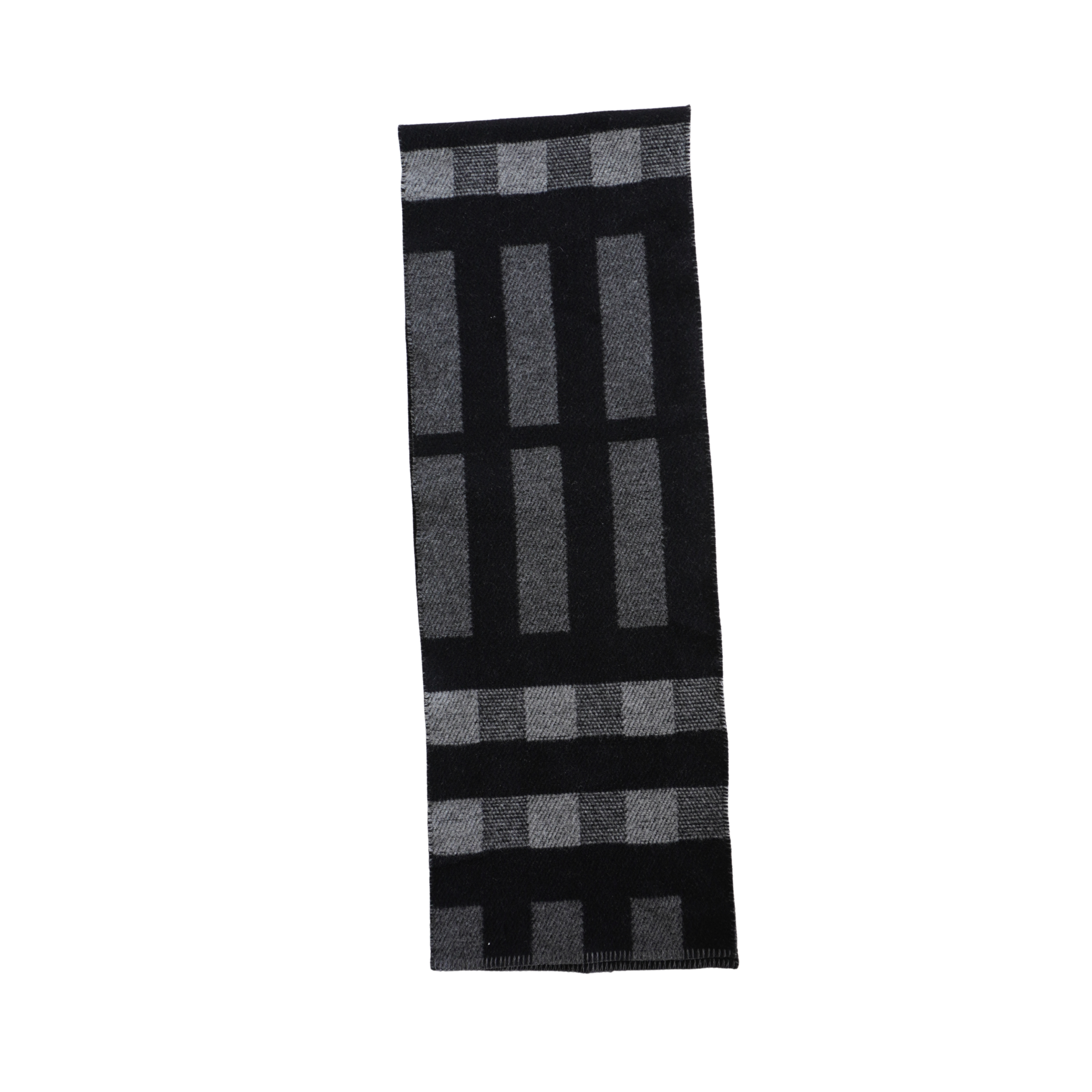 Burberry large scarf in black and white jumbo plaid wool with black reverse and blanket hem stitched hem.