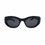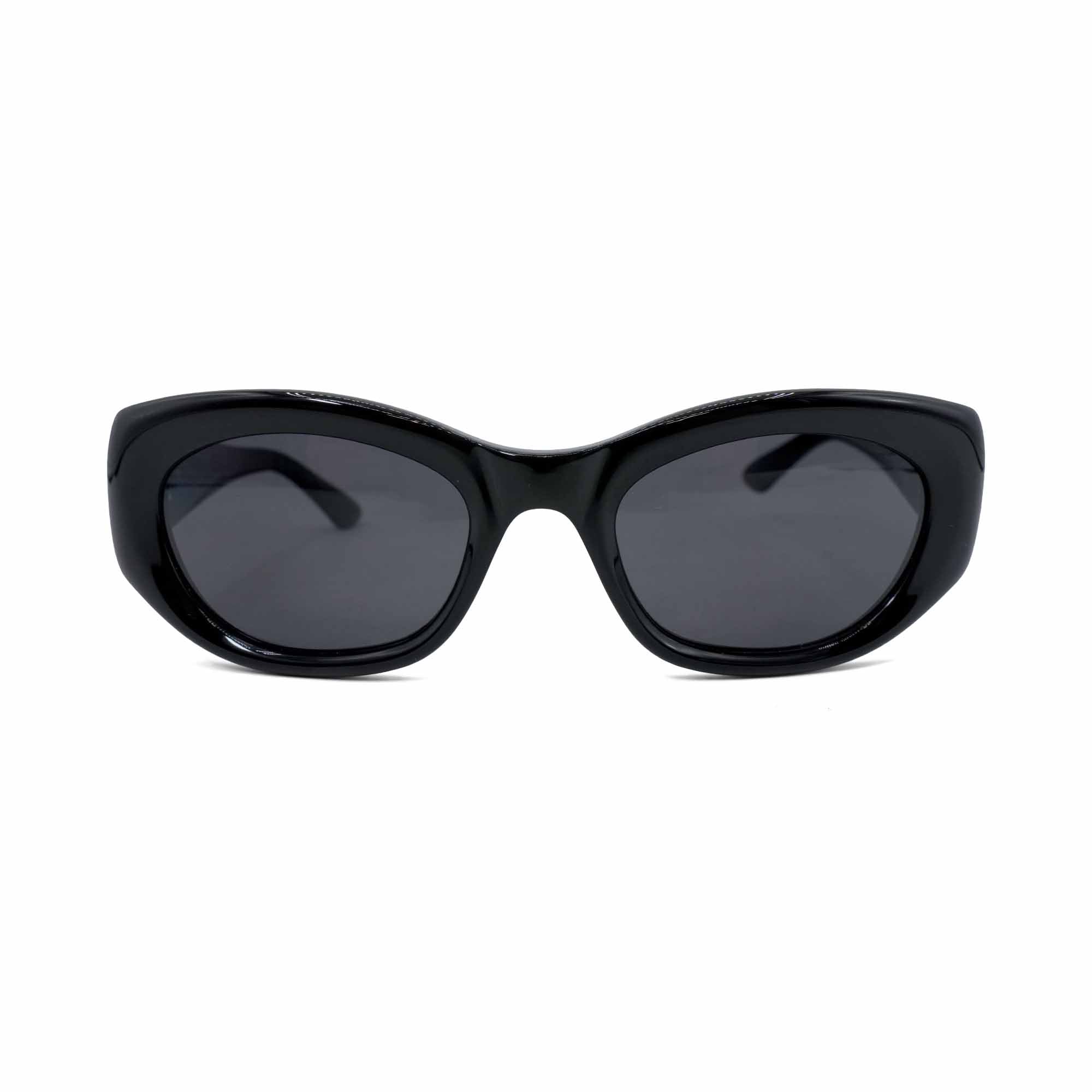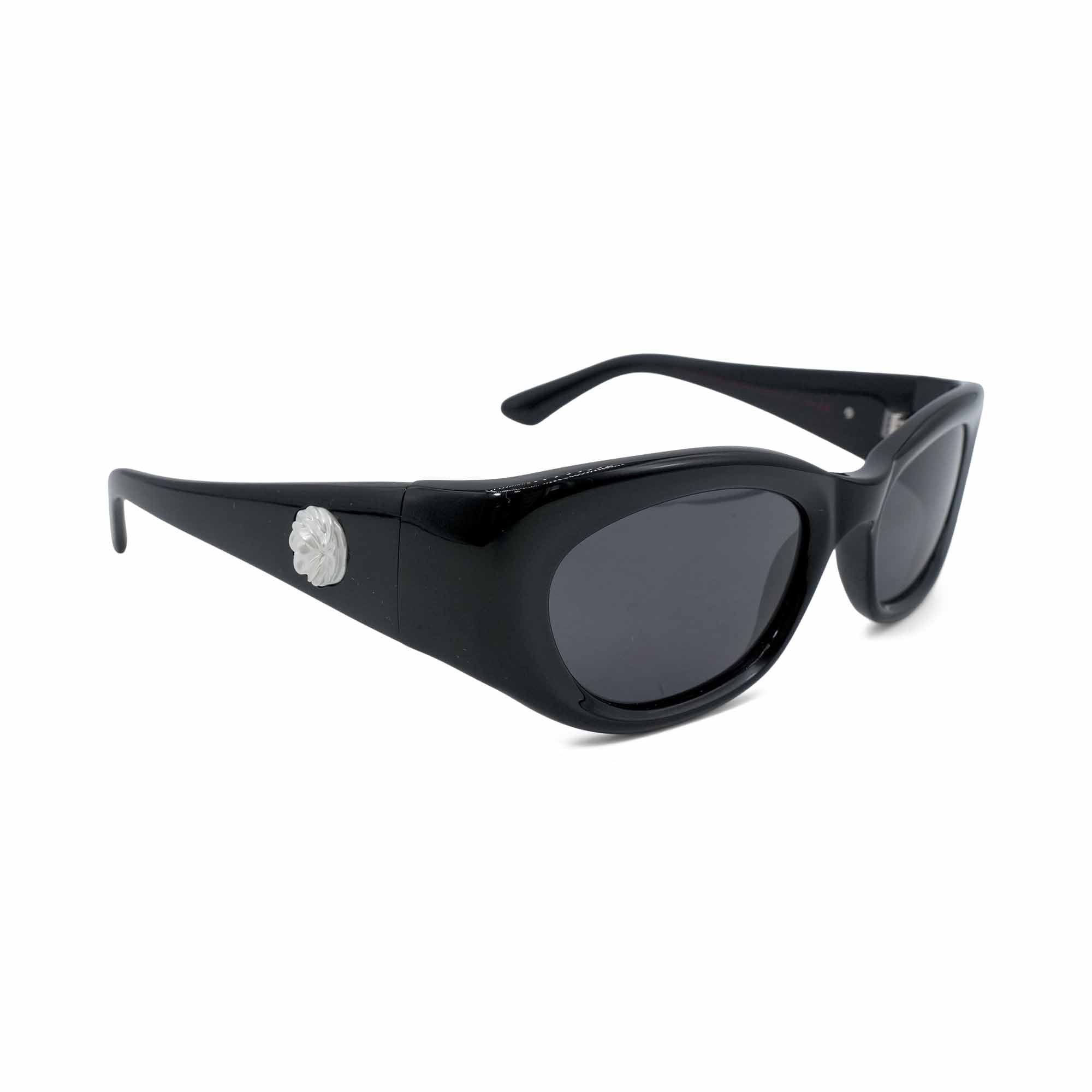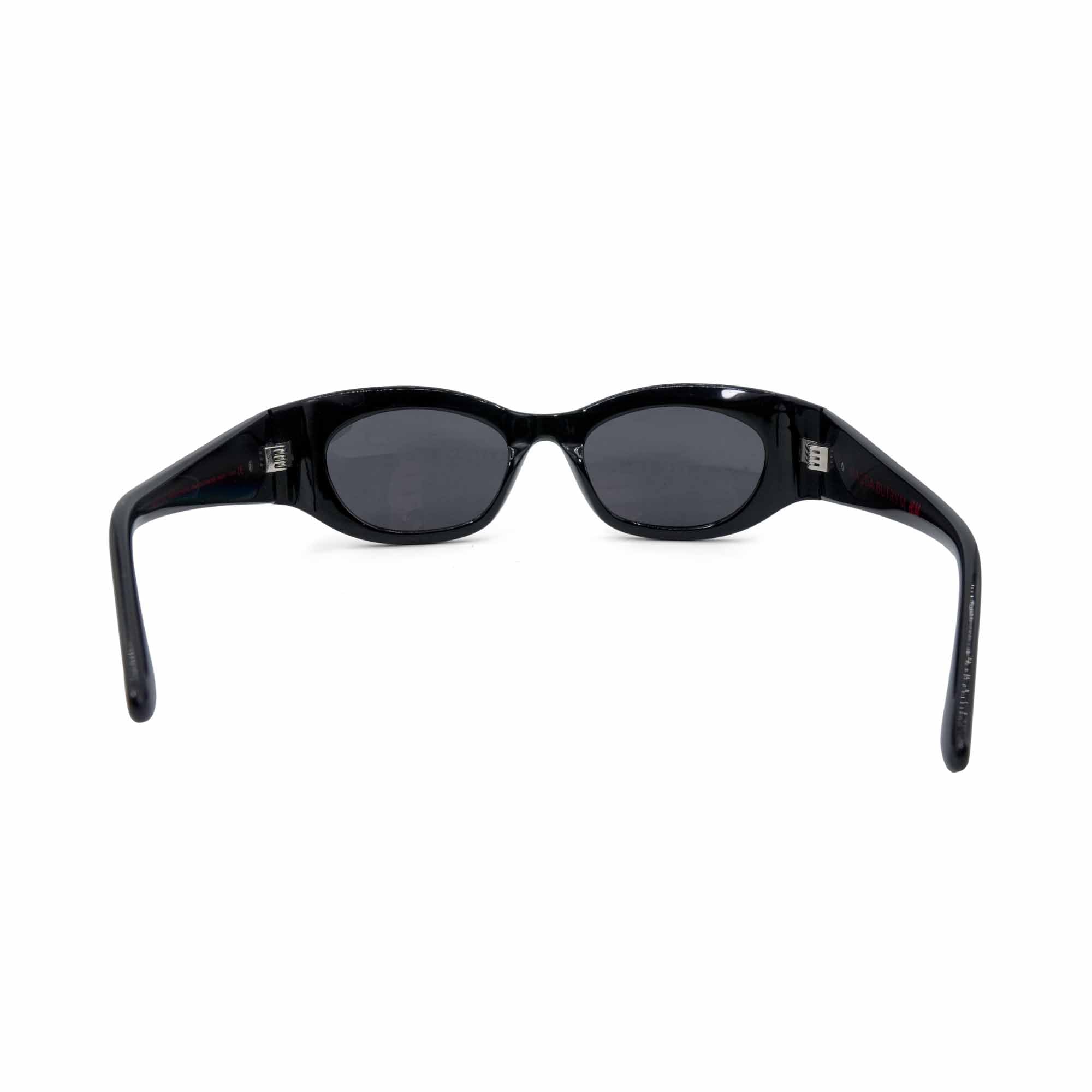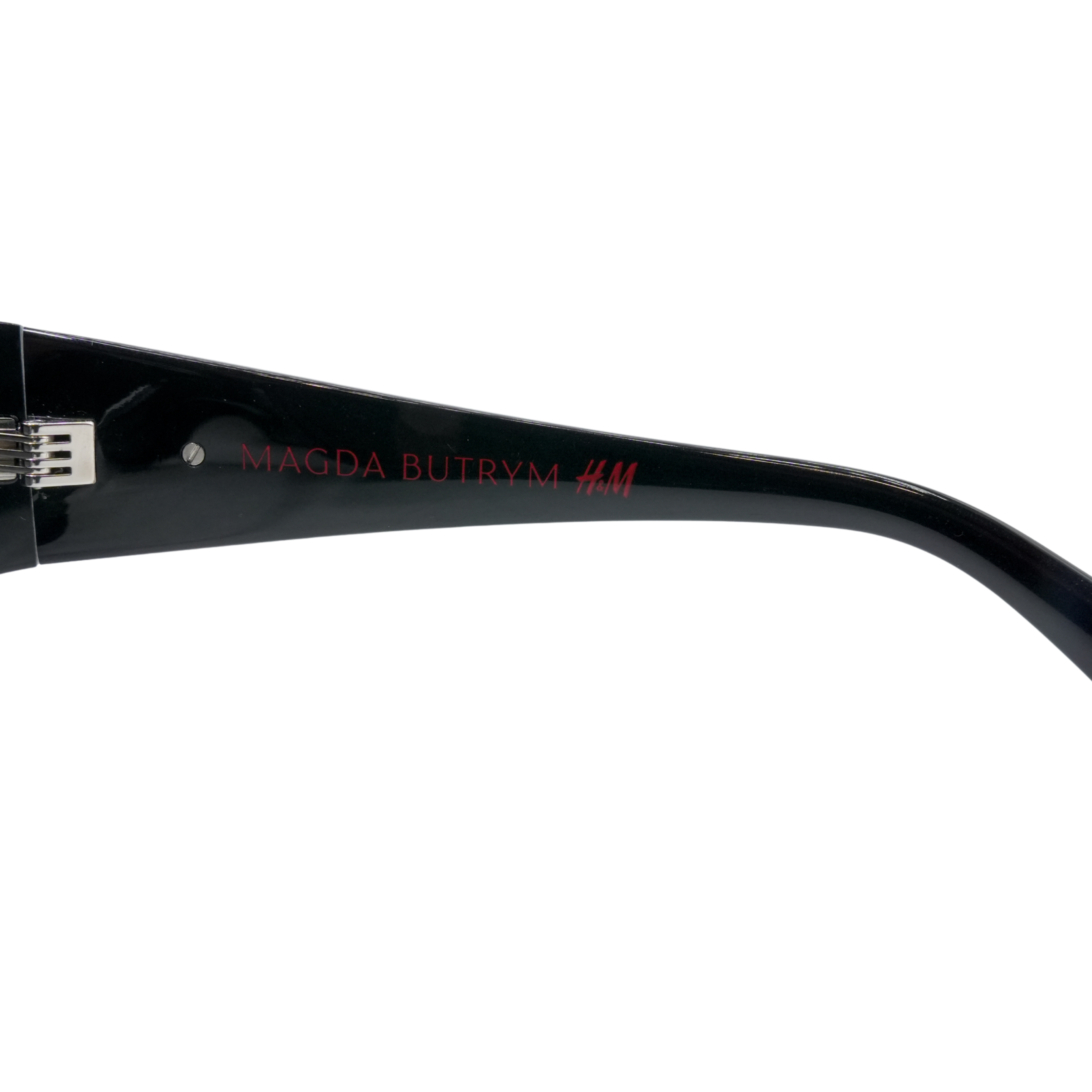 Magda Butrym x H&M 'Rose' sunglasses in black acetate with an oval lens and small white roses on the arms.