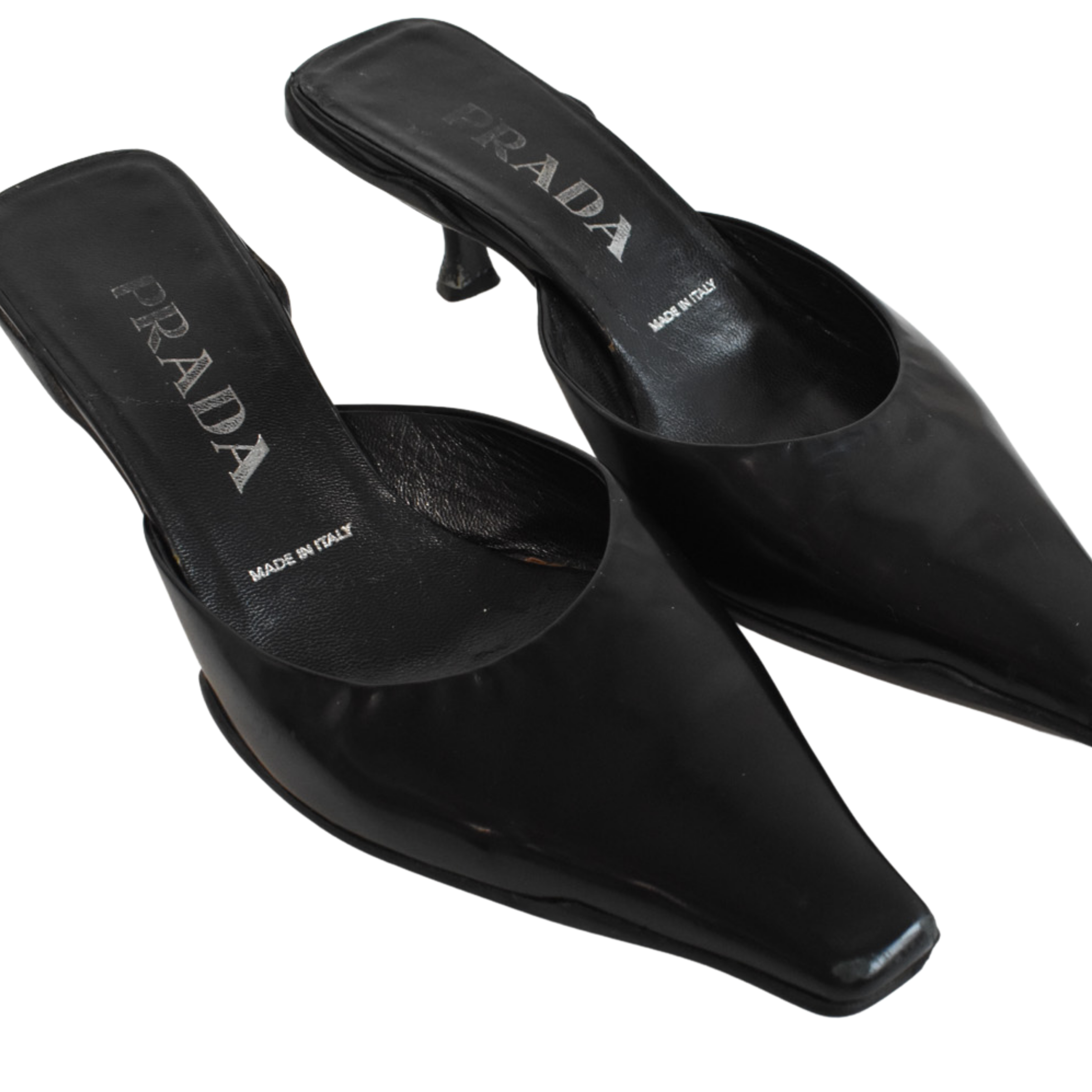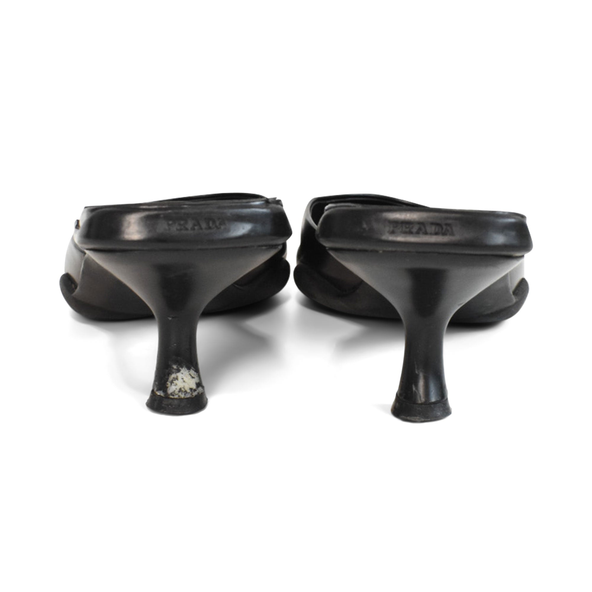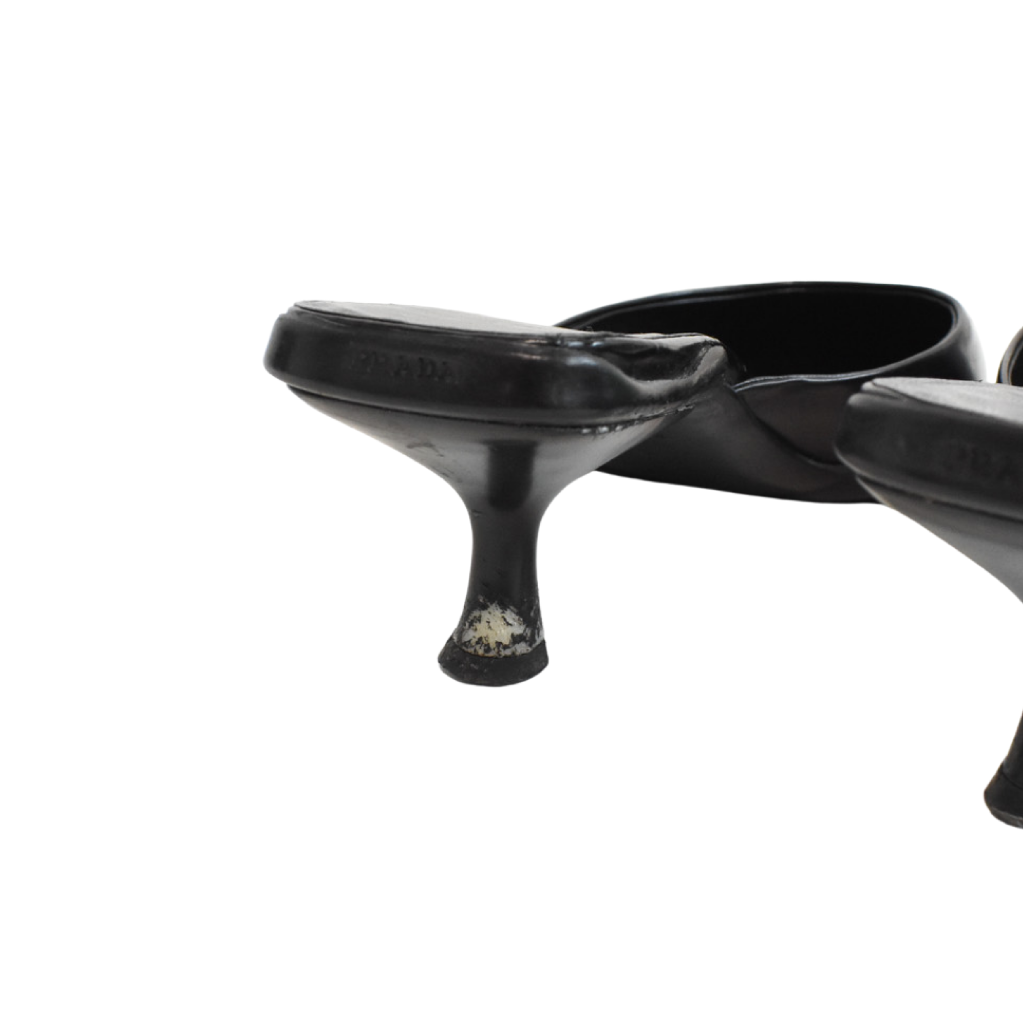 Prada vintage mules in black leather with a kitten heel and a squared toe.