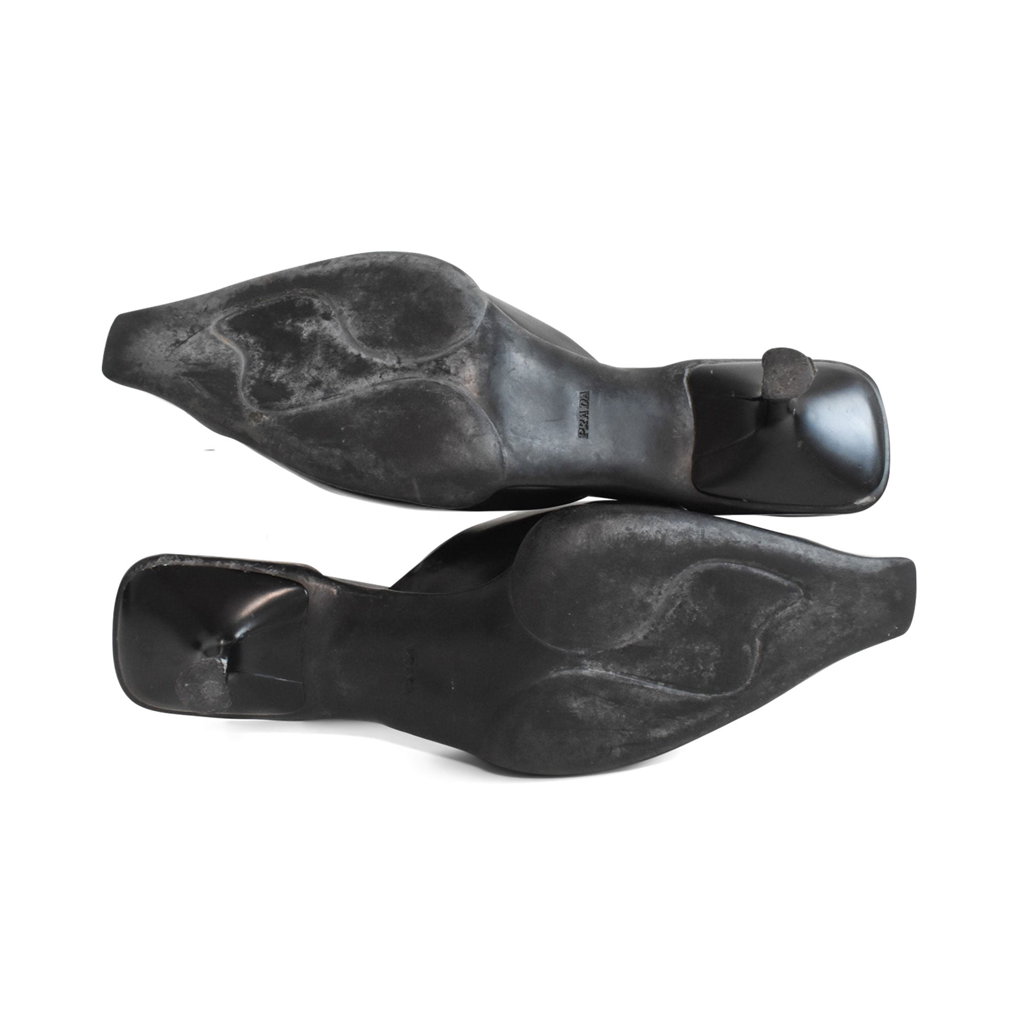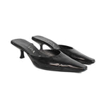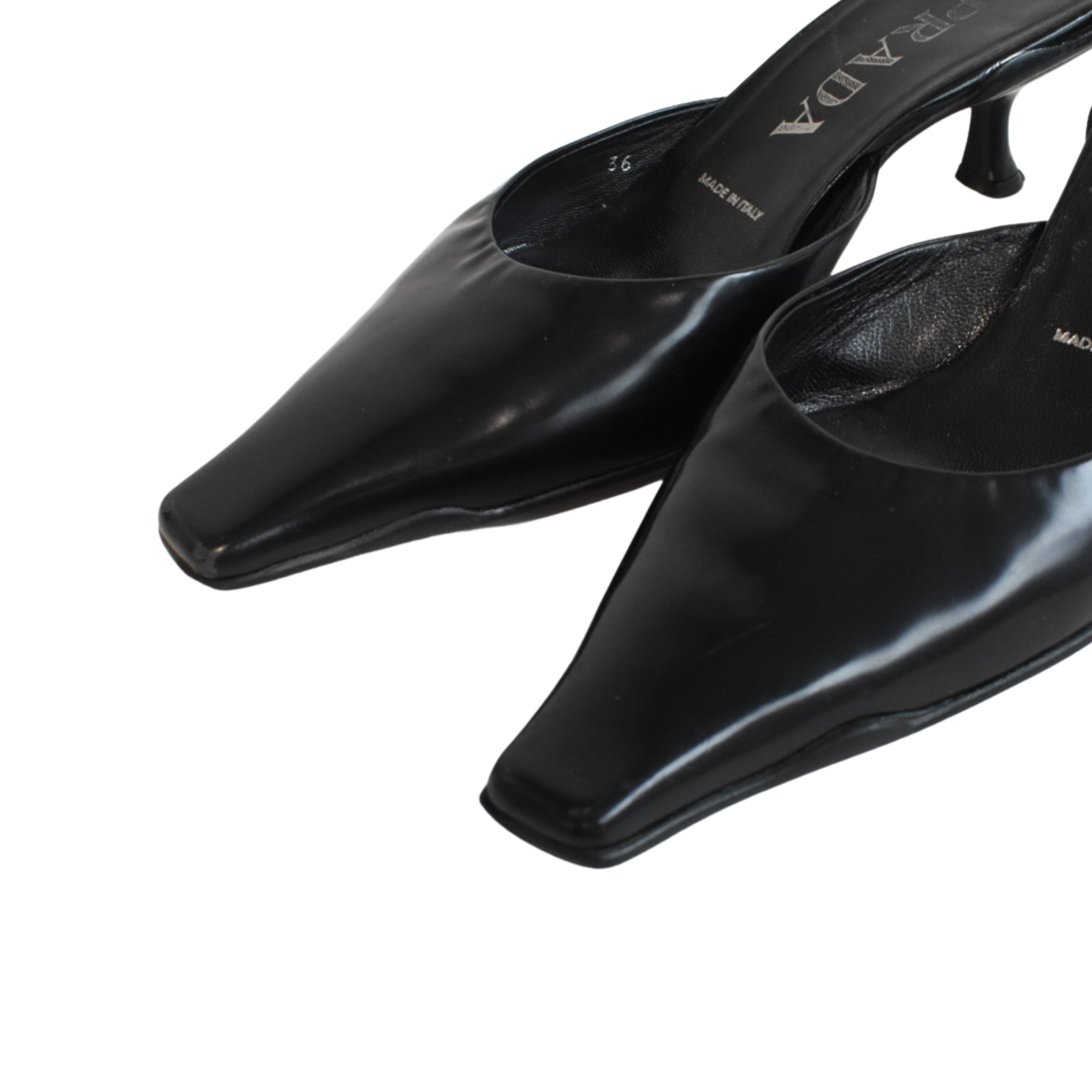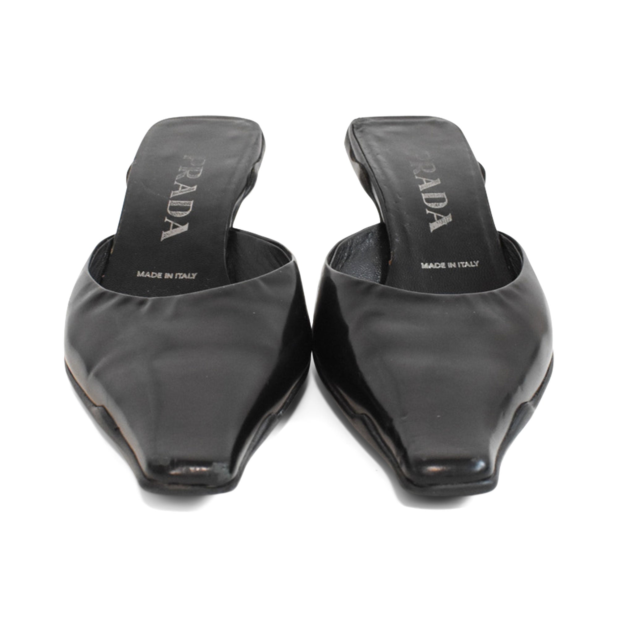 Prada vintage mules in black leather with a kitten heel and a squared toe.