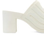 Diesel 'SA Pamela' logo mules in white rubber with block heel and jumbo logo across the strap.